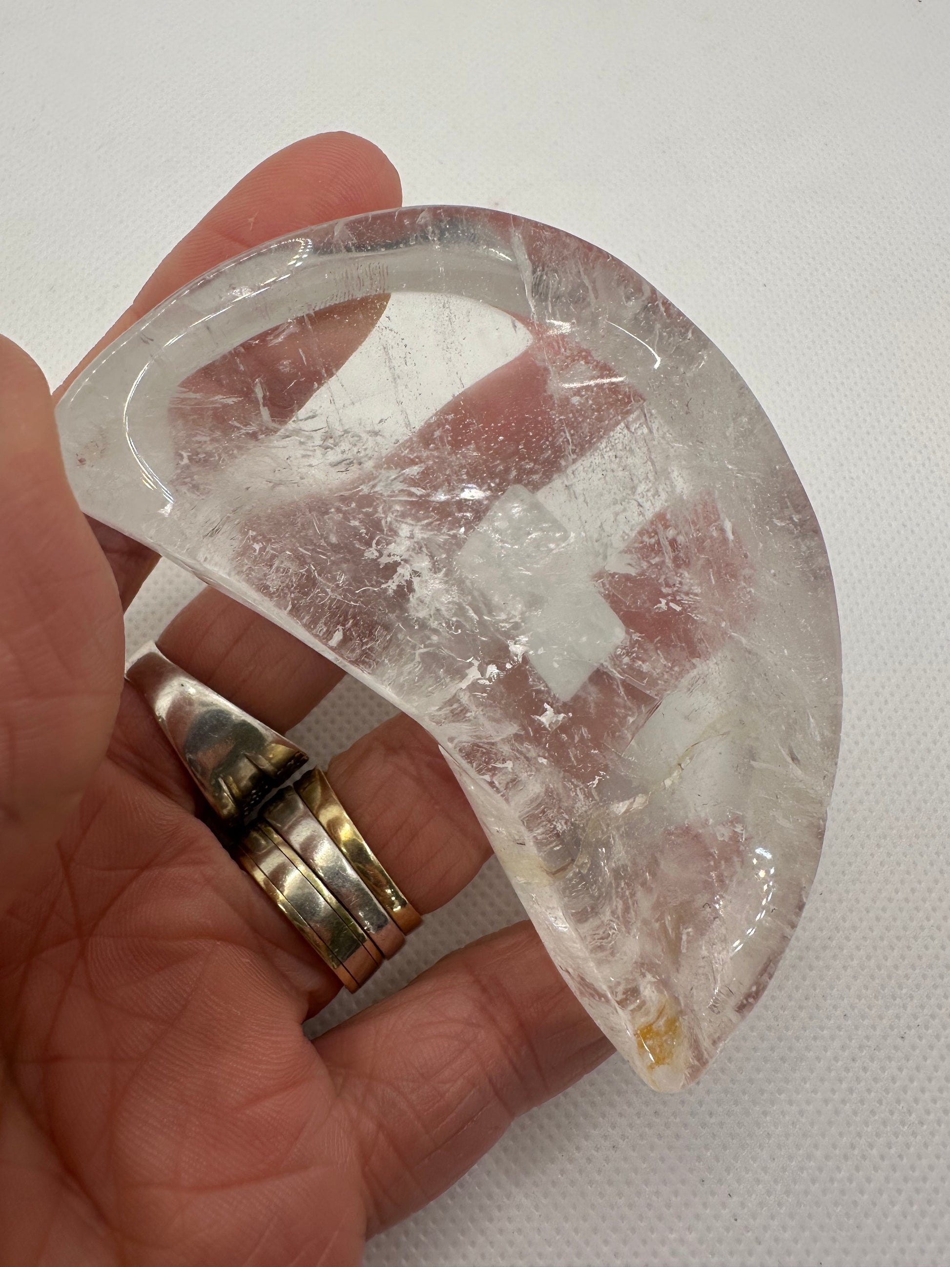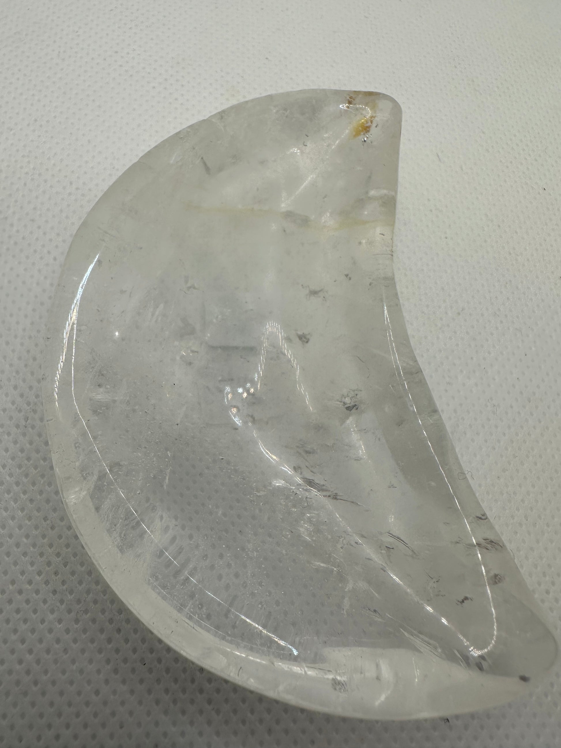 This Clear Quartz Moon Bowl is a powerful tool for meditation and manifestation. Made from clear quartz, it enhances concentration and clarity while also amplifying intentions and energy. Perfect for any spiritual or wellness practice, this bowl is a must-have for those seeking inner peace and balance.