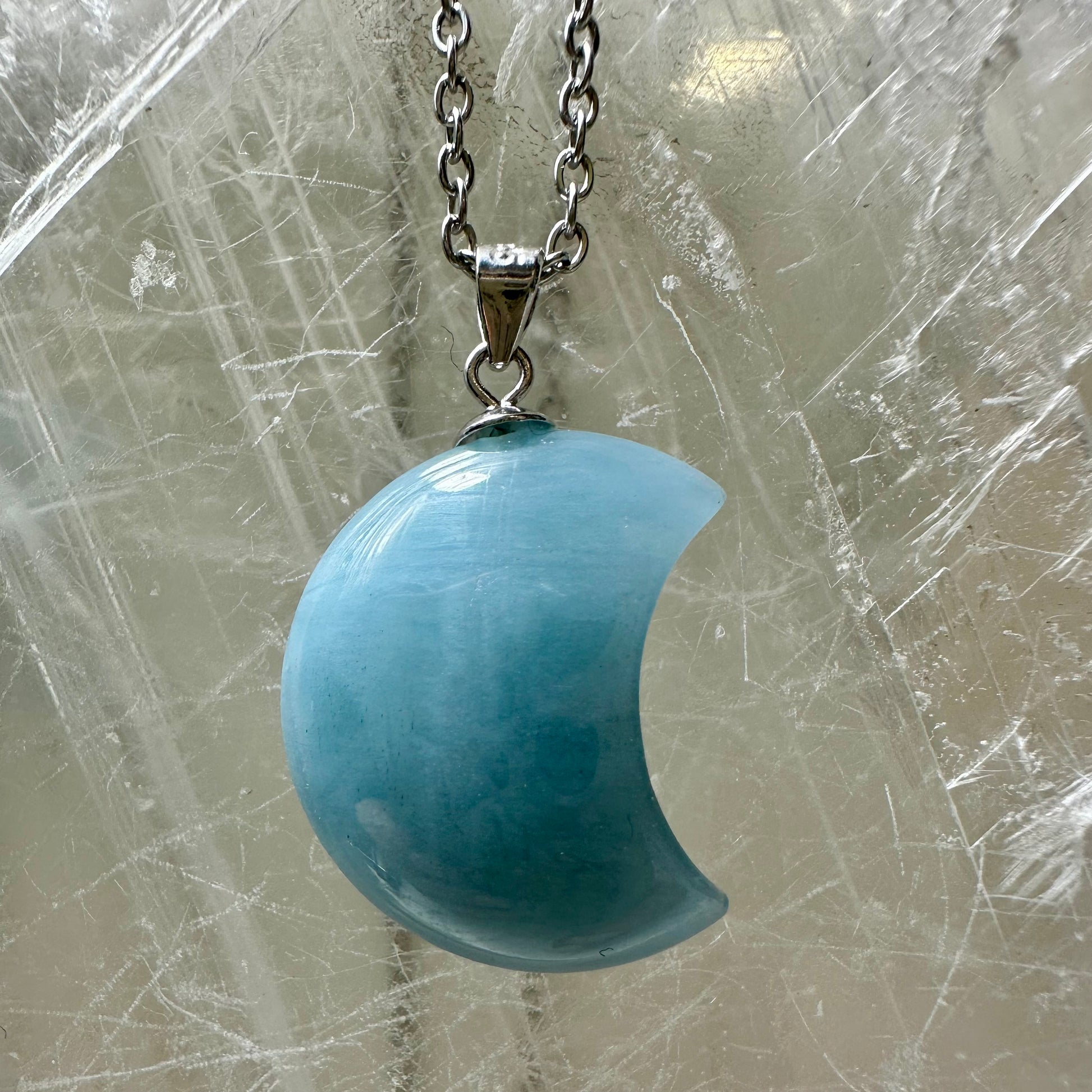925 Aquamarine Moon Pendants 2cm Crafted from sterling silver, these delicate moon pendants feature genuine aquamarine gemstones measuring 2cm. Aquamarine has long been revered for its calming properties, traditionally associated with clarity, courage, and emotional balance. The serene blue hues evoke the tranquility of water and sky, making these pieces ideal for those seeking spiritual grounding or meaningful jewellery. Each pendant combines timeless lunar symbolism with the gemstone's reputed ability to soothe anxiety and enhance communication. Perfect as a gift or personal talisman for crystal enthusiasts and jewellery lovers alike.
