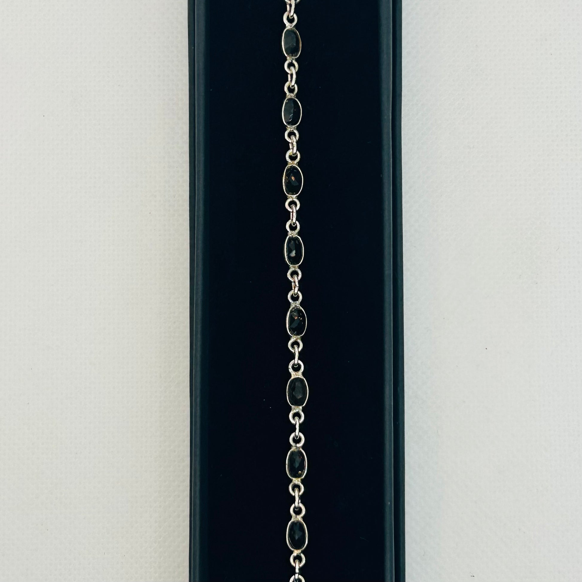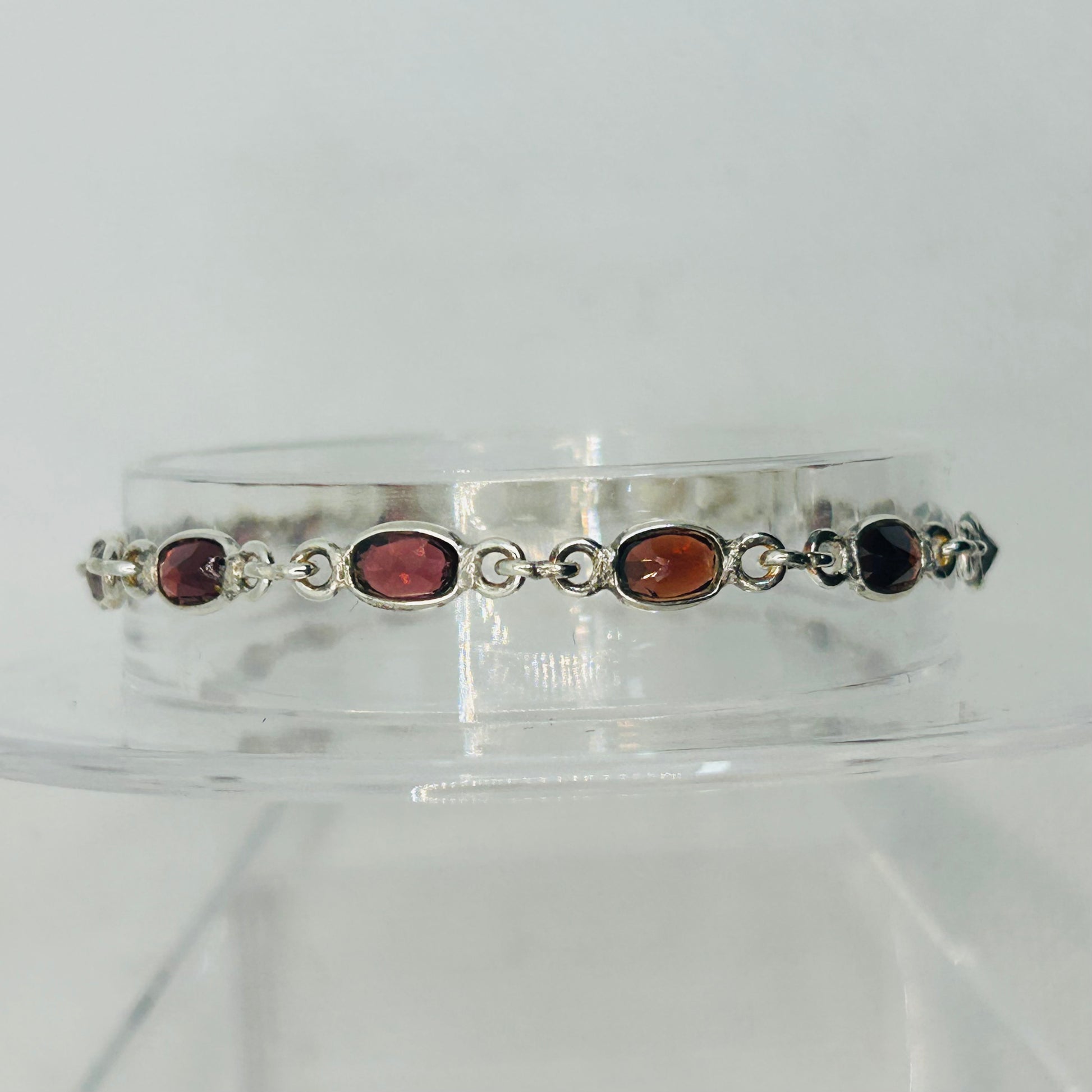 This 925 Garnet Bracelet is expertly crafted with high-quality and durable 925 silver, highlighting its stunning, deep red garnet gemstones. With its timeless design and bold color, this bracelet is perfect for adding a touch of elegance to any outfit. Indulge in beauty and sophistication with this exquisite piece.