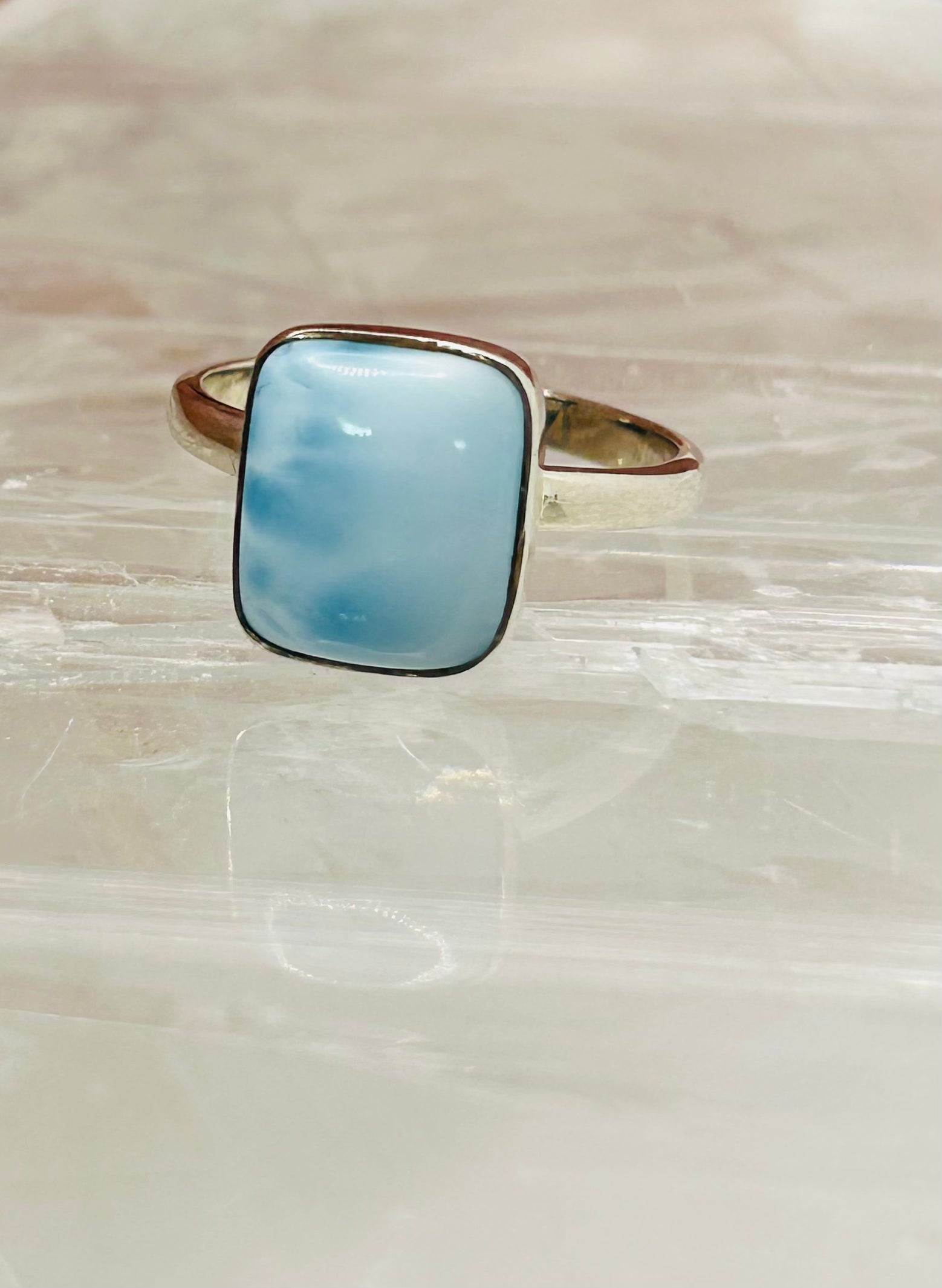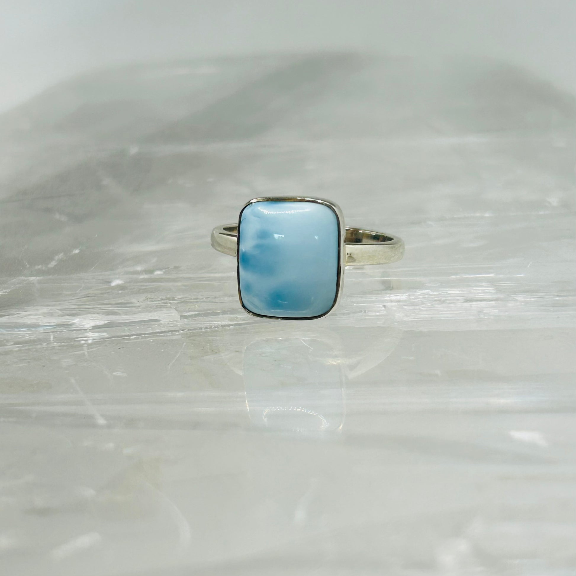 Crafted with genuine 925 Larimar stone, this ring holds powerful meaning. The calming blue hues promote inner peace and harmony, making it a perfect addition to any outfit. Embrace the positive energy and channel your inner strength with this stunning accessory.