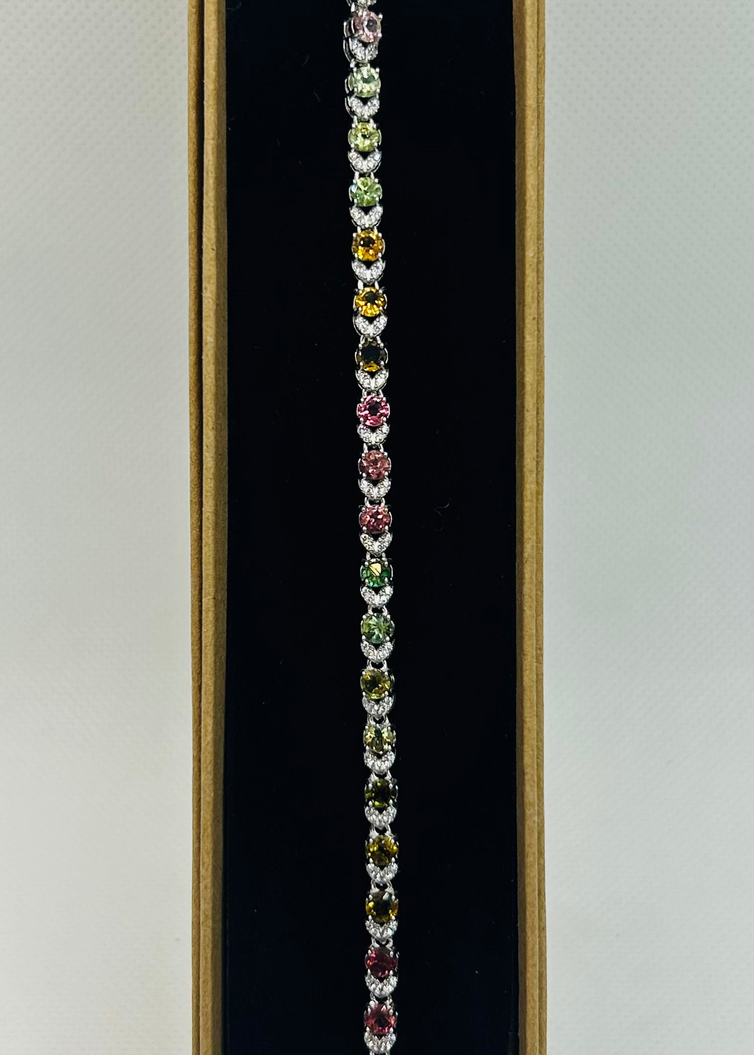 Crafted with premium 925 sterling silver, this Mixed Tourmaline Bracelet is not only stunning, but also carries deep meaning. With a mix of vibrant and healing tourmaline stones, each bracelet is unique and provides positive energy for the wearer. Embrace beauty and balance with this exquisite piece.