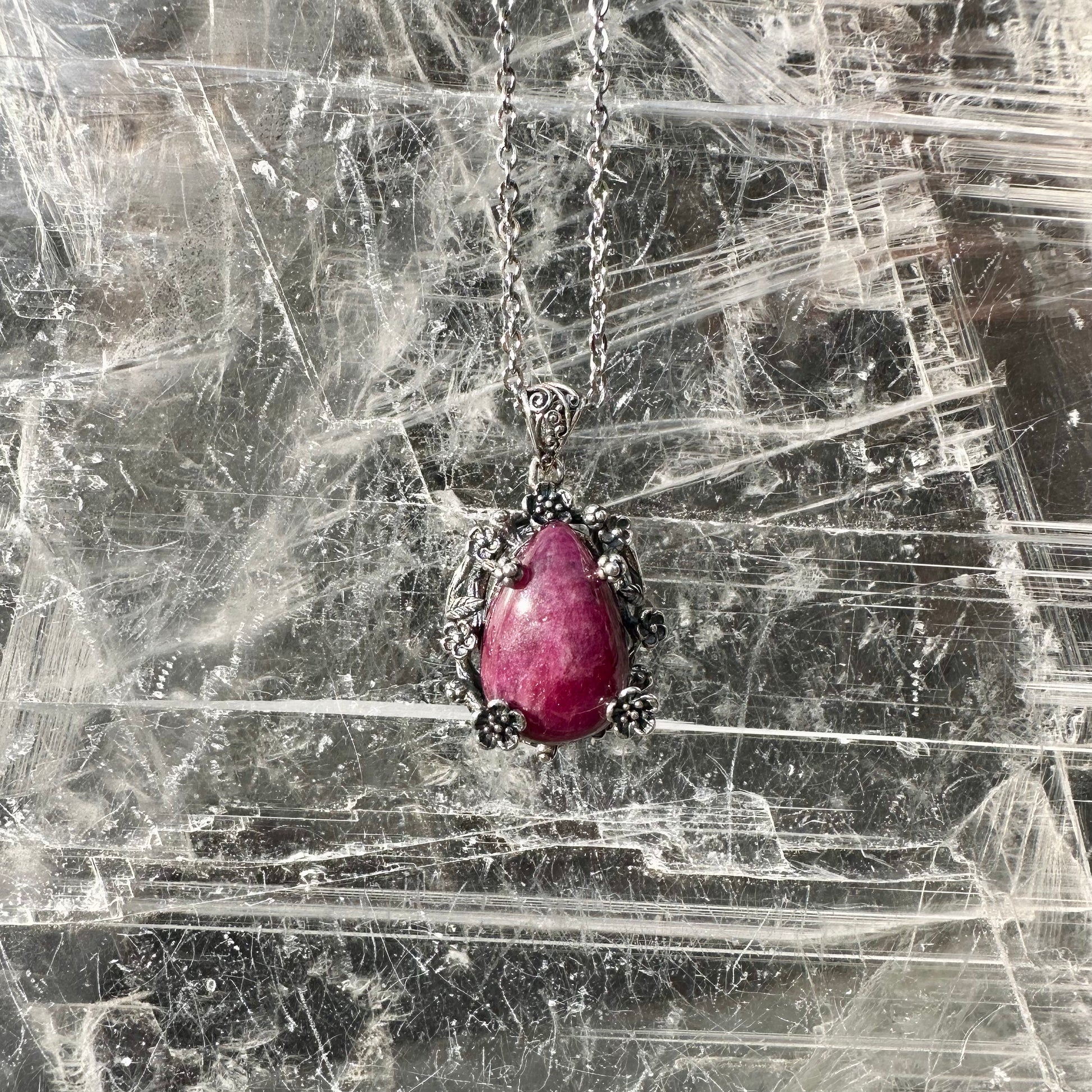 Crafted from high-quality 925 sterling silver, this ruby pendant showcases a vibrant, natural ruby gemstone known for its rich red hue and durability. The pendant’s elegant design allows the ruby to catch light beautifully, making it a timeless addition to any jewelry collection. Perfect for those seeking both sophistication and lasting value, this piece combines expert craftsmanship with the symbolic allure of ruby, traditionally associated with passion and vitality.