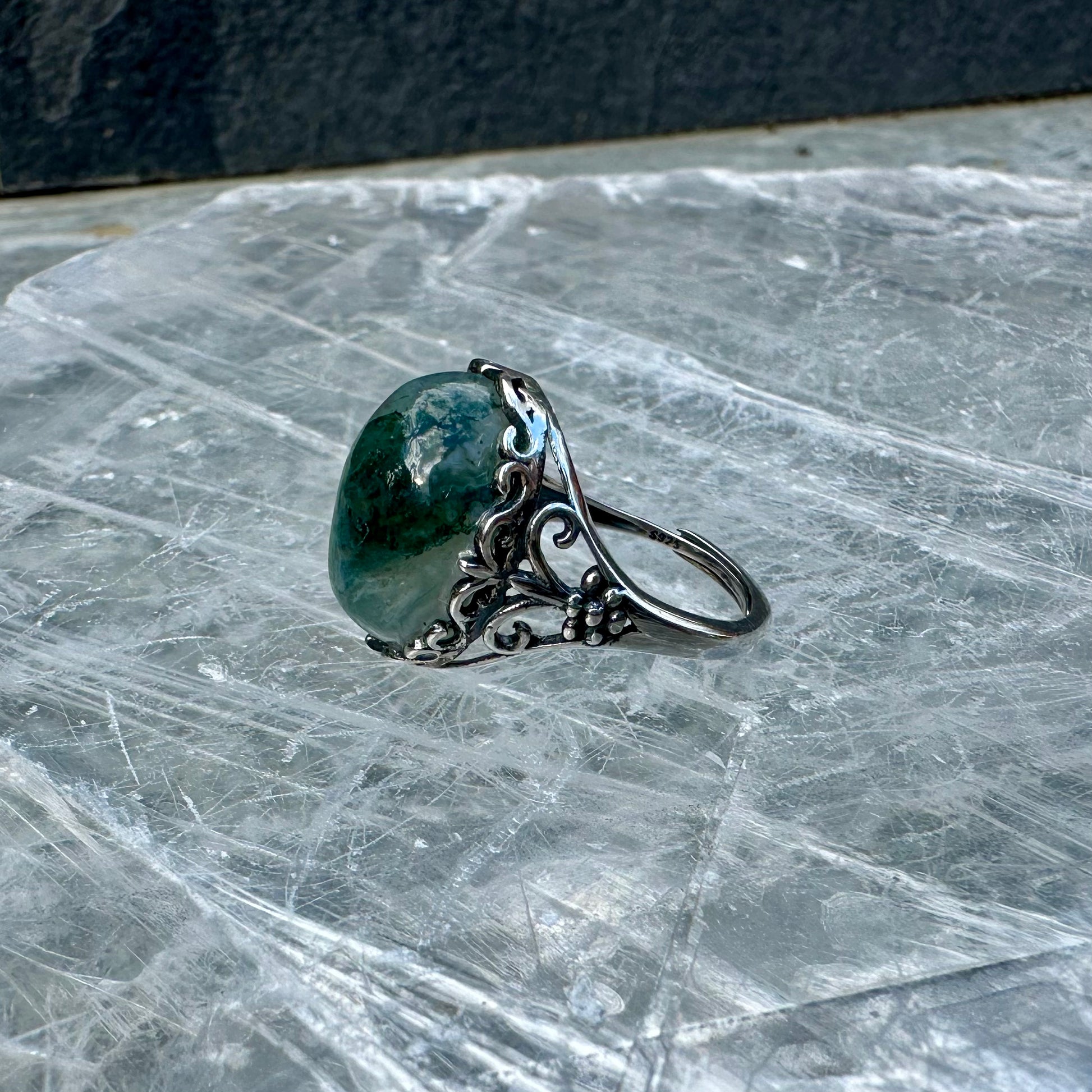 Crafted from genuine 925 sterling silver, these adjustable rings feature exquisite moss agate stones known for their unique green patterns and grounding properties. The adjustable design ensures a comfortable fit for various finger sizes, combining both elegance and versatility. Ideal for those who appreciate natural beauty and quality craftsmanship, these rings seamlessly blend style with meaningful symbolism.