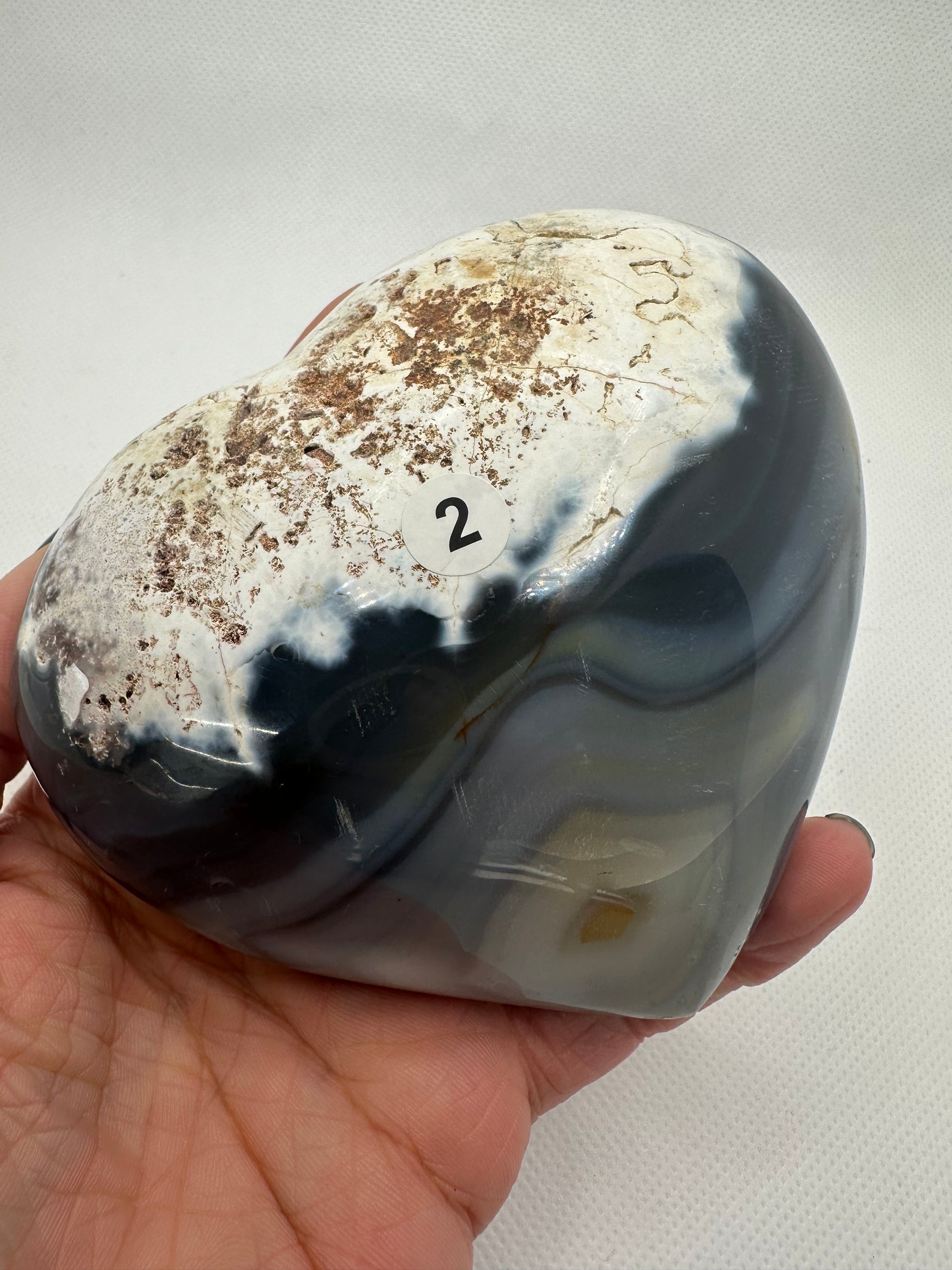 Manufactured using high-quality Orca Agate, this heart pendant showcases the unique and natural patterns and colors of this gemstone. Experience the grounding and balancing properties of this stone while adding a unique touch to your jewelry collection.
