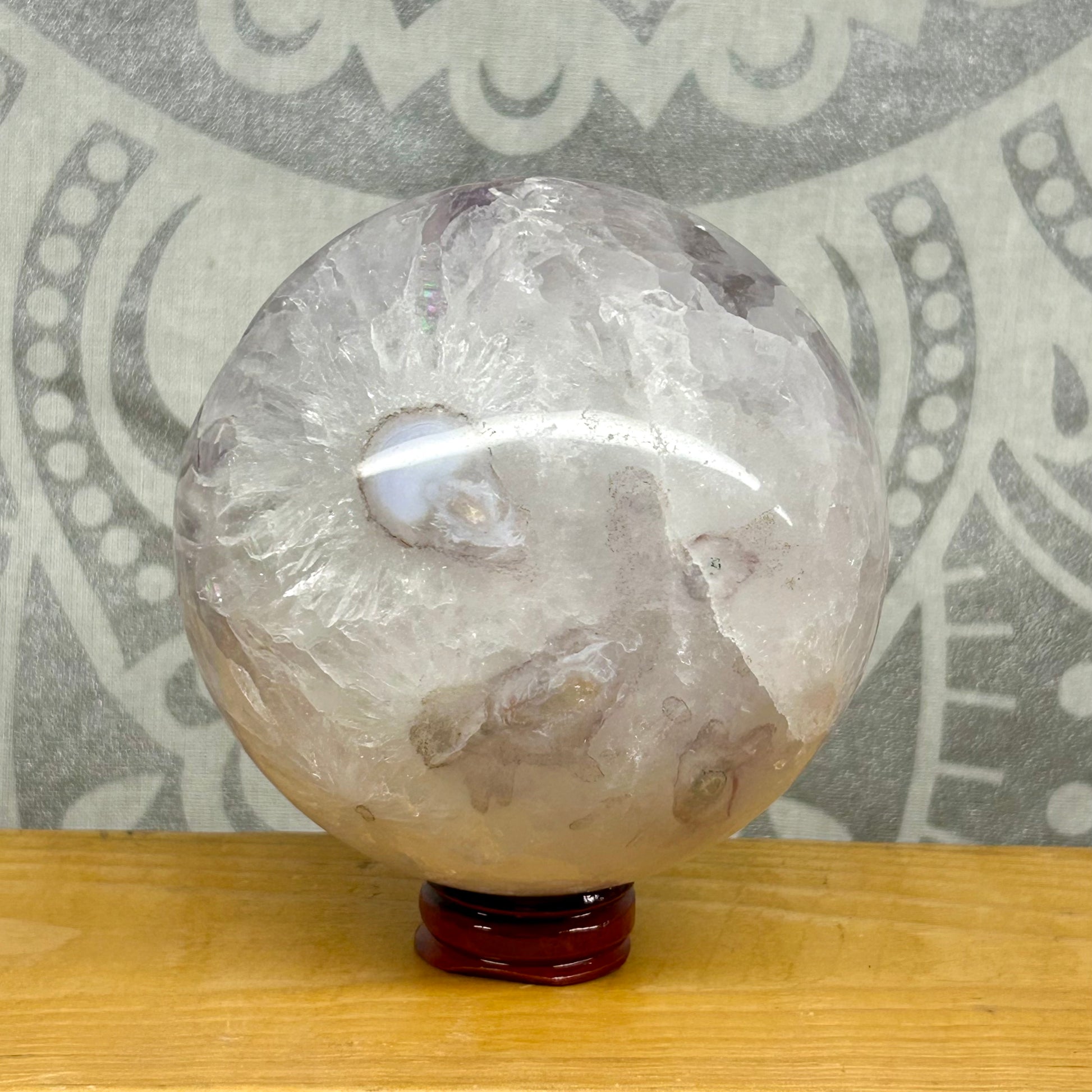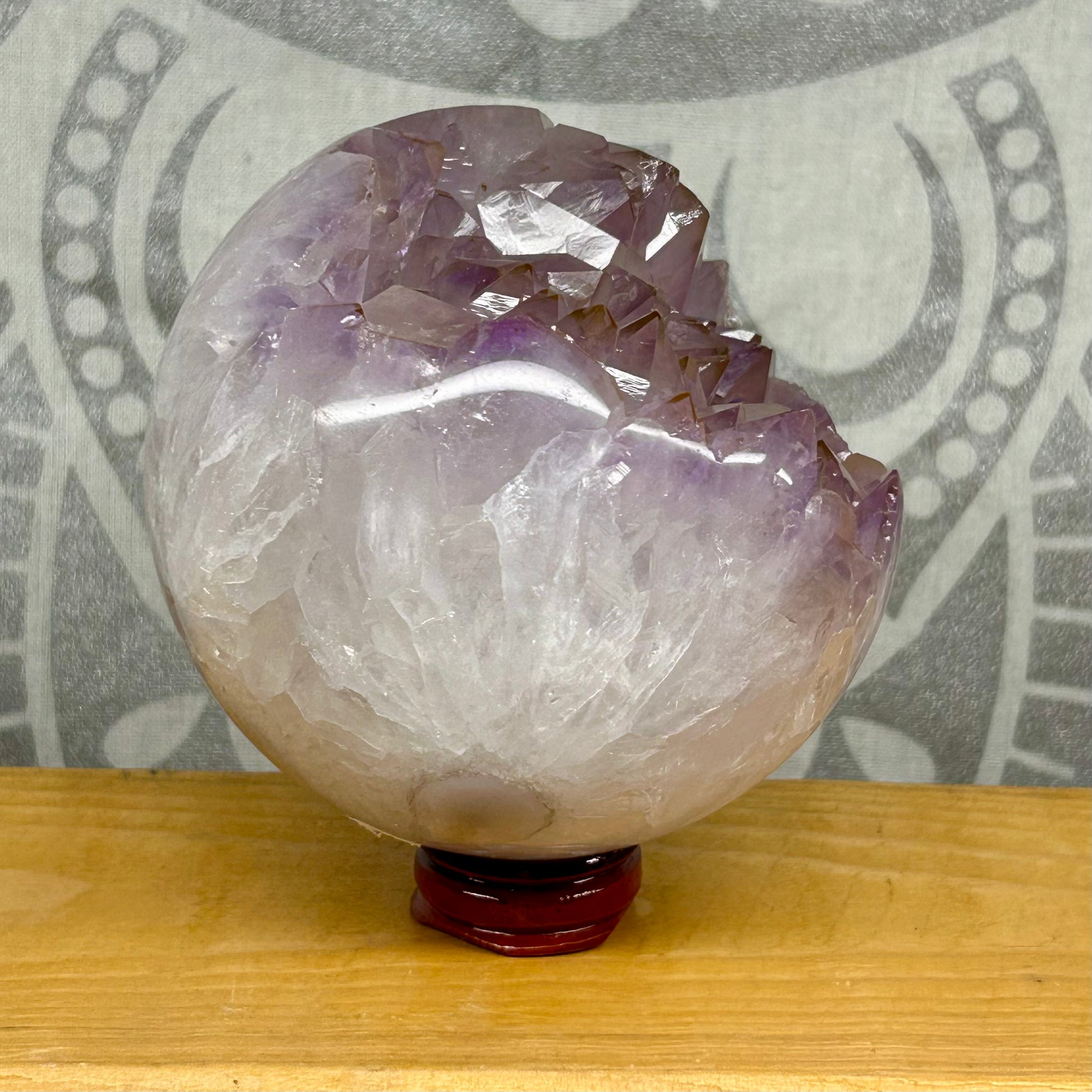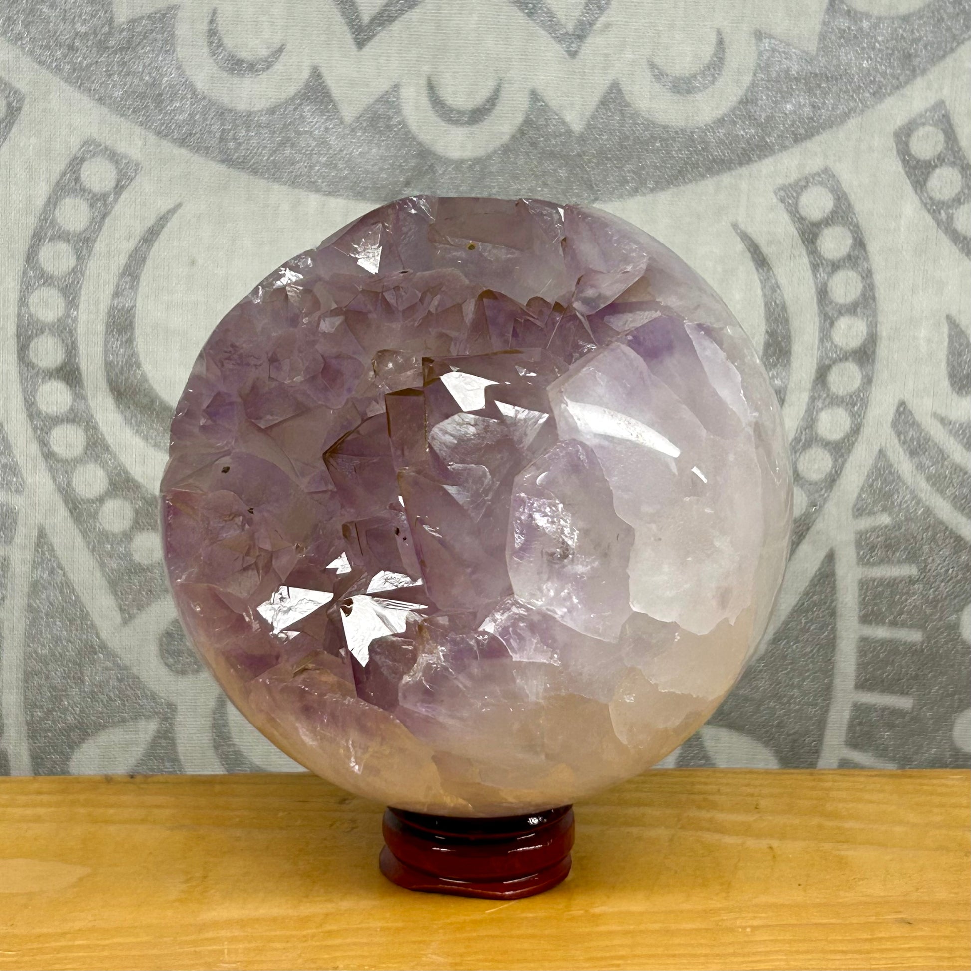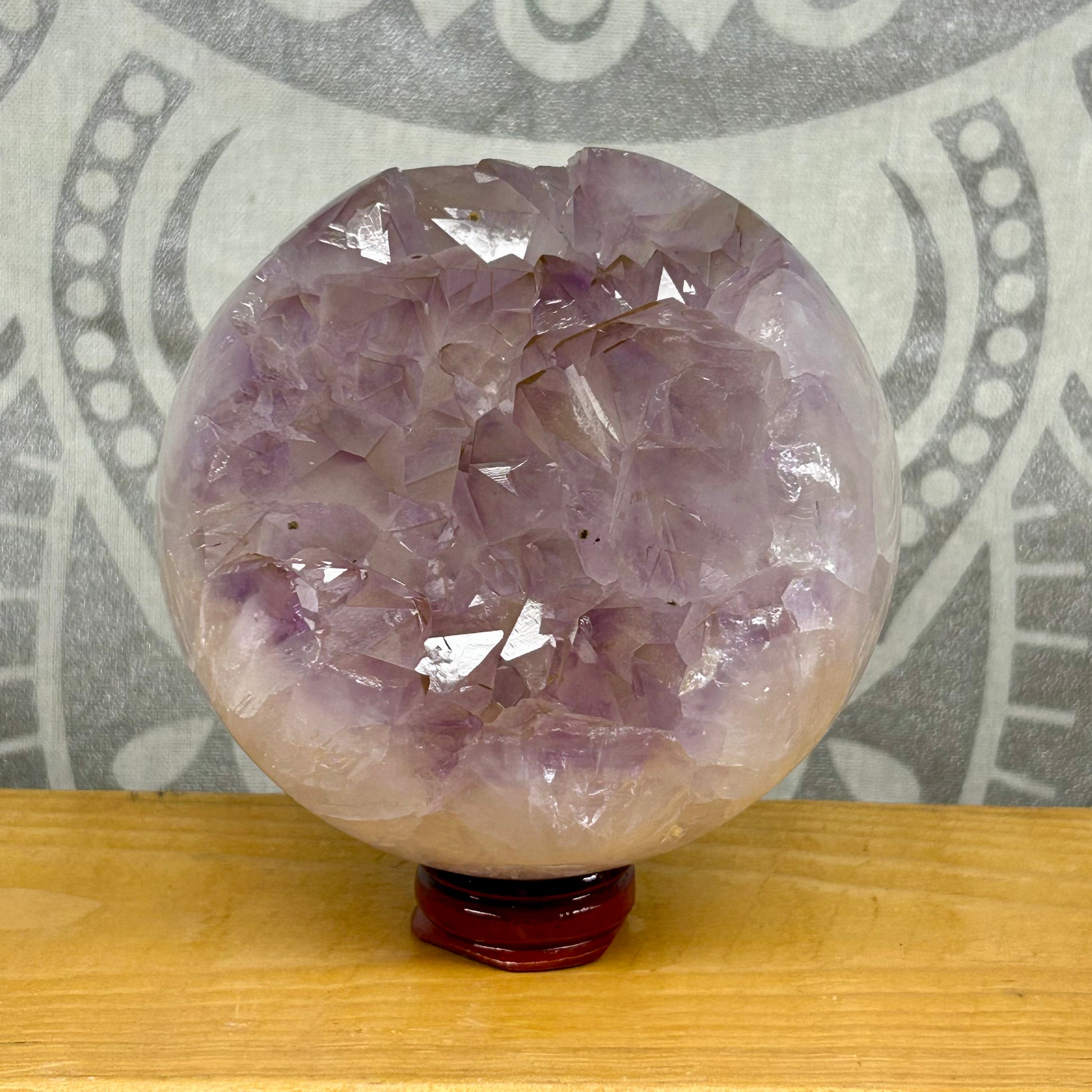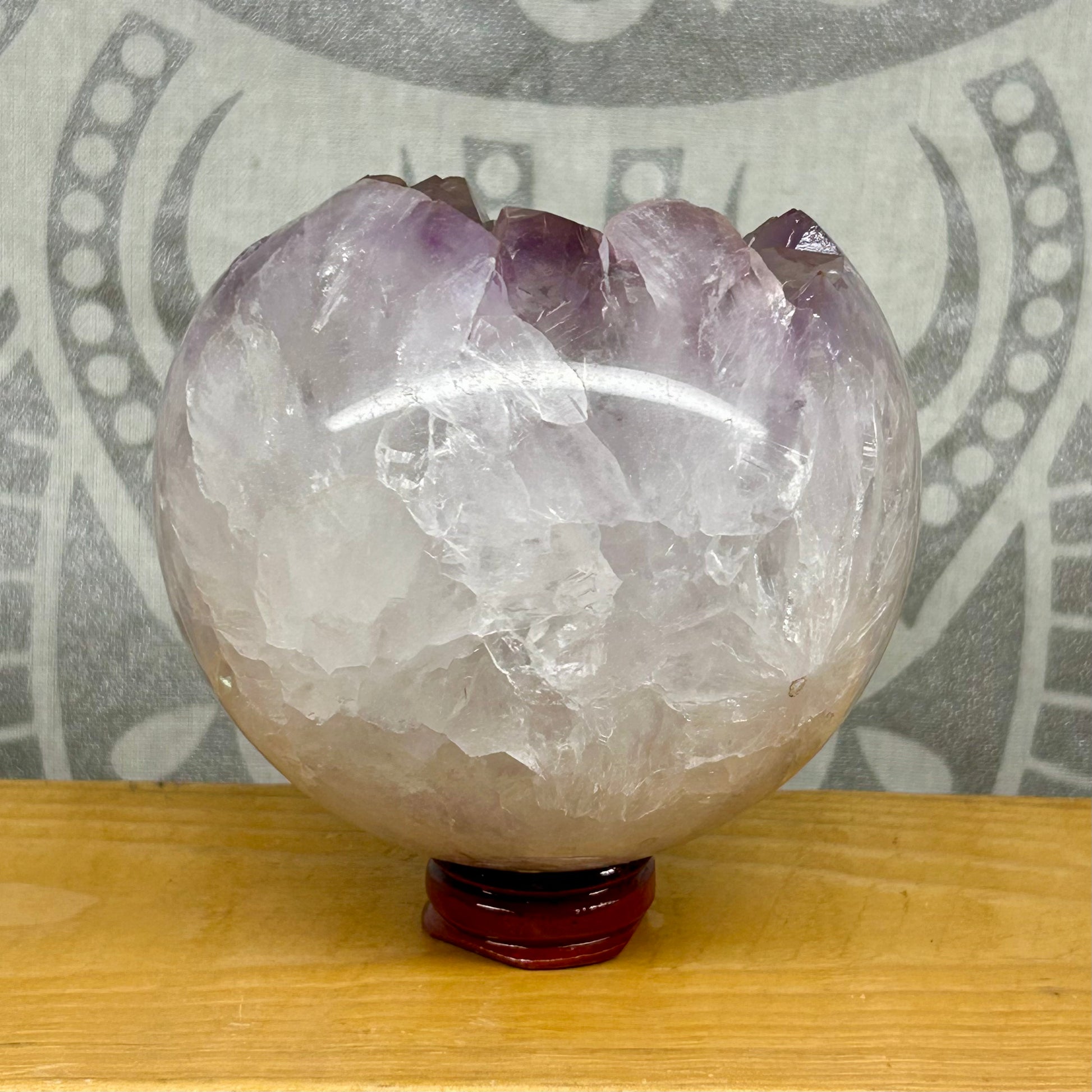 Amethyst Cluster Spheres, each approximately 10cm in diameter, are unique natural formations prized for their rich violet hues and intricate crystal structures. These one-of-a-kind spheres showcase the raw beauty of amethyst clusters, offering both aesthetic appeal and potential calming energy. Ideal for collectors and those seeking to enhance meditation spaces, each sphere embodies the distinct mineral patterns that make every piece truly singular.