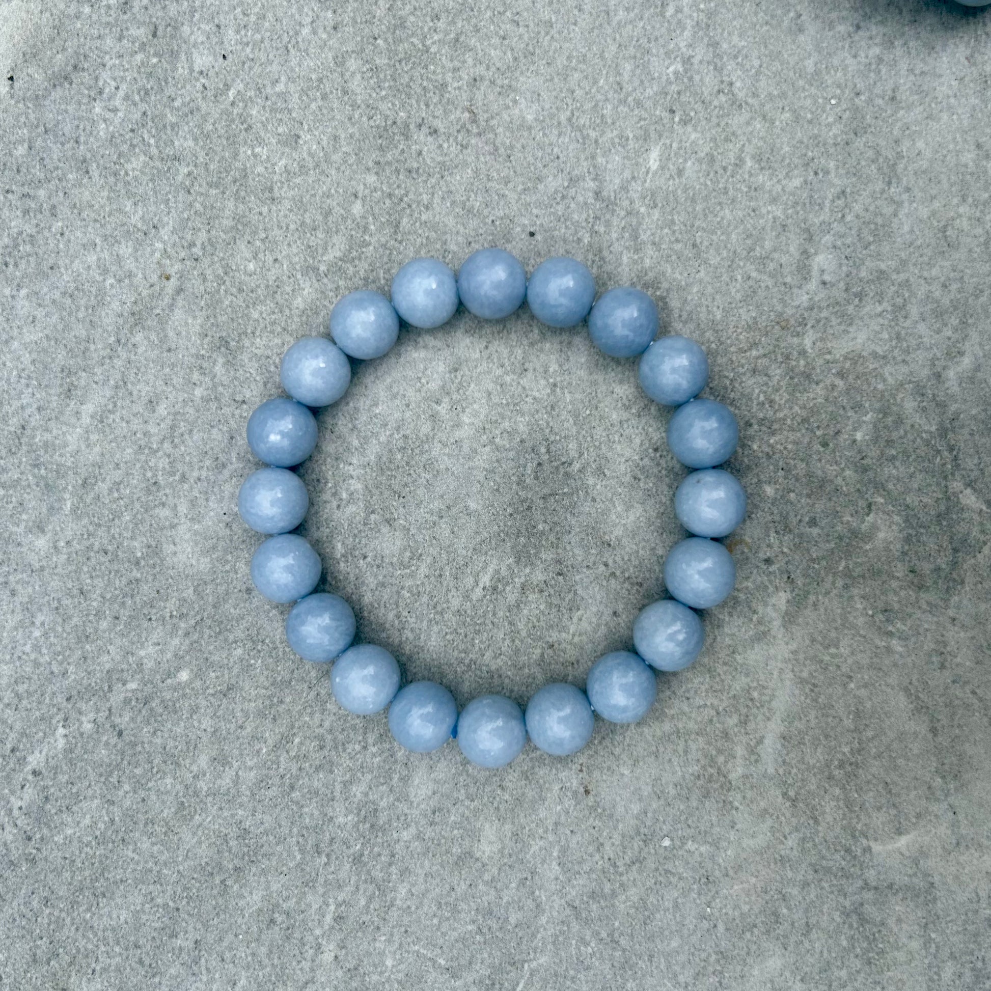 Angelite bracelets feature smooth 8mm beads known for their calming blue hues and soothing energy. This natural stone is prized for promoting peace, communication, and emotional balance. Wearing an Angelite bracelet can support mindfulness and enhance spiritual awareness, making it an excellent accessory for those seeking tranquility and clarity in daily life. Crafted with care, these bracelets combine aesthetic appeal with meaningful benefits.