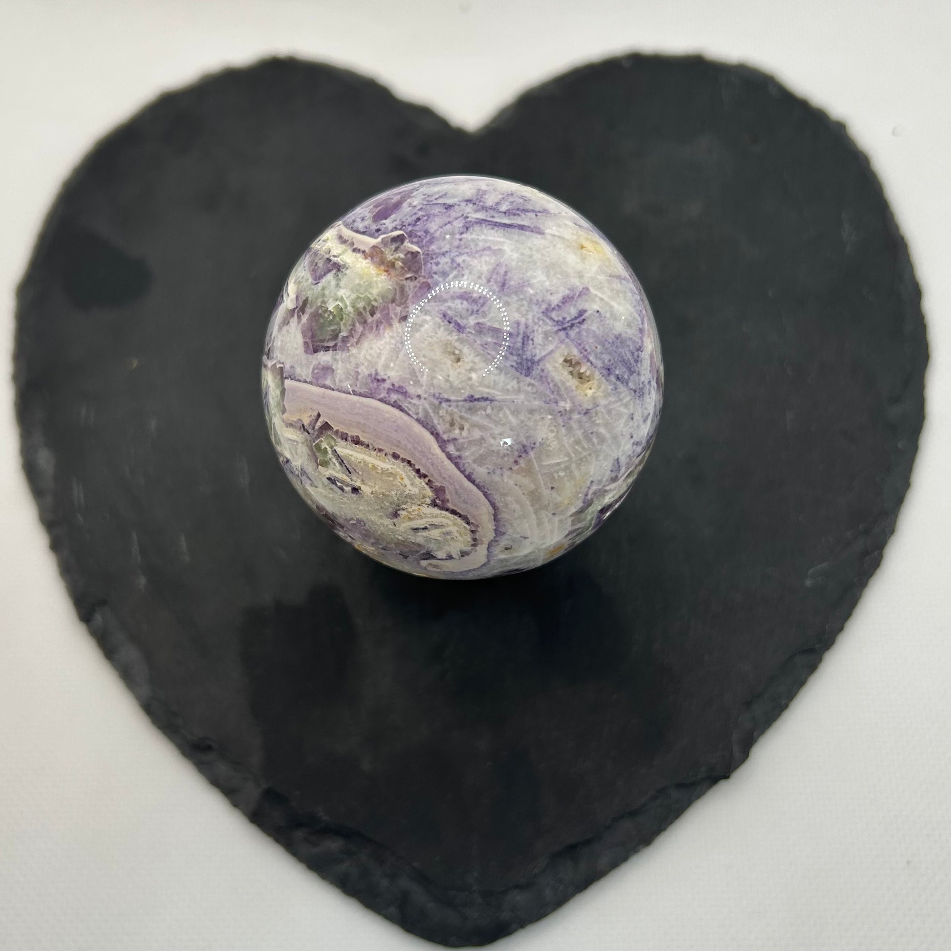 Experience the unique energy of our Violet Fluorite Sphere. Crafted from high-quality violet fluorite, this sphere has a smooth surface and a mesmerizing appearance. With its calming and balancing properties, this sphere is perfect for meditation and healing practices. Add a touch of beauty and tranquility to your space with our Violet Fluorite Sphere.