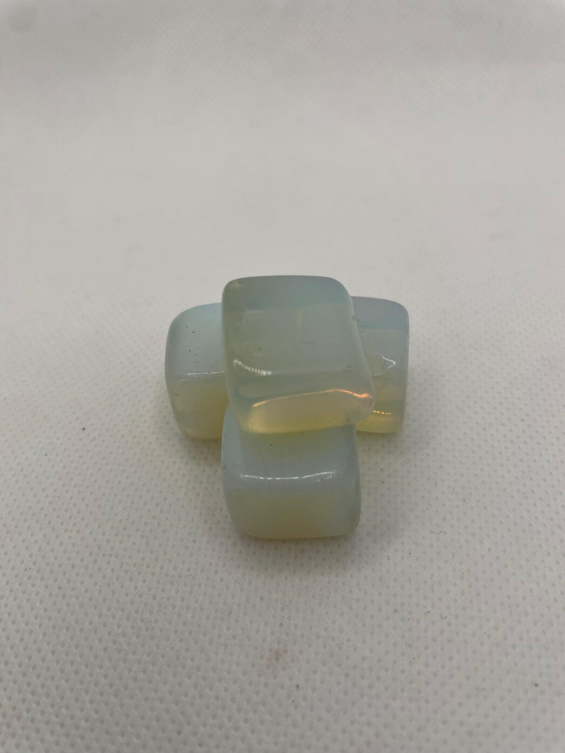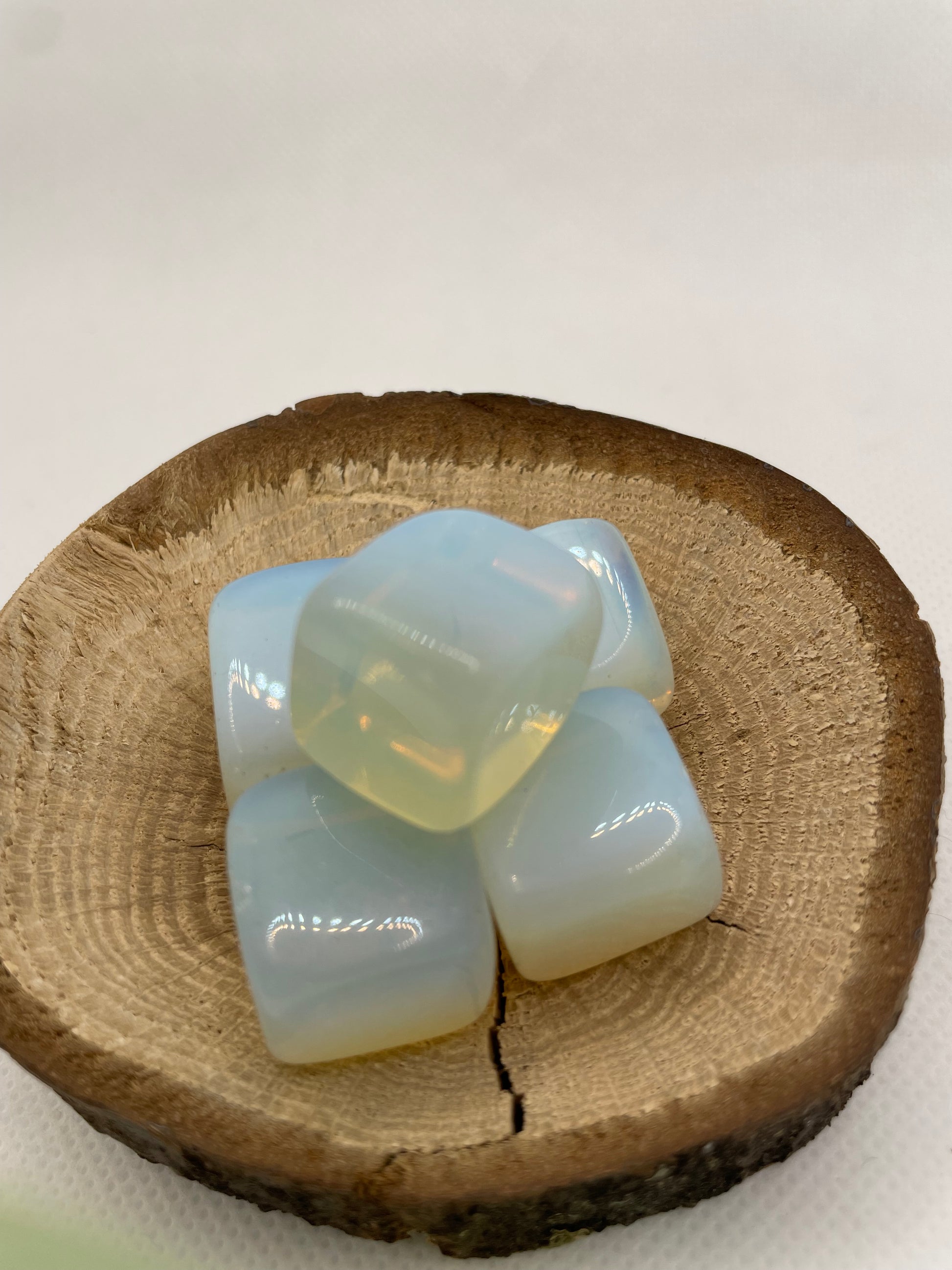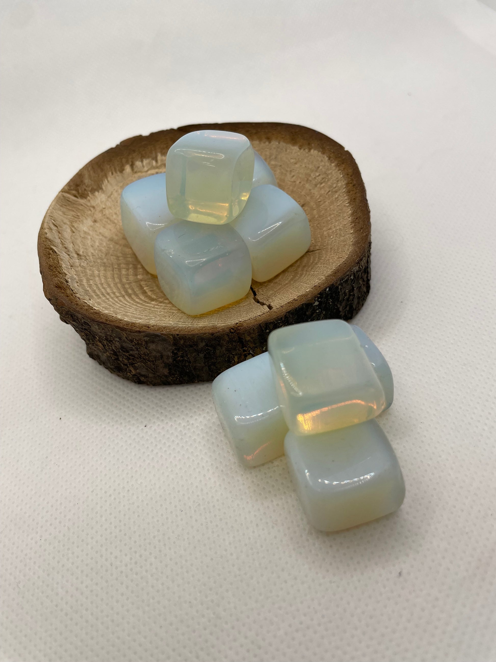 These Opalite Cube Tumbles are beautiful and mesmerizing. Formed from natural opalite, these tumbled stones have a unique cube shape that makes them perfect for meditation or crystal grids. Enhance your spiritual practices with the soothing and calming energy of opalite.