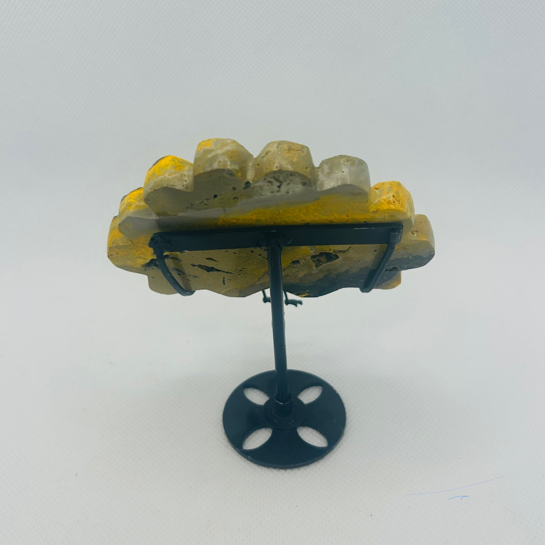 This Bumble Bee Jasper Peacock, displayed on a stand, is a unique and eye-catching addition to any space. The vibrant colors and intricate patterns of this natural stone make it a beautiful decorative piece. With its organic and one-of-a-kind nature, this peacock is sure to be a conversation starter.