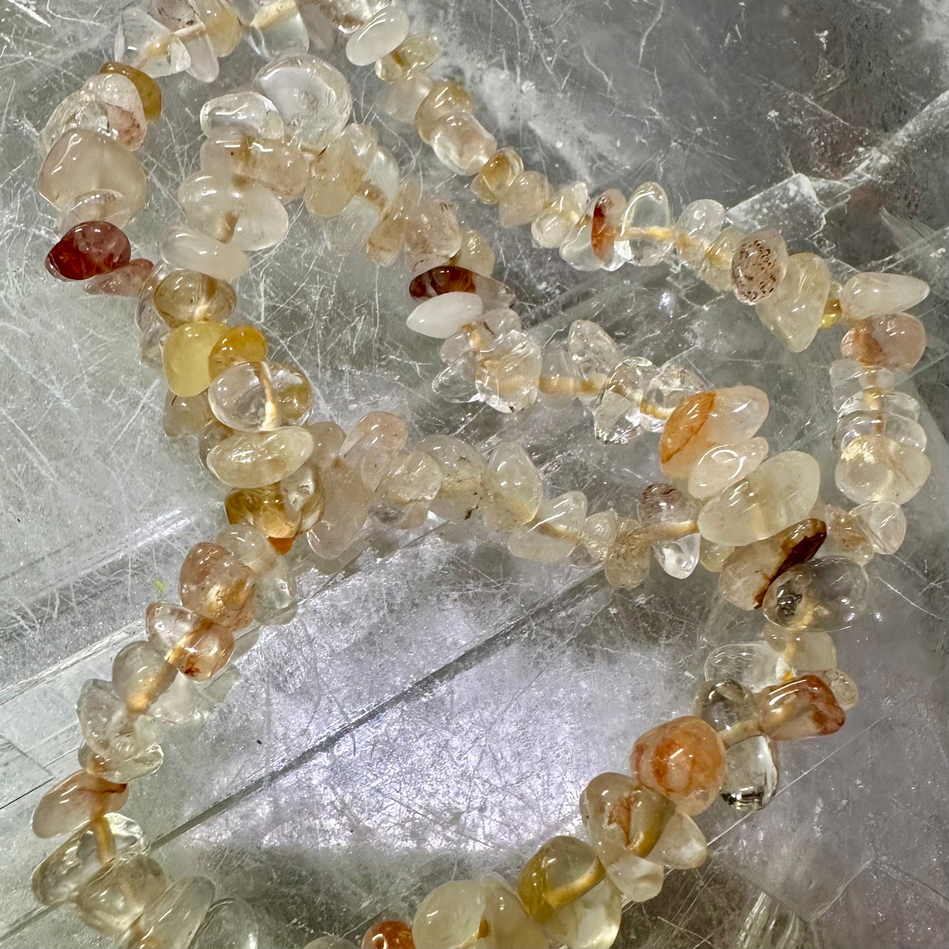 Enhance your energy and success with our Citrine Chipped Bracelet. Made of genuine citrine, this bracelet is known for boosting confidence and attracting abundance. Harness the power of this crystal and achieve your goals with ease.