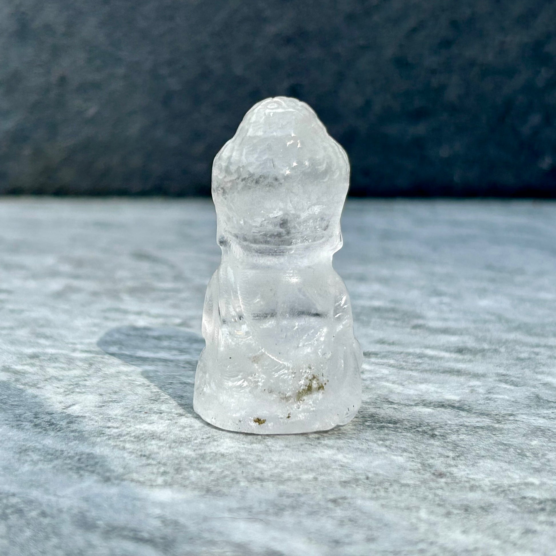 This 4cm Clear Quartz Mini Buddha Carving is meticulously crafted to combine spiritual symbolism with the natural clarity of quartz. Known for its purifying energy, clear quartz enhances meditation and promotes emotional balance. Its compact size makes it ideal for personal altars, meditation spaces, or as a thoughtful gift for those seeking harmony and mindfulness in their daily lives.