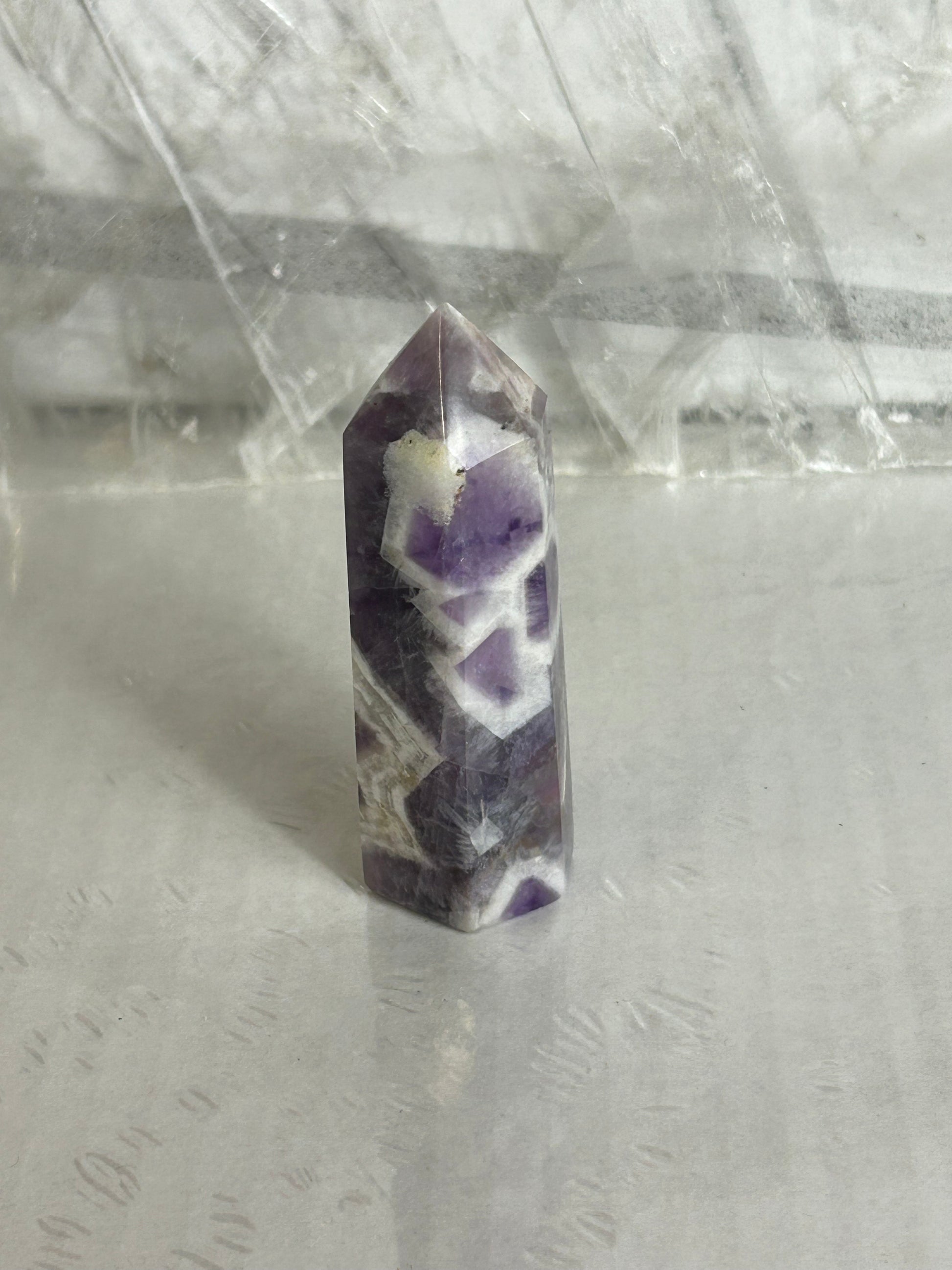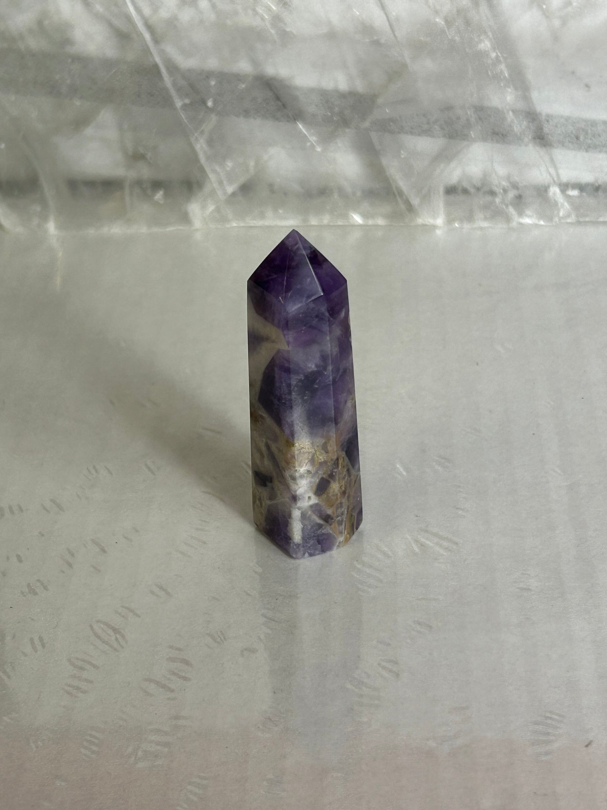 Our Dream Amethyst Towers are stunning natural crystal points known for their calming beauty and rich violet tones ✨ Each tower features unique patterns of soft purples, lavenders, and milky white inclusions, making every piece truly one of a kind 🌸 Carefully polished into a sleek tower shape, these crystals are perfect for display, meditation spaces 🧘♀️, desks, or crystal collections 🪄 Dream Amethyst is often associated with peace ☁️, balance ⚖️, and clarity 🔮, making these towers both visually soothing and meaningful. A beautiful addition to any space—whether you’re drawn to crystals for their energy or their natural elegance 💫