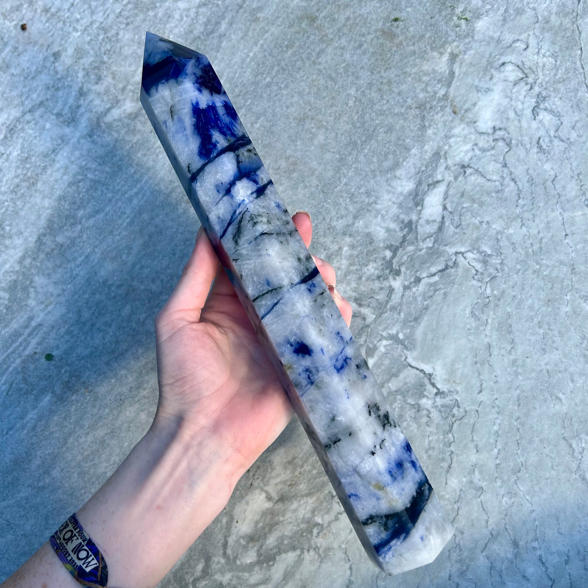 Enhance your crystal collection with our Dumorterite Tower. This large 30cm tall tower features a high-grade Dumorterite crystal, providing you with the highest quality and most vibrant energy. Become an expert in the crystal world and add this scientific and objective crystal tower to your collection today.
