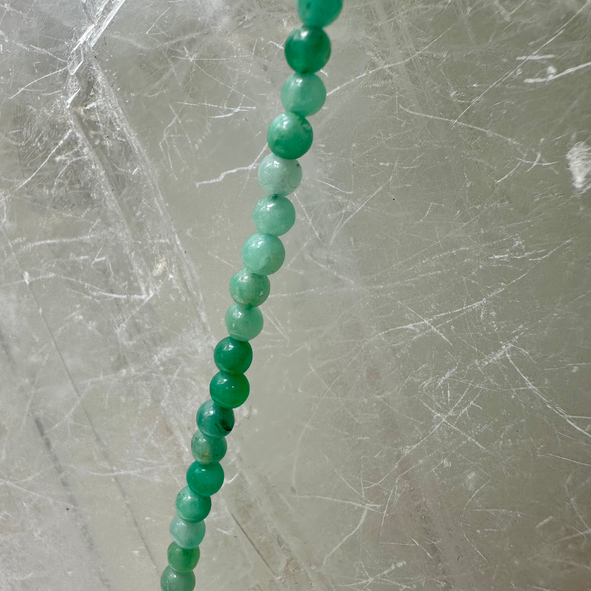 Emerald has long been revered as a stone of wisdom, compassion, and emotional balance. This delicate beaded necklace features 3mm emerald beads strung to a graceful 39cm length, weighing just 6g for effortless everyday wear. Known traditionally to enhance clarity of thought and promote heart-centred communication, emerald is believed to support emotional healing and inner peace. Perfect for those seeking a meaningful piece that combines natural beauty with spiritual significance, this necklace makes an ideal gift for crystal enthusiasts or anyone drawn to emerald's calming, restorative energy.