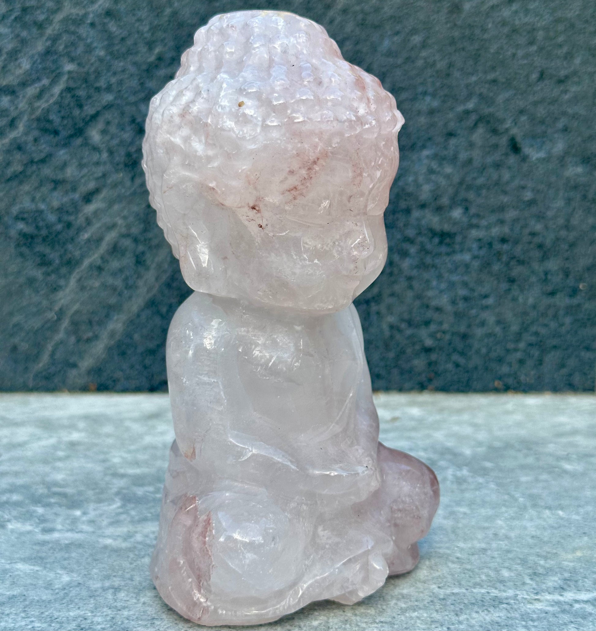 This 15cm tall Fire Quartz Buddha carving showcases finely detailed craftsmanship, blending spiritual symbolism with the unique fiery hues of quartz. Its vibrant coloration and smooth finish make it an elegant accent for meditation spaces or sacred environments, intended to inspire balance and mindfulness. Expertly carved, this piece offers both aesthetic beauty and a meaningful presence for personal reflection or gifting.