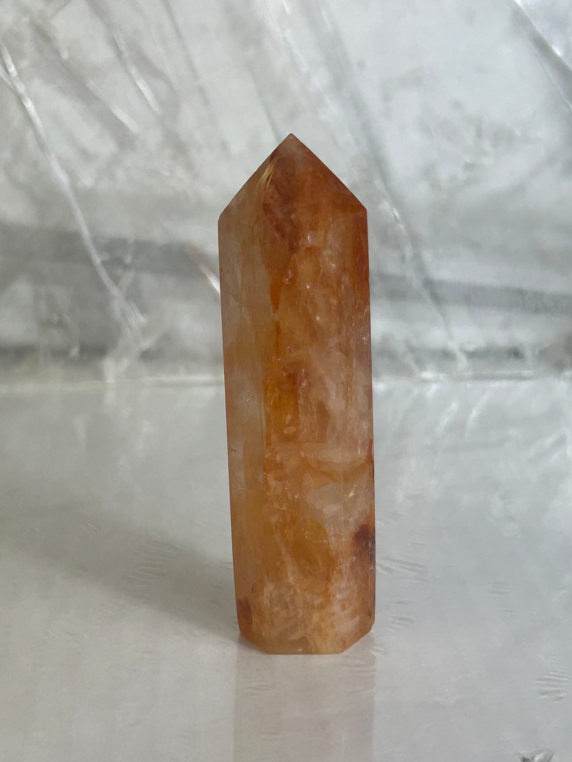 Fire Quartz Towers are striking natural specimens prized by collectors and crystal enthusiasts alike. Each tower showcases the distinctive warm amber and reddish hues characteristic of fire quartz, formed through iron oxide inclusions within clear quartz. These polished pieces serve as compelling focal points for meditation spaces, home décor, or crystal collections. Fire quartz is traditionally associated with grounding energy and vitality. Whether displayed on a shelf, desk, or altar, these towers combine geological beauty with timeless appeal. Perfect as a thoughtful gift for wellness-minded individuals or as a personal talisman.