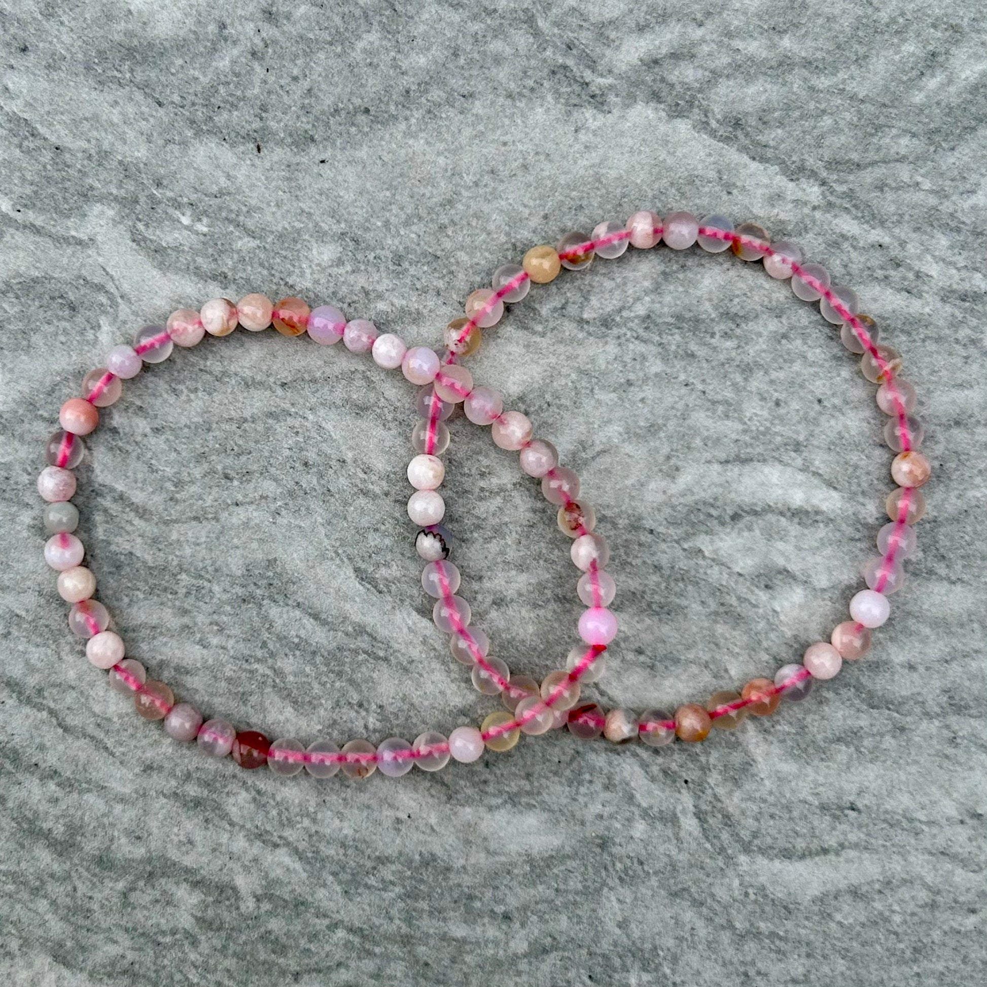Introducing Flower Agate 4mm Bracelets - the perfect addition to your jewelry collection. These bracelets feature beautiful flower-shaped beads made from natural agate, adding a touch of elegance and charm to any outfit. Each bracelet is crafted with high-quality materials and is sure to make a statement.