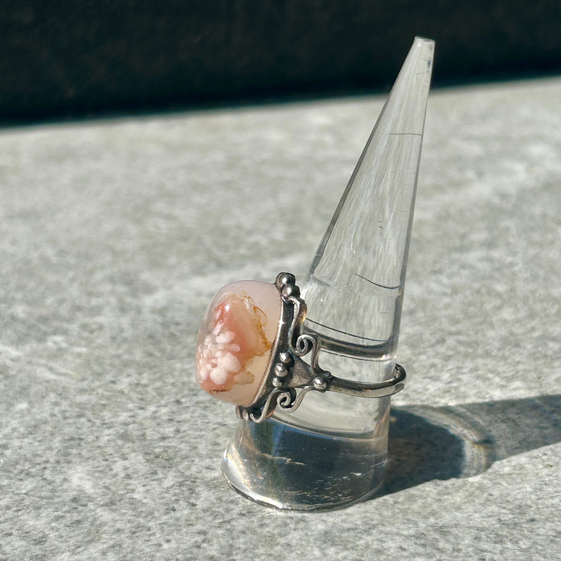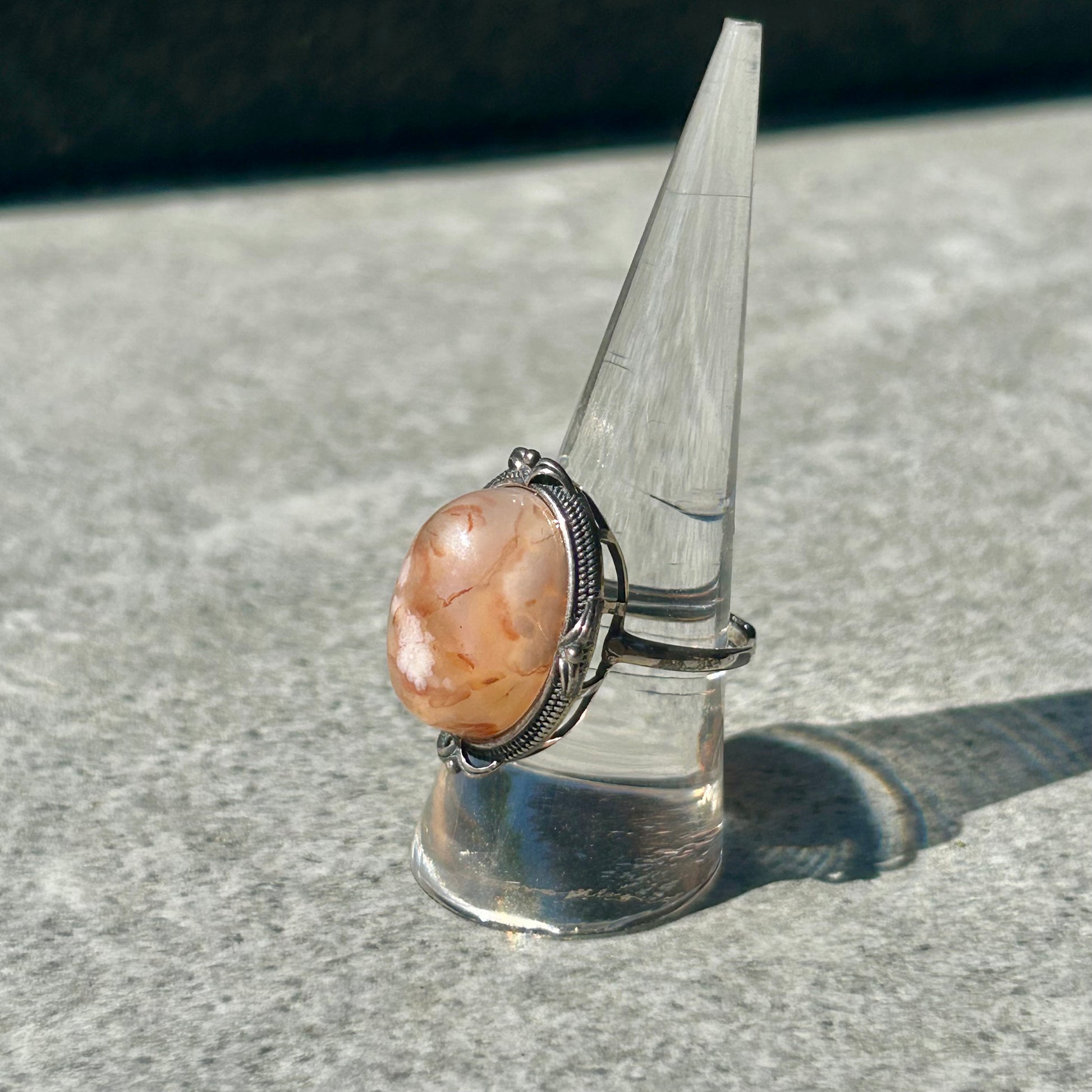Flower Agate & Carnelian Adjustable 925 Rings