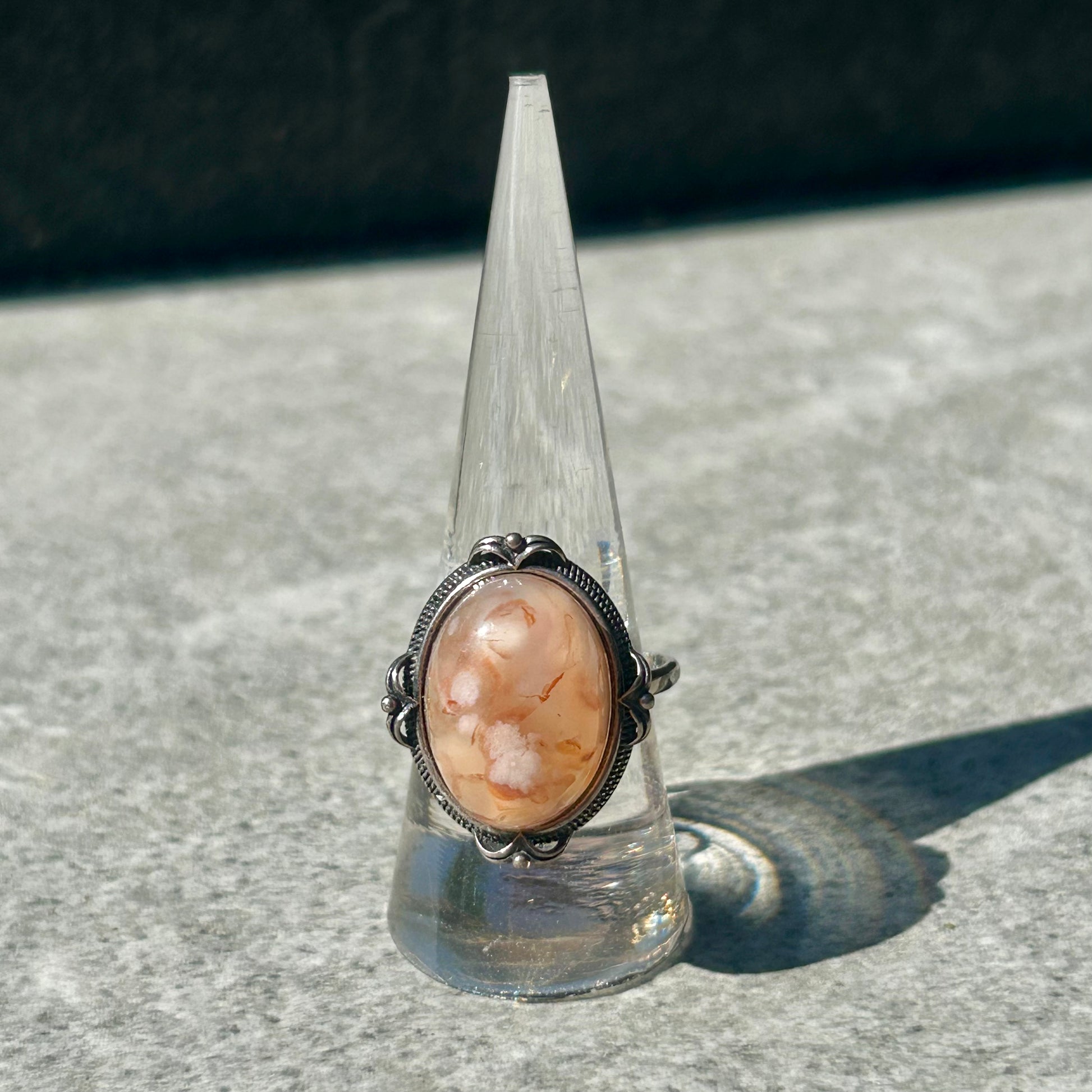 Discover the harmonious blend of Flower Agate and Carnelian set in finely crafted adjustable 925 sterling silver rings. These stones are known for their grounding and energizing properties, making each ring not only a stylish accessory but also a meaningful talisman. The adjustable design ensures a comfortable fit for any finger, combining elegance with versatility. Ideal for those seeking both beauty and balance in their jewelry collection.