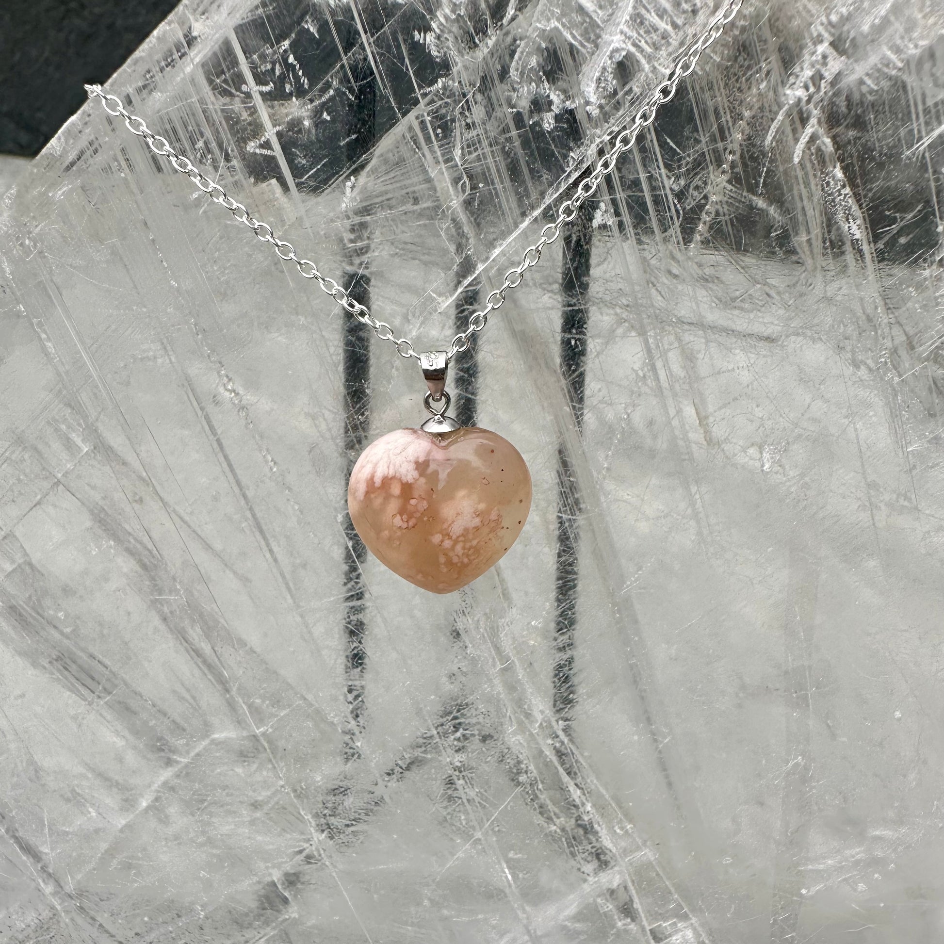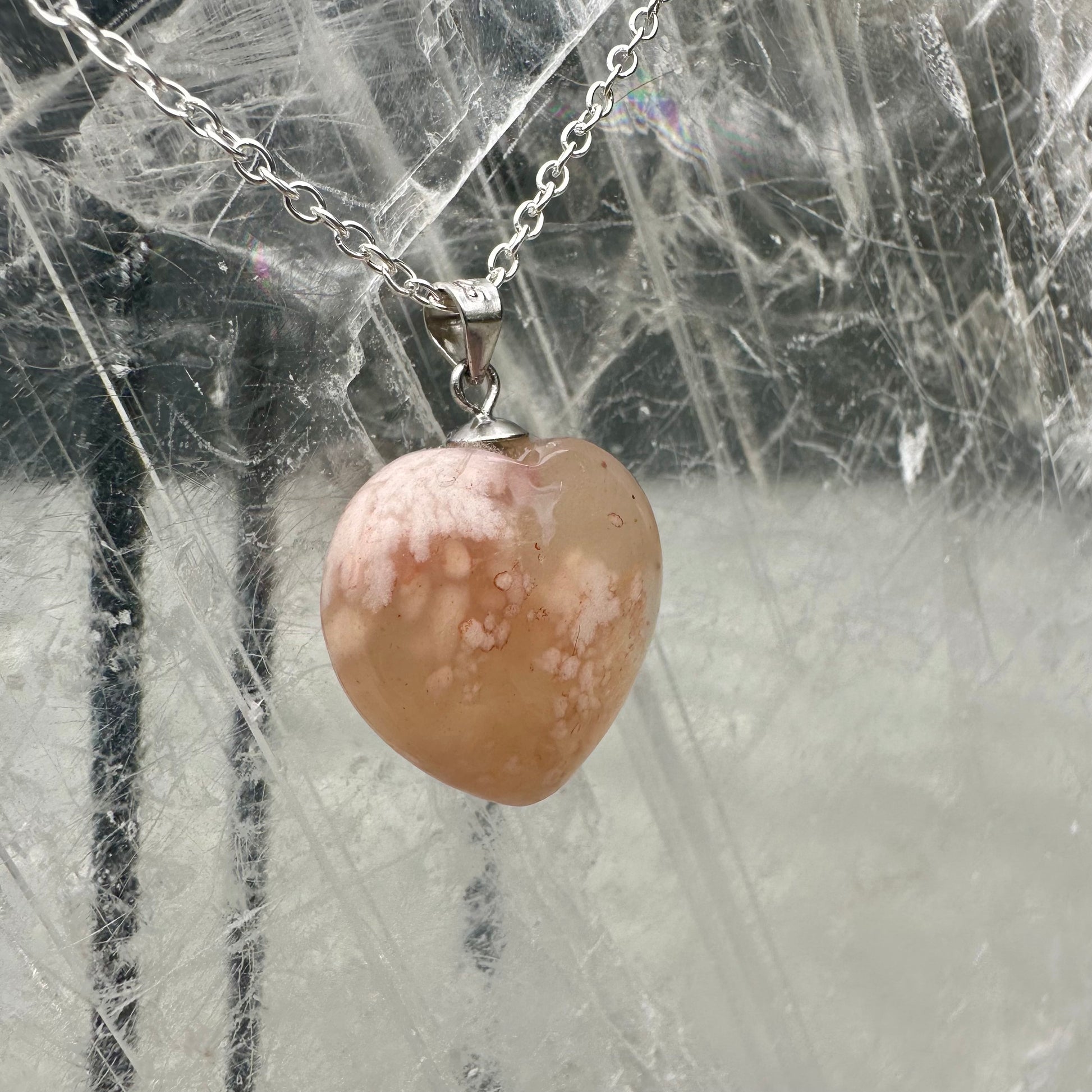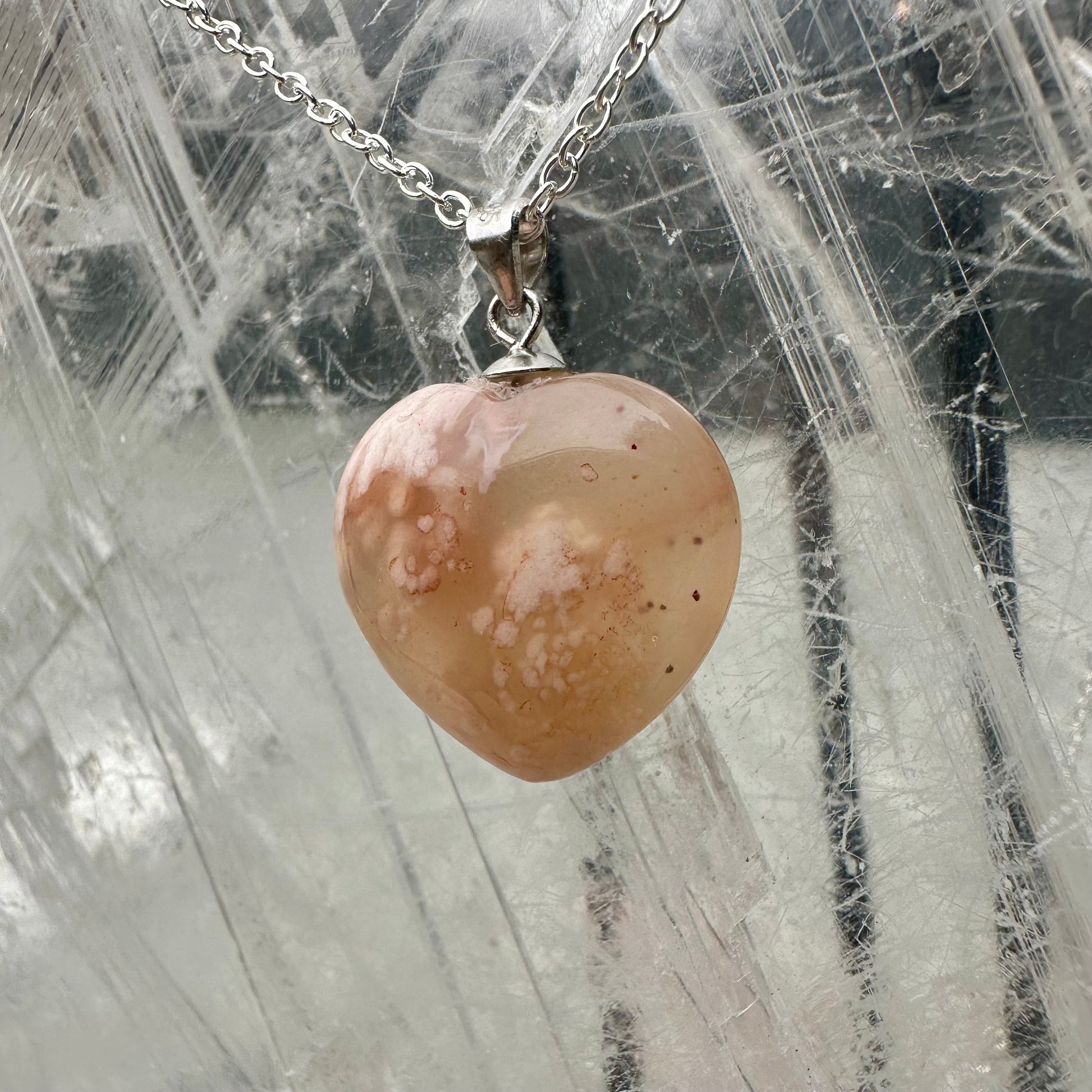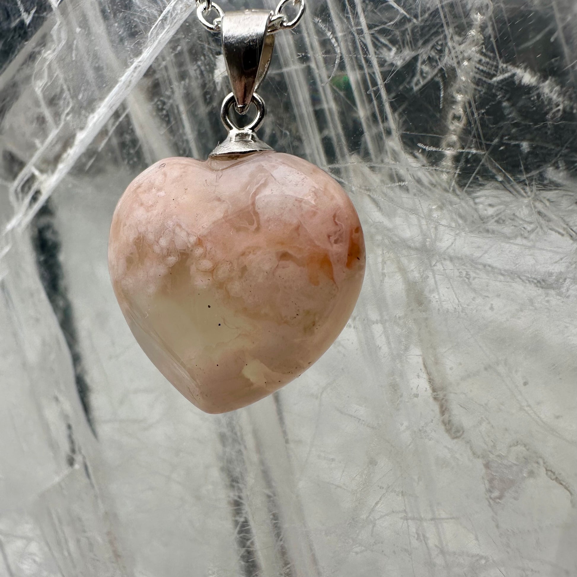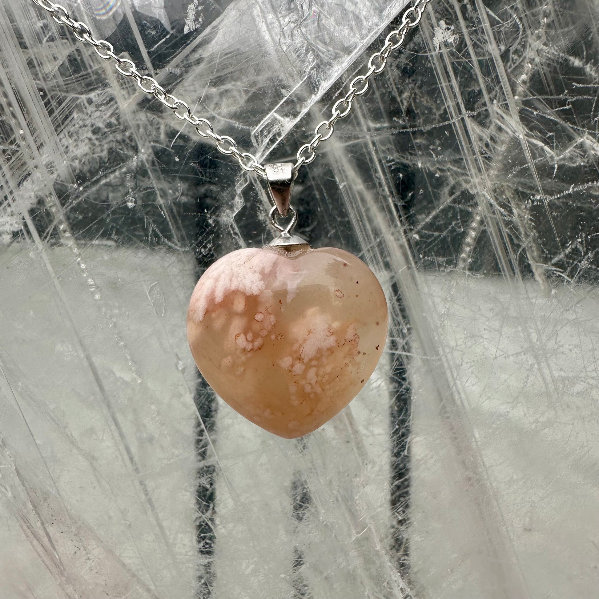 "Crafted from beautiful Flower Agate, these heart pendants are a unique and eye-catching addition to any jewelry collection. Known for promoting self-growth and positivity, they make a meaningful gift for yourself or a loved one. Each pendant is one-of-a-kind, just like you."