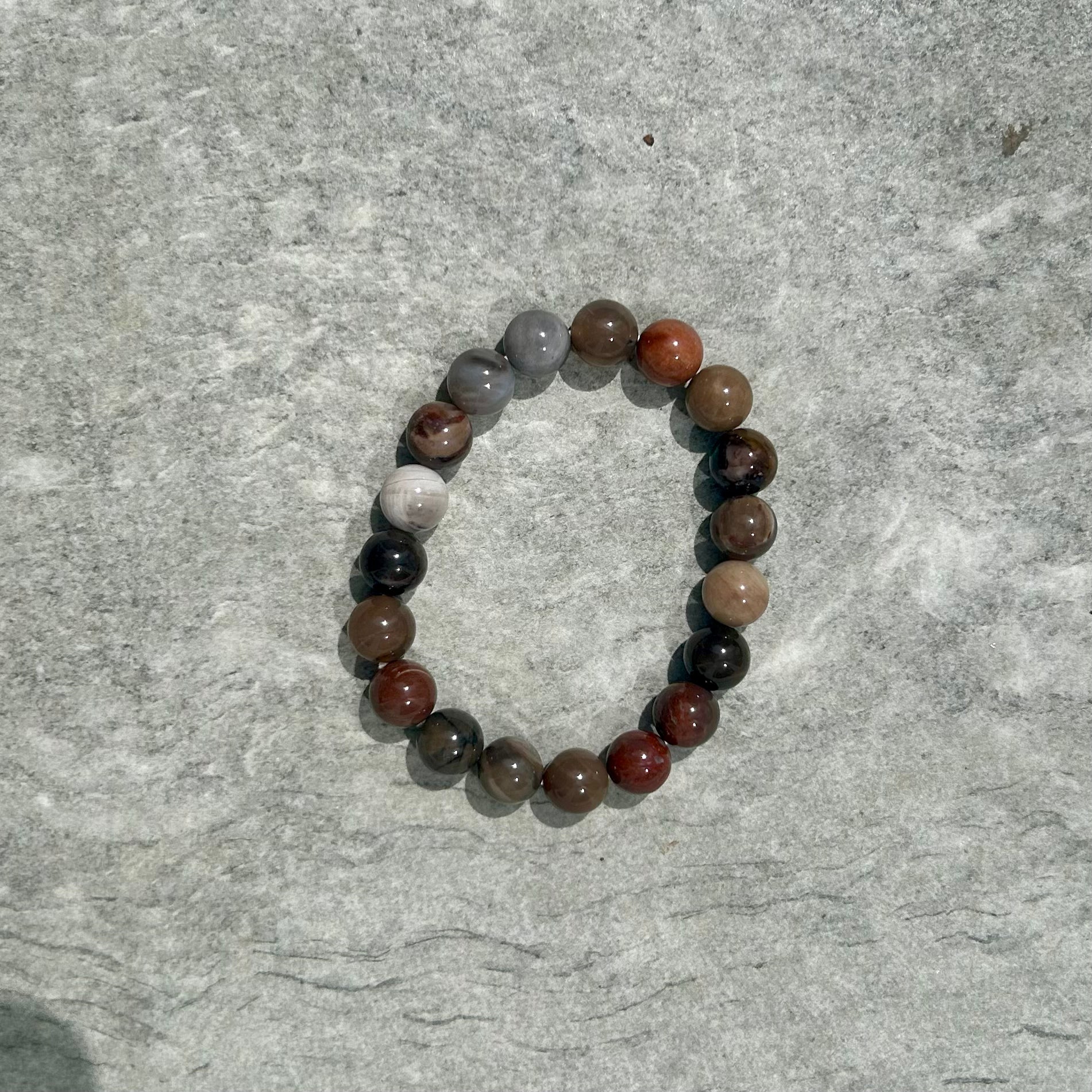 Crafted from carefully selected fossilized wood, this 10mm bracelet combines natural beauty with durability. Its smooth, polished beads offer a tactile experience while showcasing unique wood grain patterns, making each piece one-of-a-kind. Ideal for those seeking a subtle yet distinctive accessory, this bracelet complements both casual and formal styles with an earthy elegance.