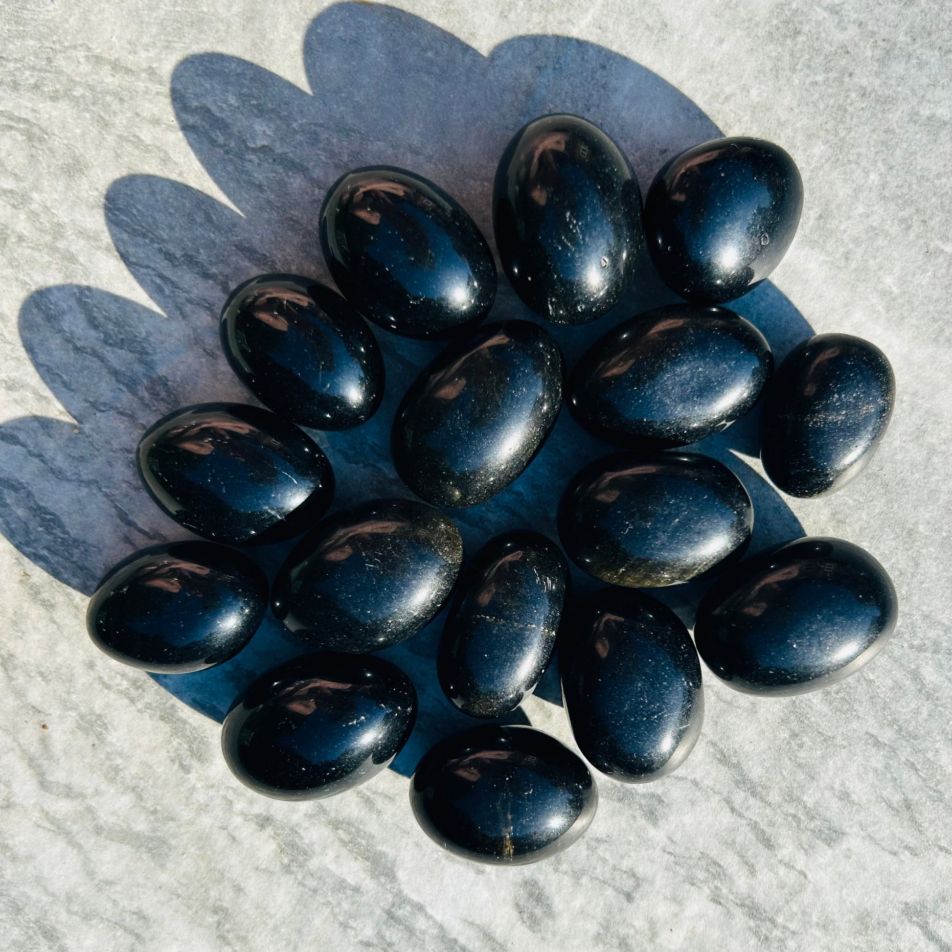 Discover the mesmerizing beauty and healing properties of Gold Sheen Obsidian Tumbles. These polished gemstones are formed from volcanic glass, creating a unique iridescent sheen. Harness the grounding and protective energies of this stone to enhance strength and clarity in your journey.