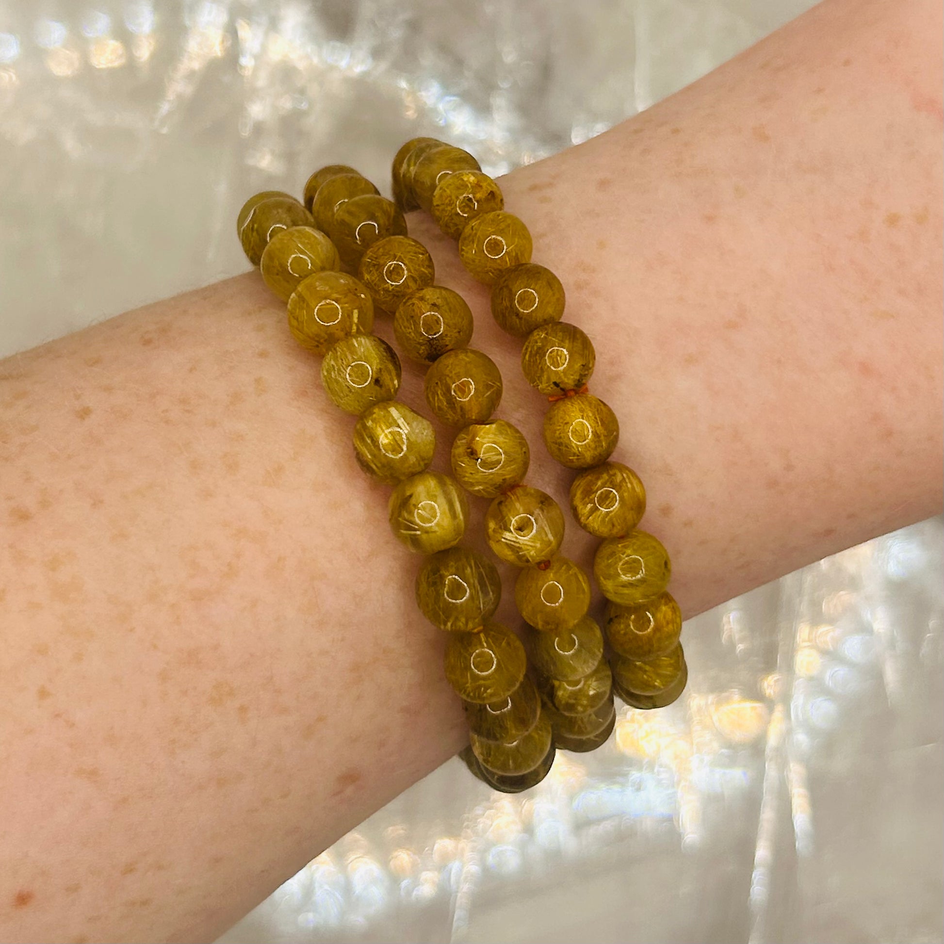 Expertly crafted from high grade golden rutile, this bracelet radiates elegance and sophistication. Its stunning golden hues add a touch of luxury to any outfit. With superior quality and exquisite design, this bracelet is a must-have for any jewelry collection. Experience the benefits of owning a piece of high grade golden rutile jewelry now.