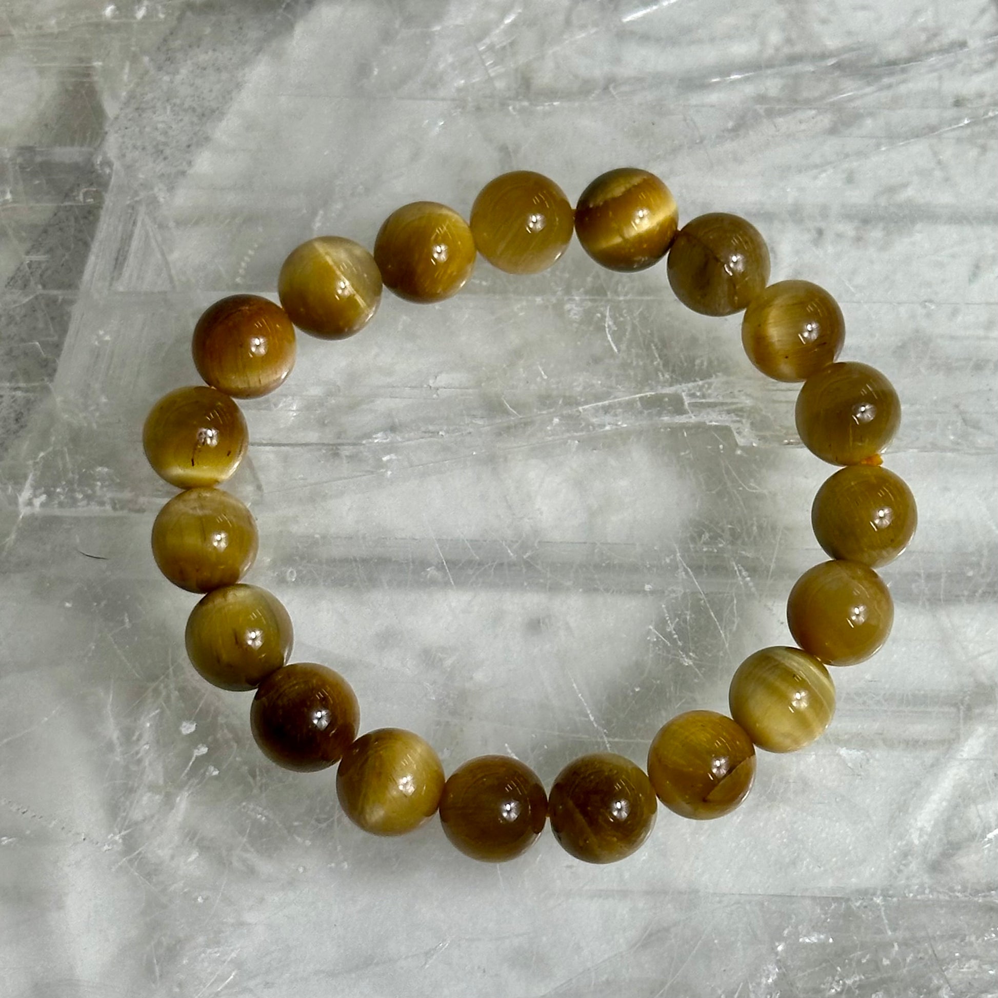 Golden Tiger's Eye 10mm Bracelets combine natural beauty with grounding energy. Each bracelet features polished 10mm beads of this striking golden-brown stone, known for its distinctive chatoyant shimmer and protective properties. Tiger's Eye is traditionally valued for promoting confidence, clarity, and emotional balance. The smooth, wearable design makes it suitable for daily wear, whether you're seeking its metaphysical benefits or simply appreciate its warm, lustrous appearance. A timeless piece that bridges natural elegance with purposeful intention.