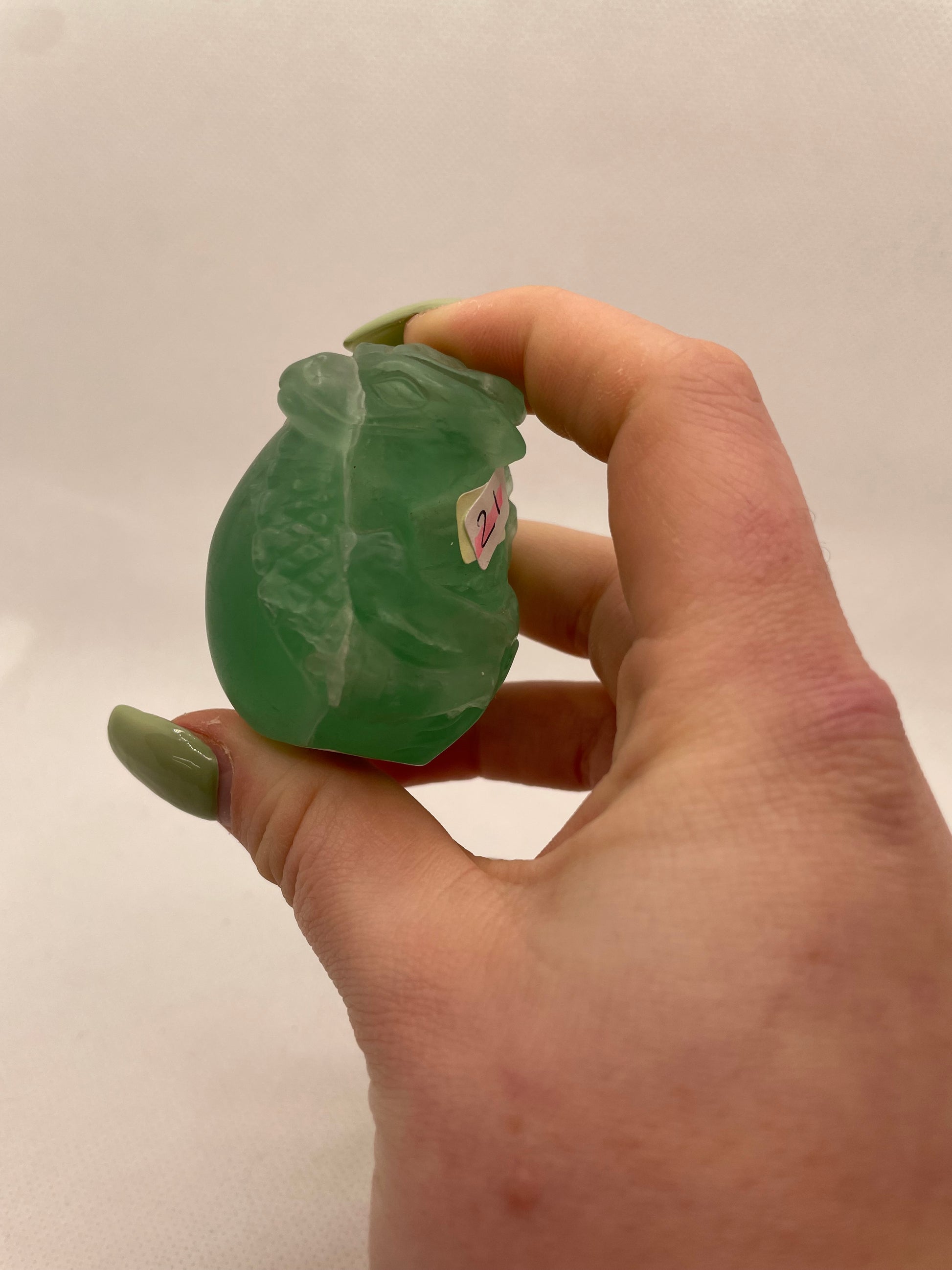 Experience the calming and protective energies of our Green Aventurine Dragon/Egg. Crafted from the finest quality Green Aventurine, this unique piece serves as a beautiful decoration while also bringing potential benefits such as prosperity, good luck, and inner peace. A must-have for any crystal or dragon enthusiast.