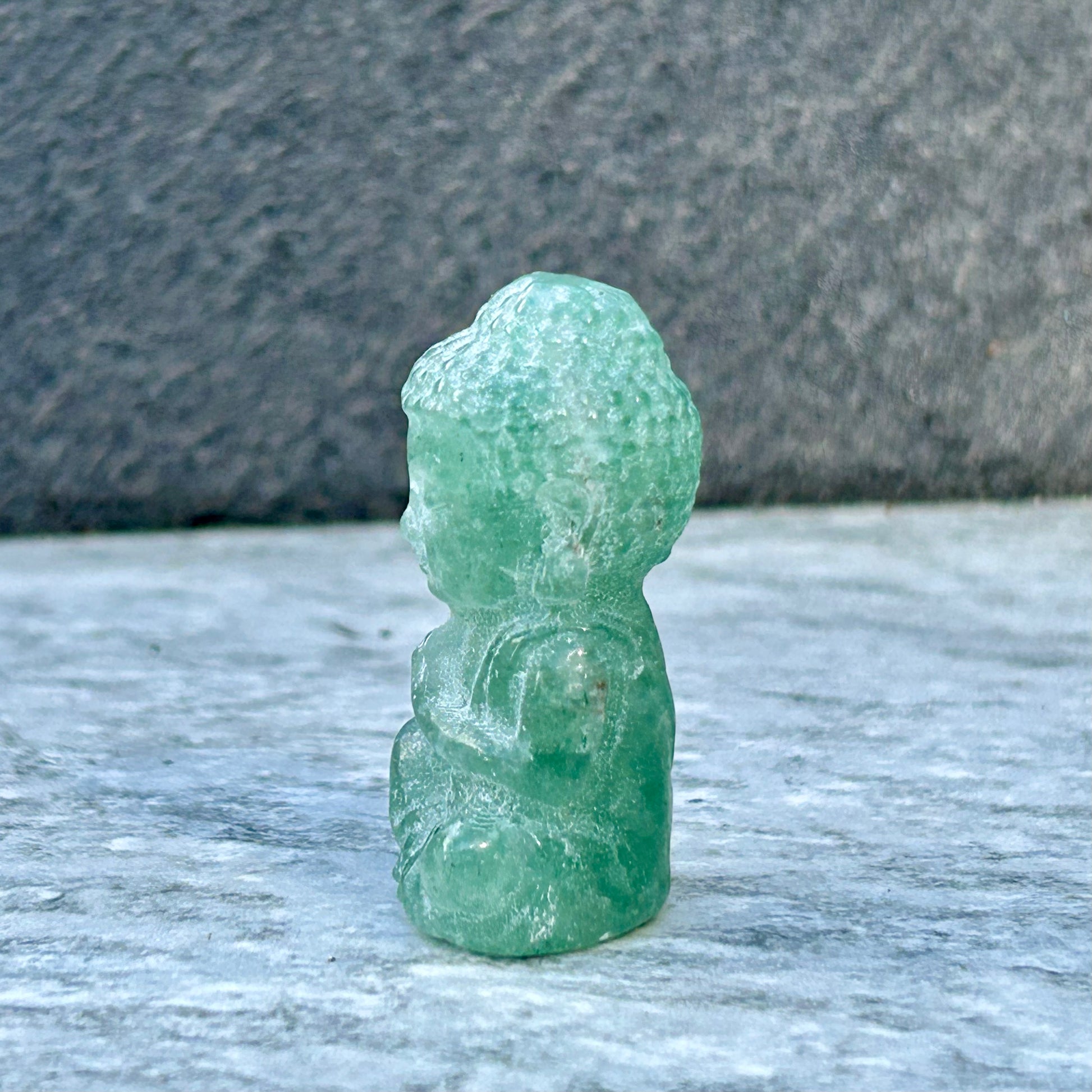 Green Strawberry Quartz Mini Buddha Carving