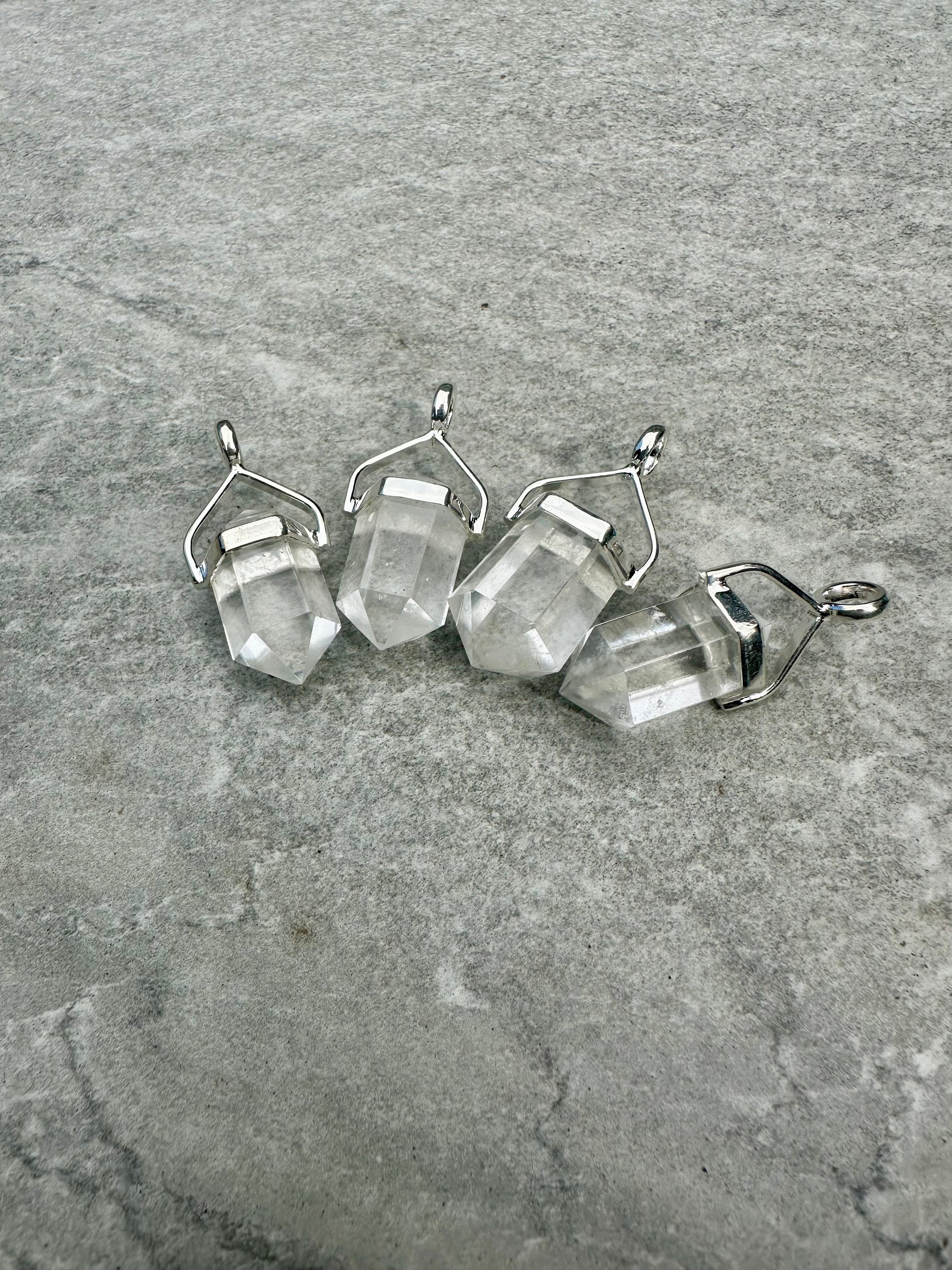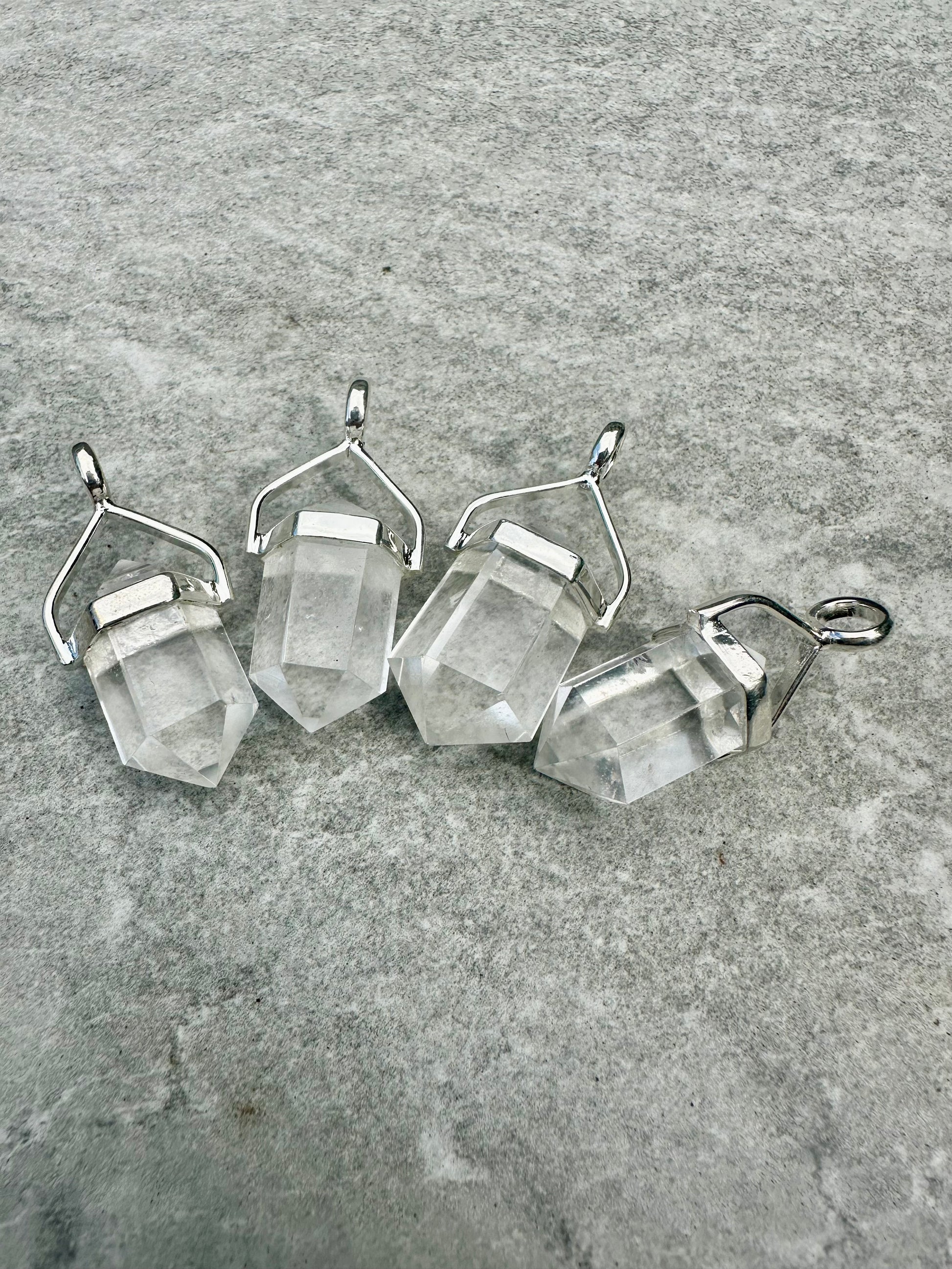 Introducing the Herkimer Diamond Pendants, expertly crafted with precision and care. With only 4 in stock, these pendants are a rare find, each one unique and stunning. Complete with a chain, these pendants are priced at just £20 each, making them an affordable and stylish addition to any jewelry collection. Don't miss your chance to own one today.