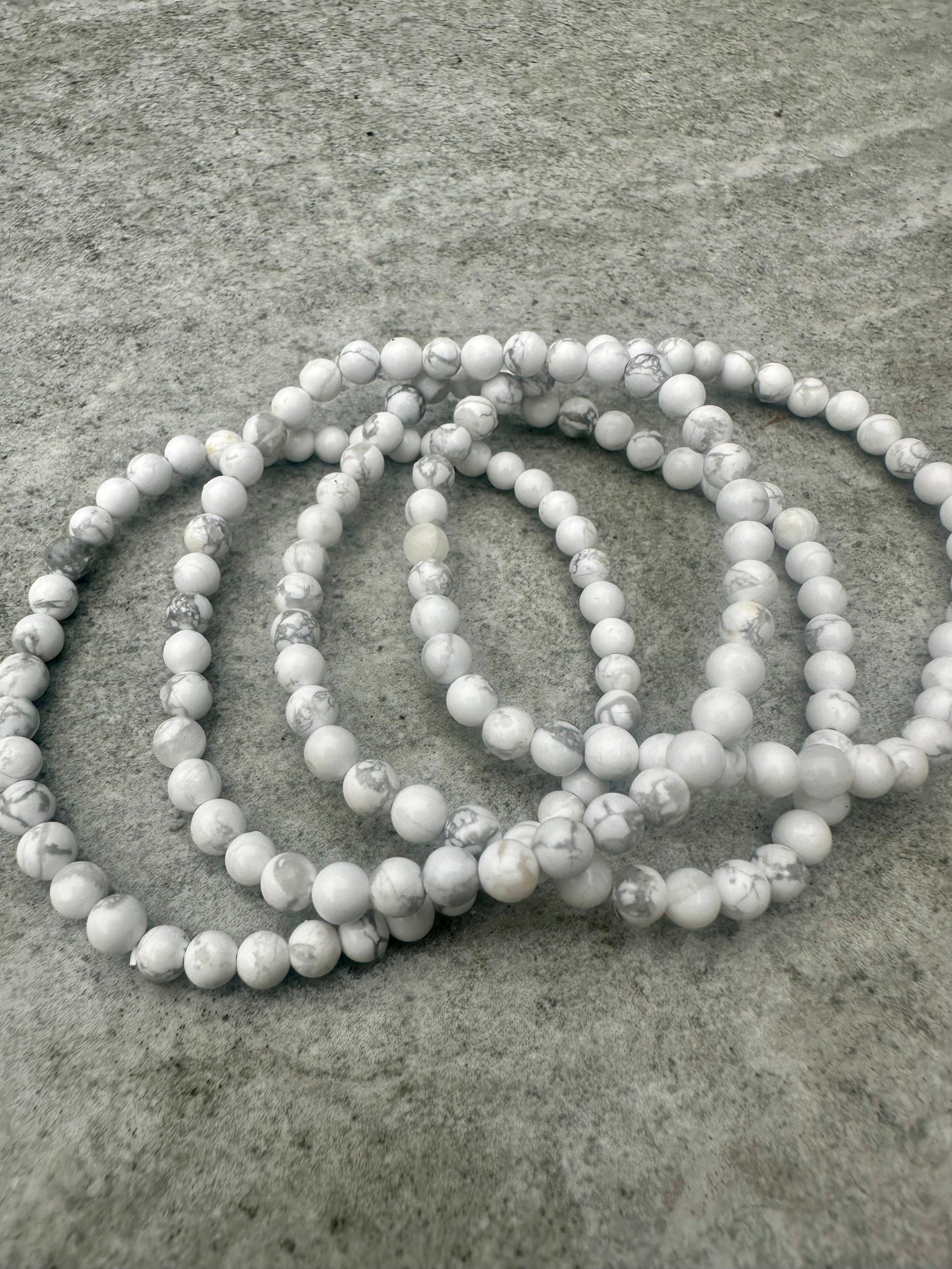 "Expertly crafted from genuine Howlite stone, this 4mm bracelet is the perfect addition to any collection. With only 3 left in stock, now is the time to get this unique piece. Add a touch of natural beauty to your wardrobe with this elegant bracelet that is sure to impress."