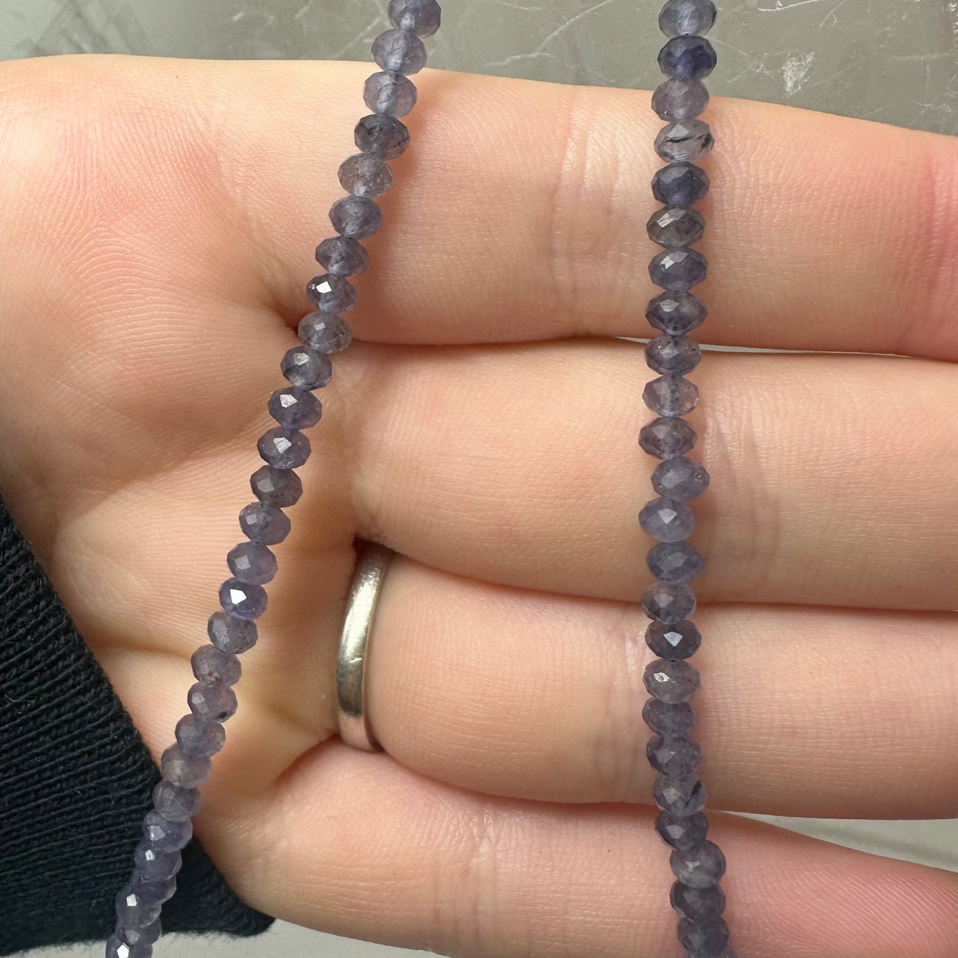 Iolite Beaded Necklace featuring 4mm natural stone beads strung on a delicate 39cm strand, weighing just 8g for effortless everyday wear. Iolite is traditionally valued for its connection to inner vision and clarity, believed to enhance intuition and spiritual awareness. This lightweight piece combines the subtle beauty of iolite's distinctive violet-blue hues with meaningful crystal properties, making it an ideal choice for those seeking both aesthetic appeal and energetic support.