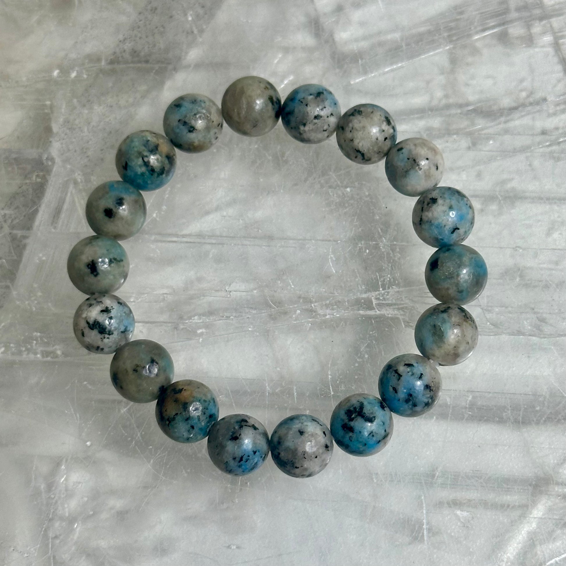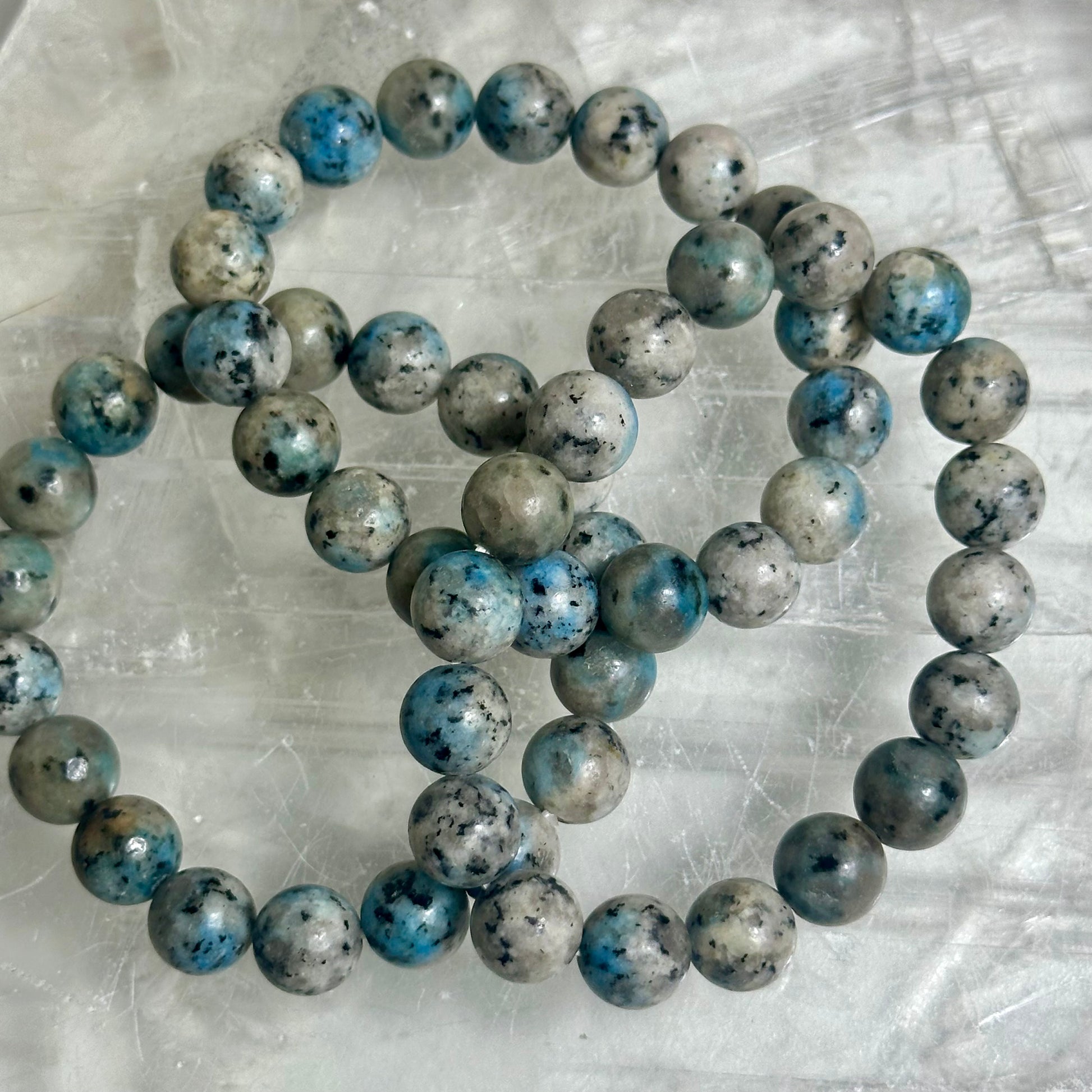 K2 stone, a striking blend of granite and azurite, has long been valued by crystal enthusiasts for its grounding and clarity-enhancing properties. These 10mm bracelets showcase the stone's distinctive blue and white patterns, making each piece genuinely unique. The 10mm bead size offers a substantial, comfortable wear that works equally well as a standalone statement or layered with other pieces. K2 is traditionally associated with spiritual insight and emotional balance, appealing to those seeking both aesthetic appeal and metaphysical benefits. An excellent choice for collectors and practitioners alike.