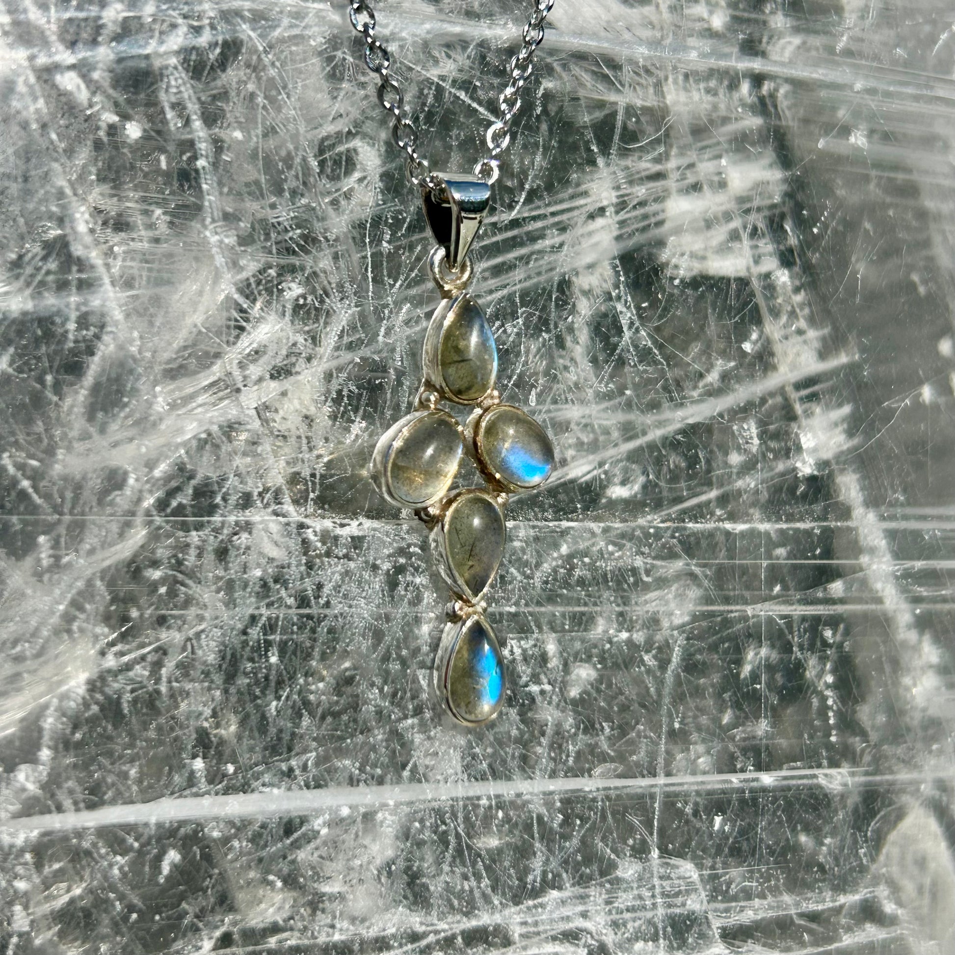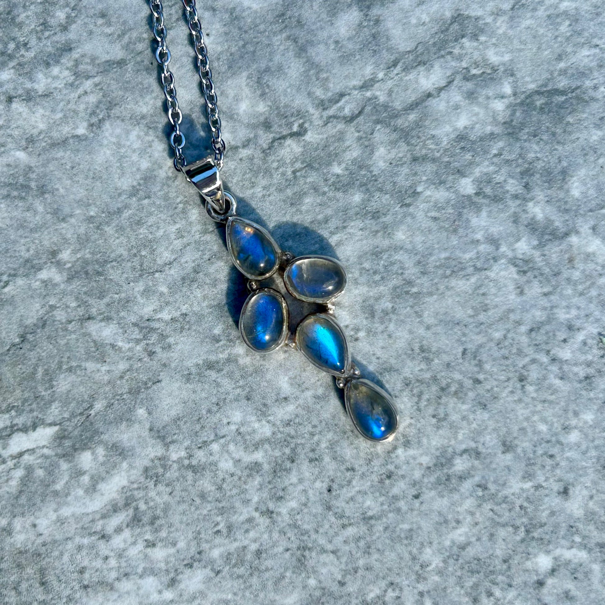 This high-grade blue labradorite pendant, expertly set in sterling silver 925, highlights the stone’s striking blue flashes with clarity and depth. The pendant’s precise craftsmanship enhances labradorite’s natural iridescence, offering a sophisticated accessory that balances elegance and durability. Perfect for discerning buyers, it combines the unique visual appeal of blue labradorite with the lasting quality of fine silver.