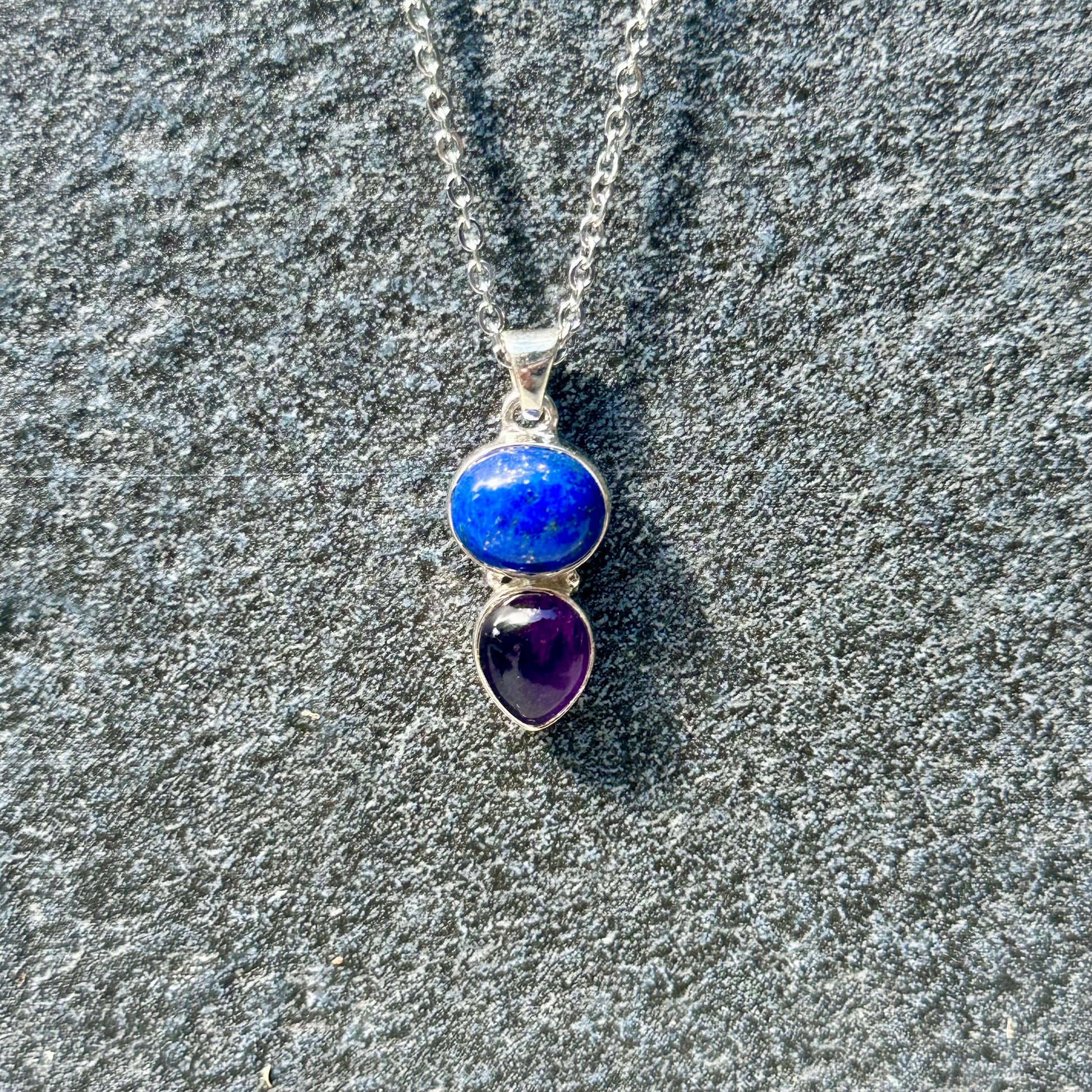 Discover the beauty of this Lapis & Amethyst 925 Pendant. Crafted with high-quality materials, this pendant showcases the deep blue of lapis and the vibrant purple of amethyst. Enhance any outfit with this stunning piece, perfect for special occasions or everyday wear.