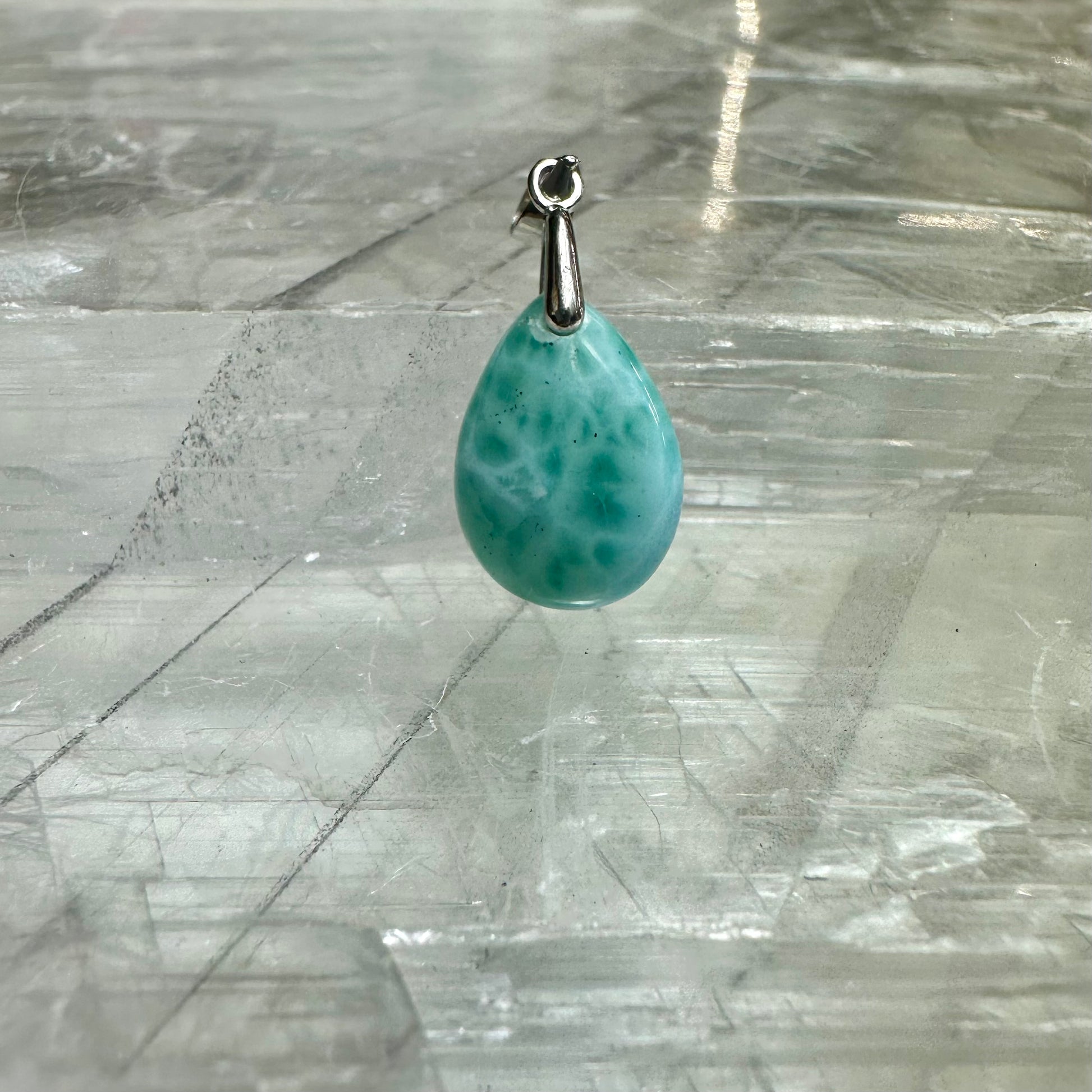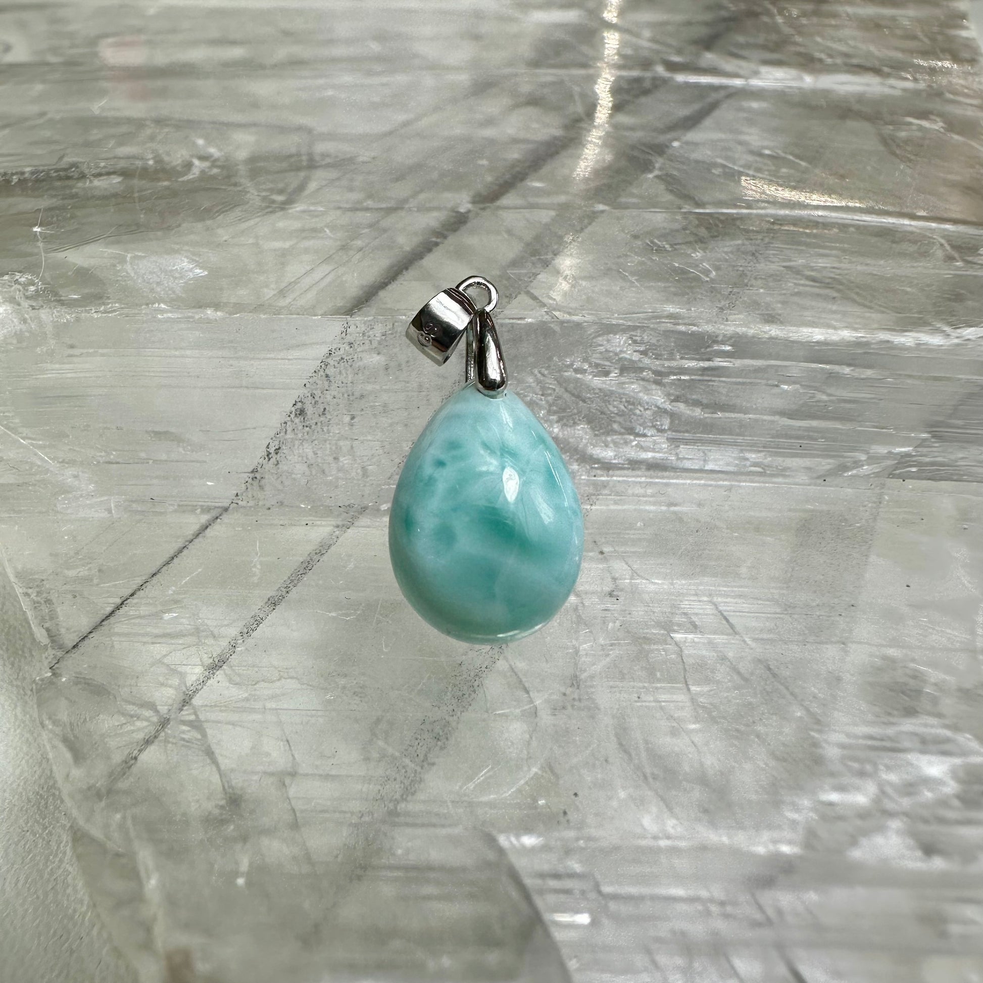 Larimar, the serene blue stone of the Caribbean, captures tranquility in this delicate tear drop pendant. Prized for its calming energy and connection to peaceful waters, this mini pendant offers a subtle yet meaningful addition to any wellness jewellery collection. The graceful tear drop shape symbolises emotional release and flow, making it an ideal gift for those seeking balance and inner harmony. Wear it close to your heart as a daily reminder of calm and clarity.