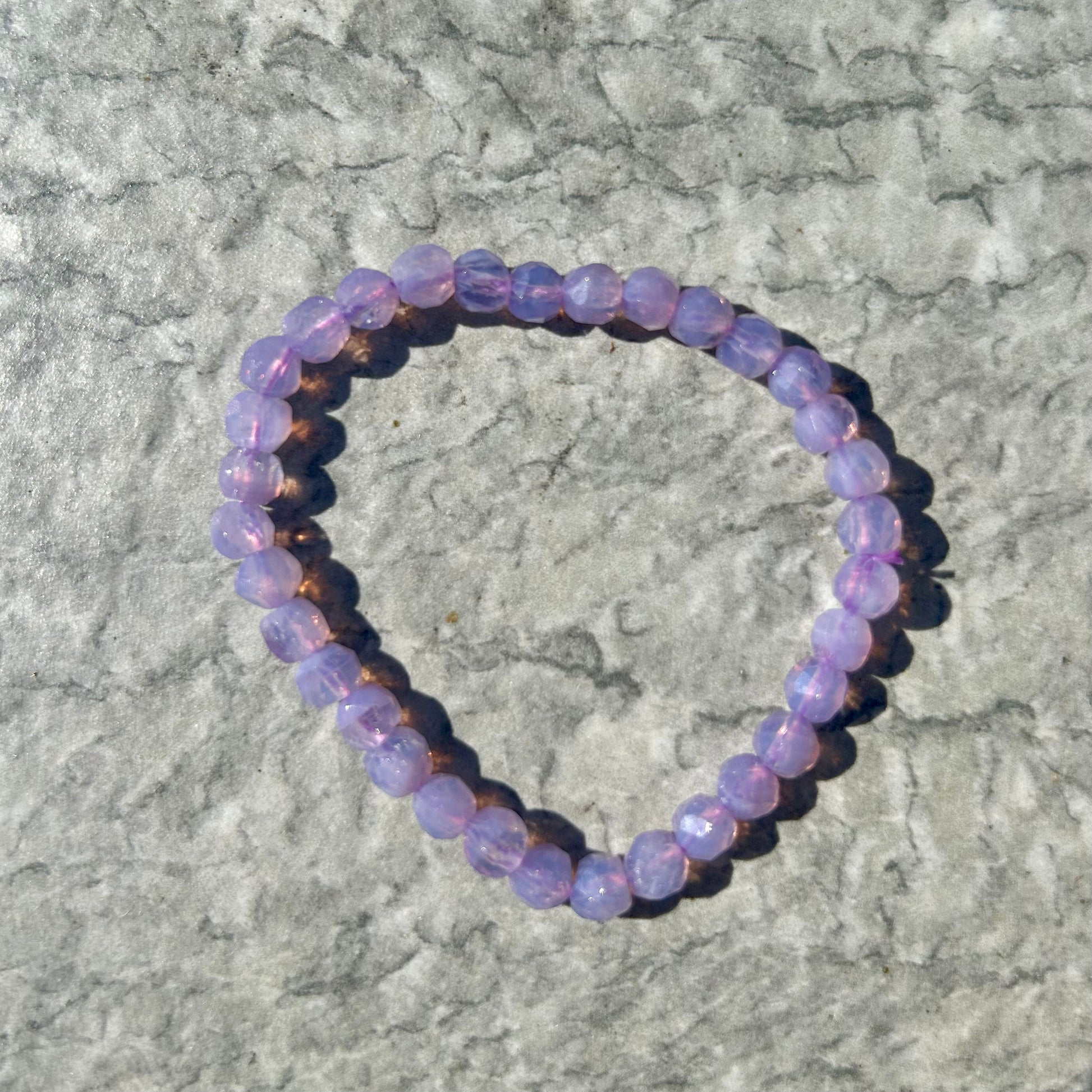 This Lavender Moonstone Bracelet features 6mm faceted beads that enhance the stone’s natural shimmer and depth. Known for its calming and balancing properties, moonstone is believed to support emotional clarity and intuition. The delicate lavender hue adds a subtle, elegant touch, making this bracelet both a stylish accessory and a meaningful piece for those seeking harmony and inner peace. Perfect for layering or wearing alone, it offers a refined way to incorporate the benefits of moonstone into your daily wear.