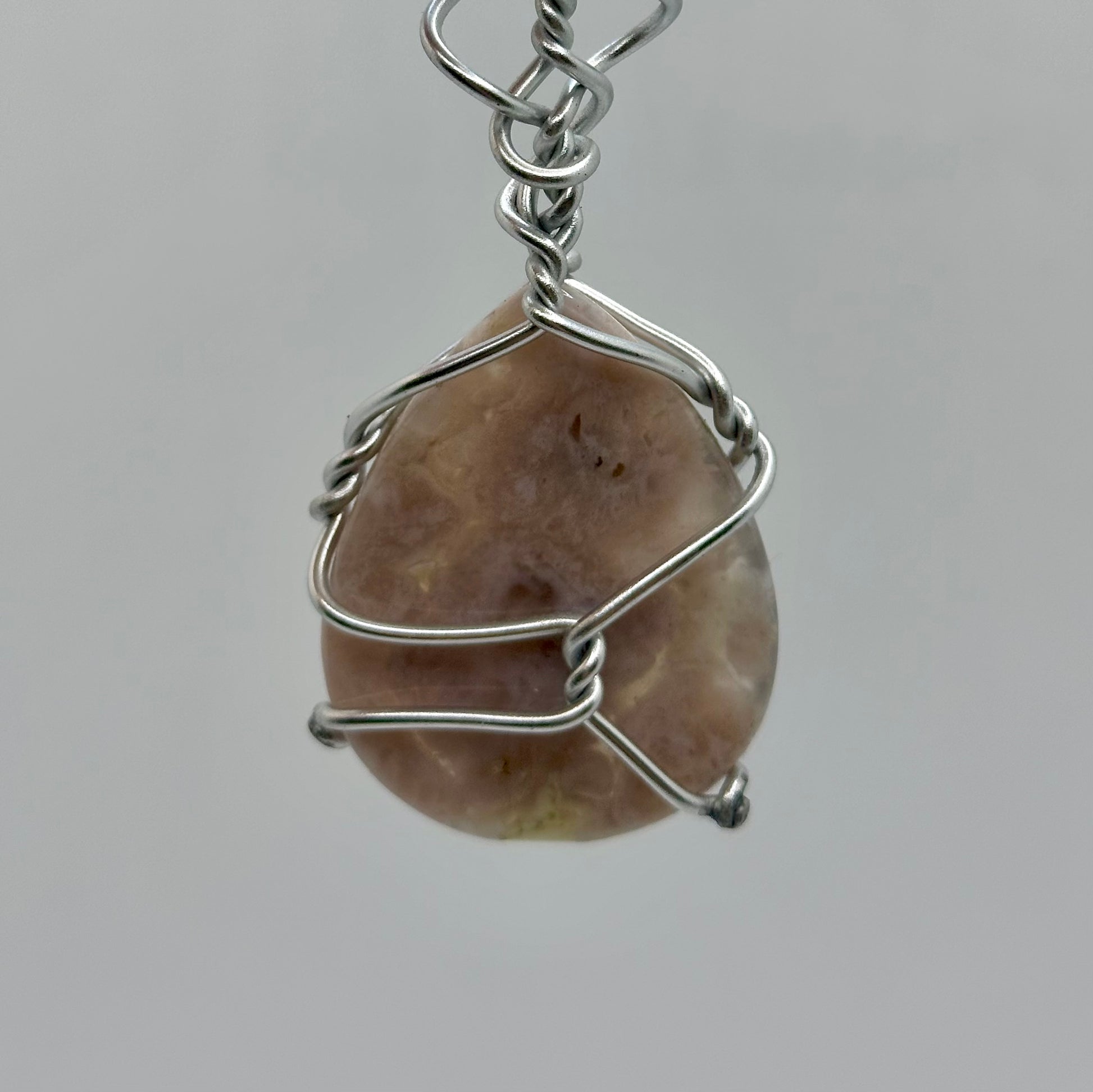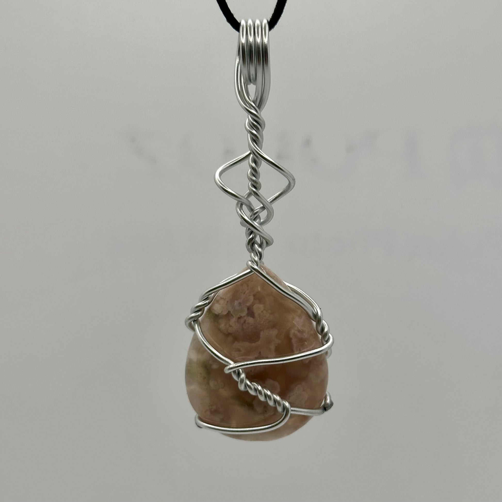 Experience the beauty and healing properties of flower agate with Lee's Makes Flower Agate Pendant. Encased in durable aluminum and adorned with a sleek black cord, this pendant not only adds a touch of style but also promotes emotional healing and growth. Elevate your jewelry collection with this unique piece.