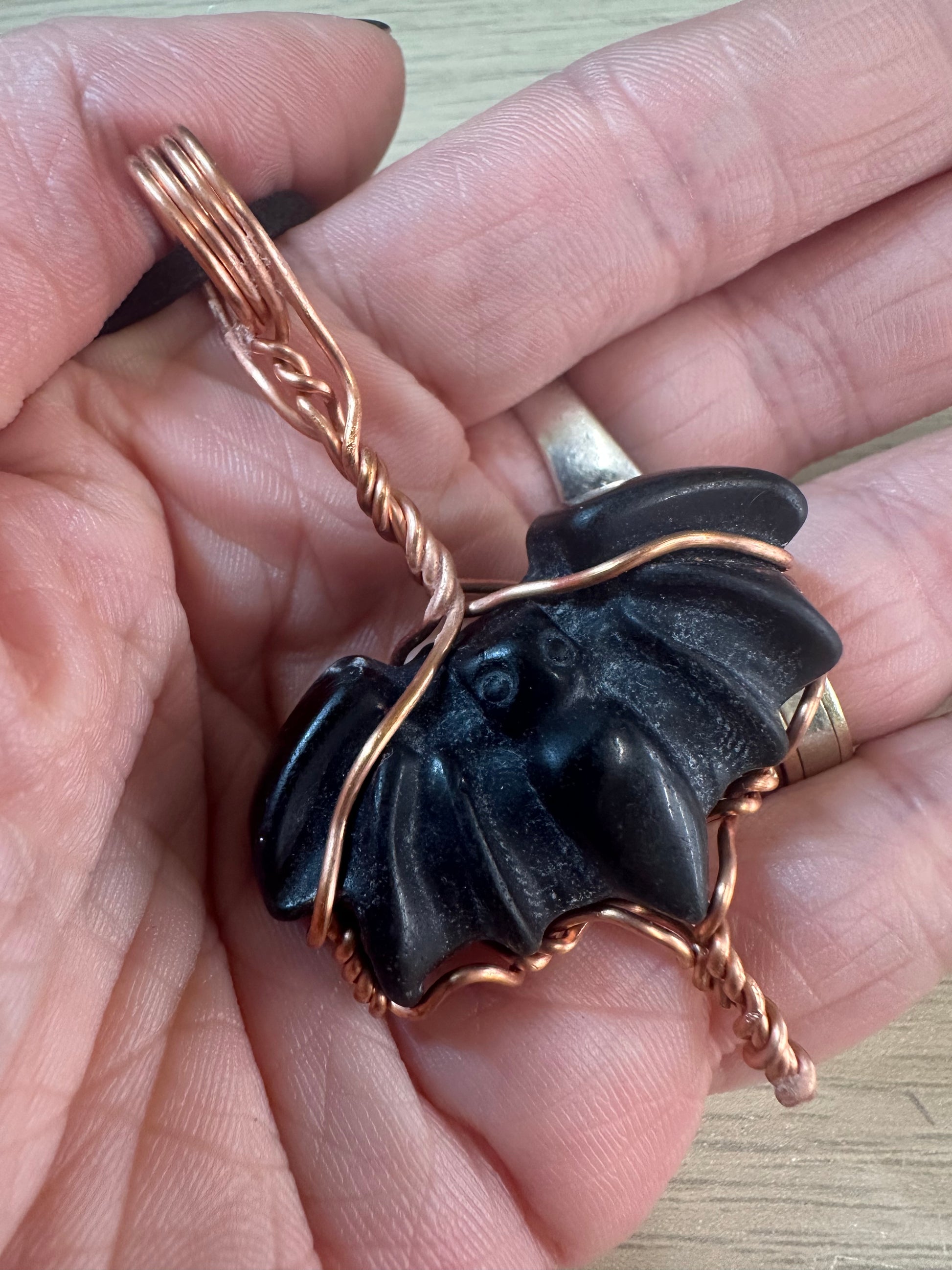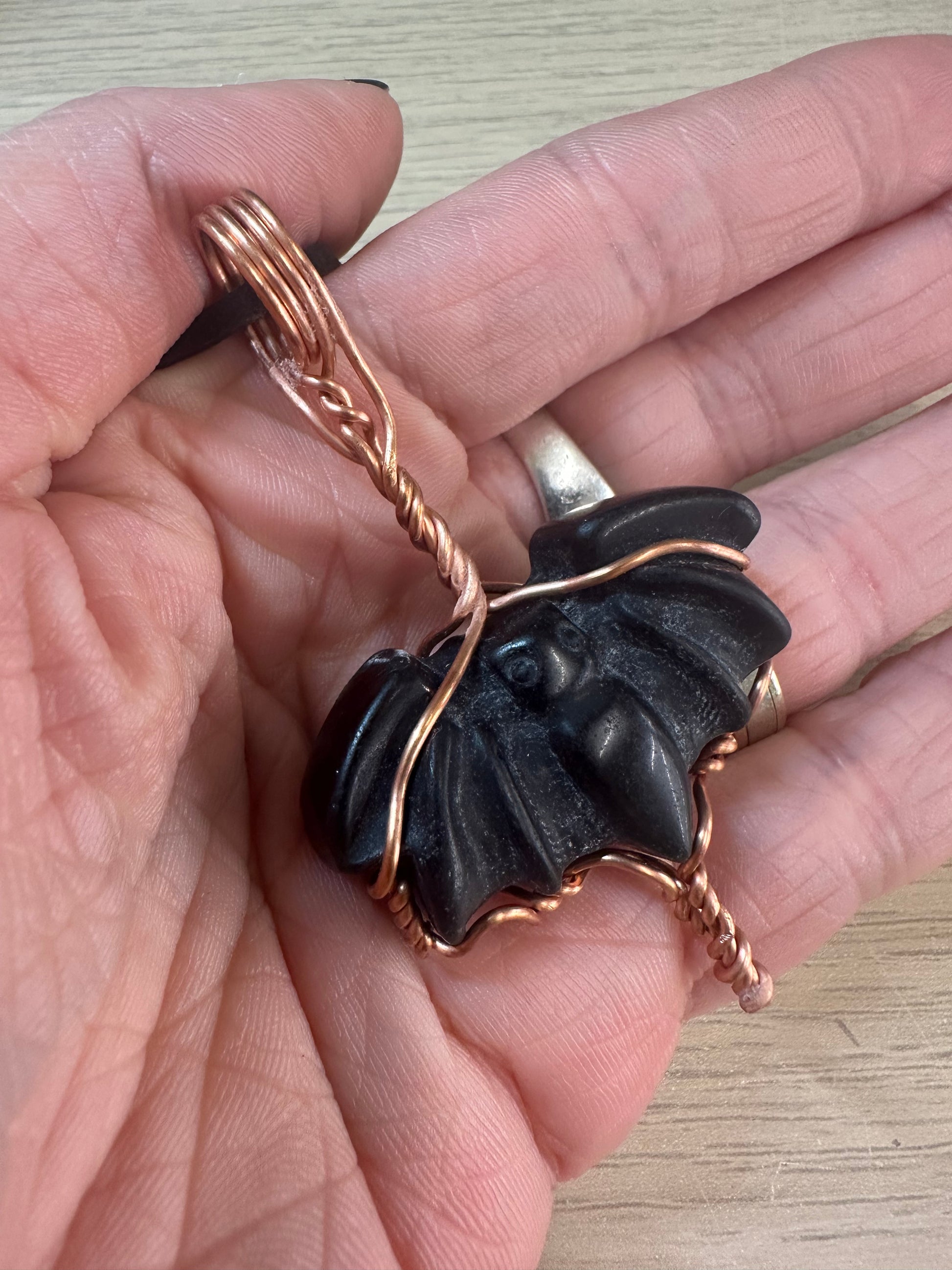 Get ready to elevate your style with Lee's Makes - Obsidian Bat Pendant. This unique pendant is expertly crafted and features a sleek bat design made from premium obsidian. Make a bold statement and add an edgy touch to any outfit with this stunning piece.