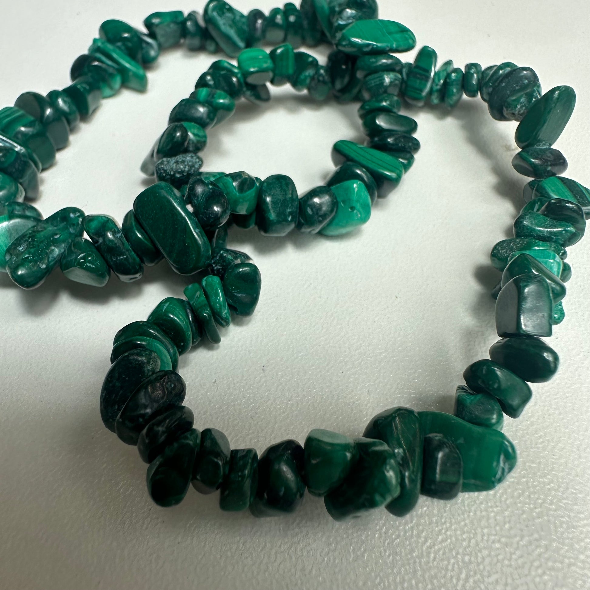 Crafted from natural Malachite gemstones, these chipped bracelets offer a unique blend of vibrant green hues and eye-catching patterns. Perfect for any occasion, these bracelets add a touch of elegance and natural beauty to any outfit. Made from high-quality materials, they are both durable and stylish.
