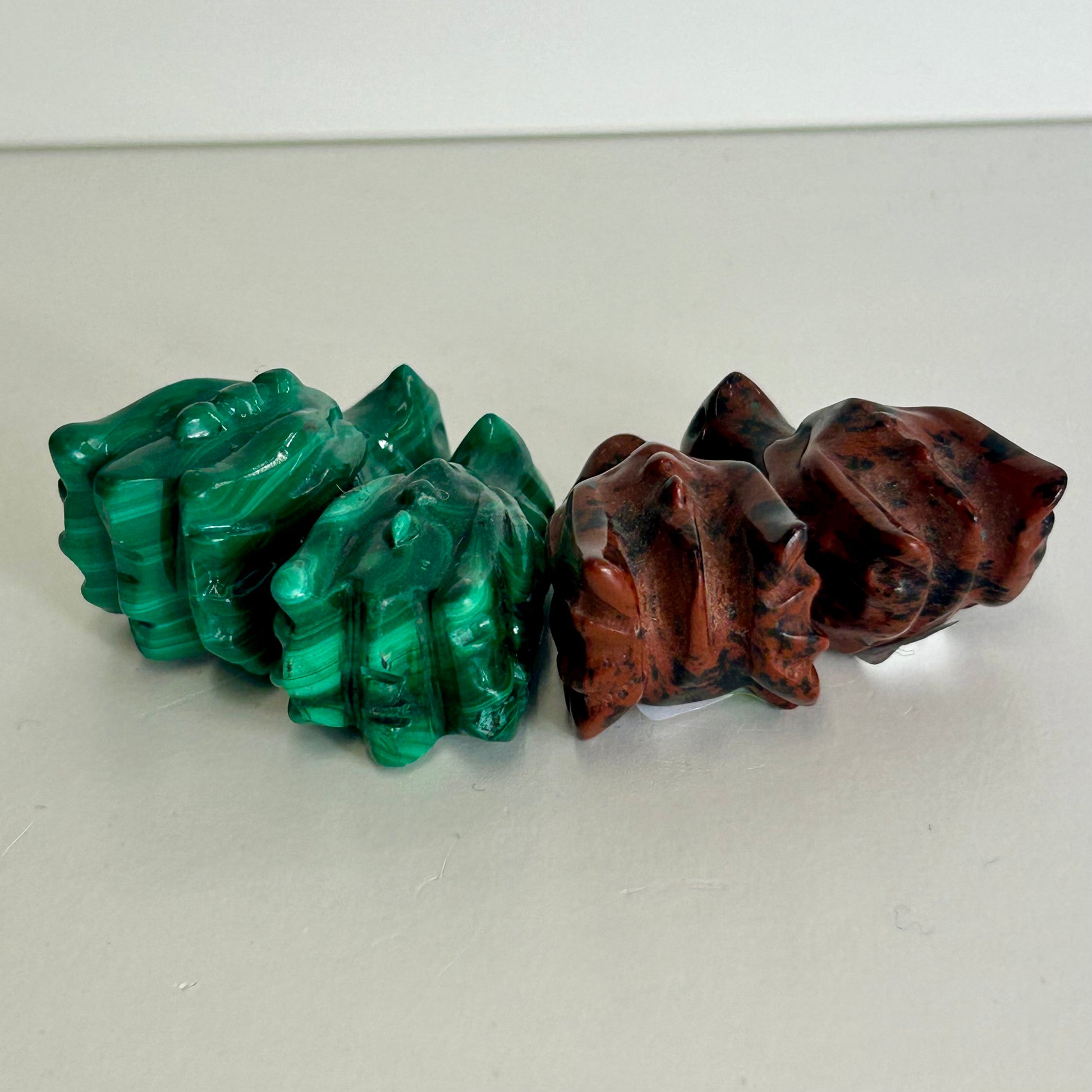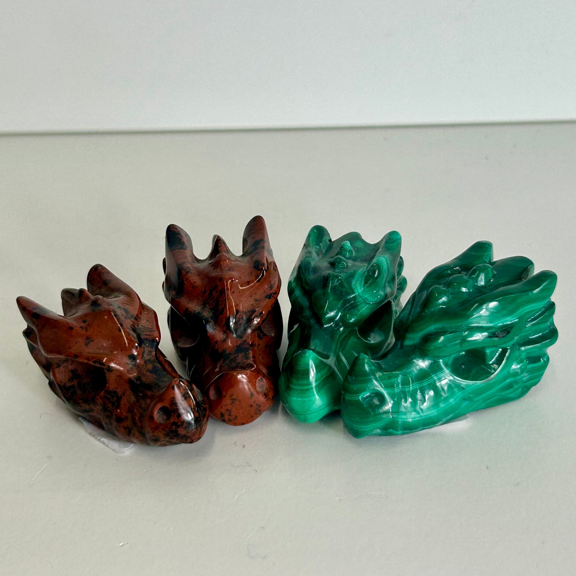 Crafted from stunning Malakite, this dragon head is a must-have for any collector or enthusiast. The intricate detailing and rich color make it a true treasure. Display it proudly as a symbol of strength and wisdom. Limited stock available.