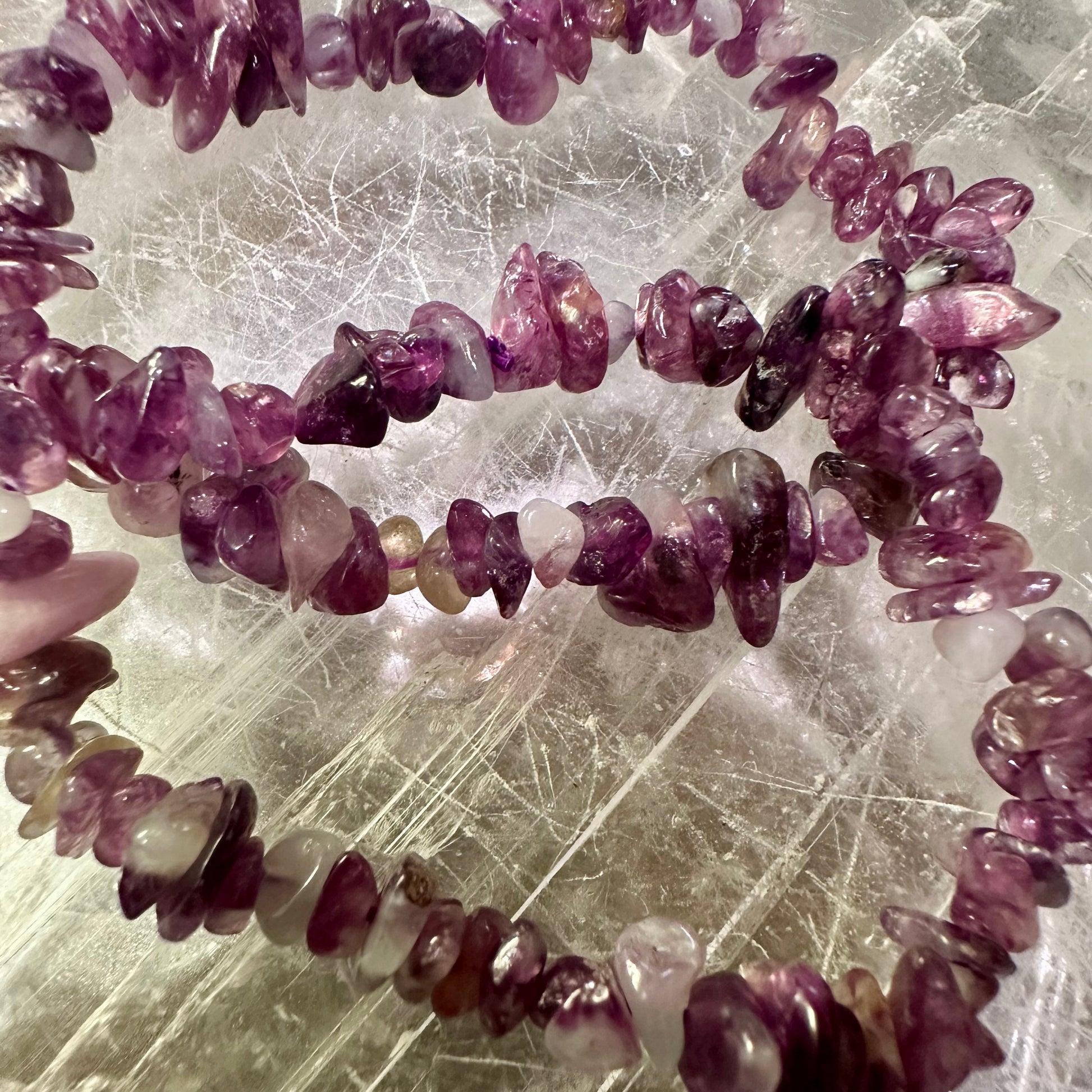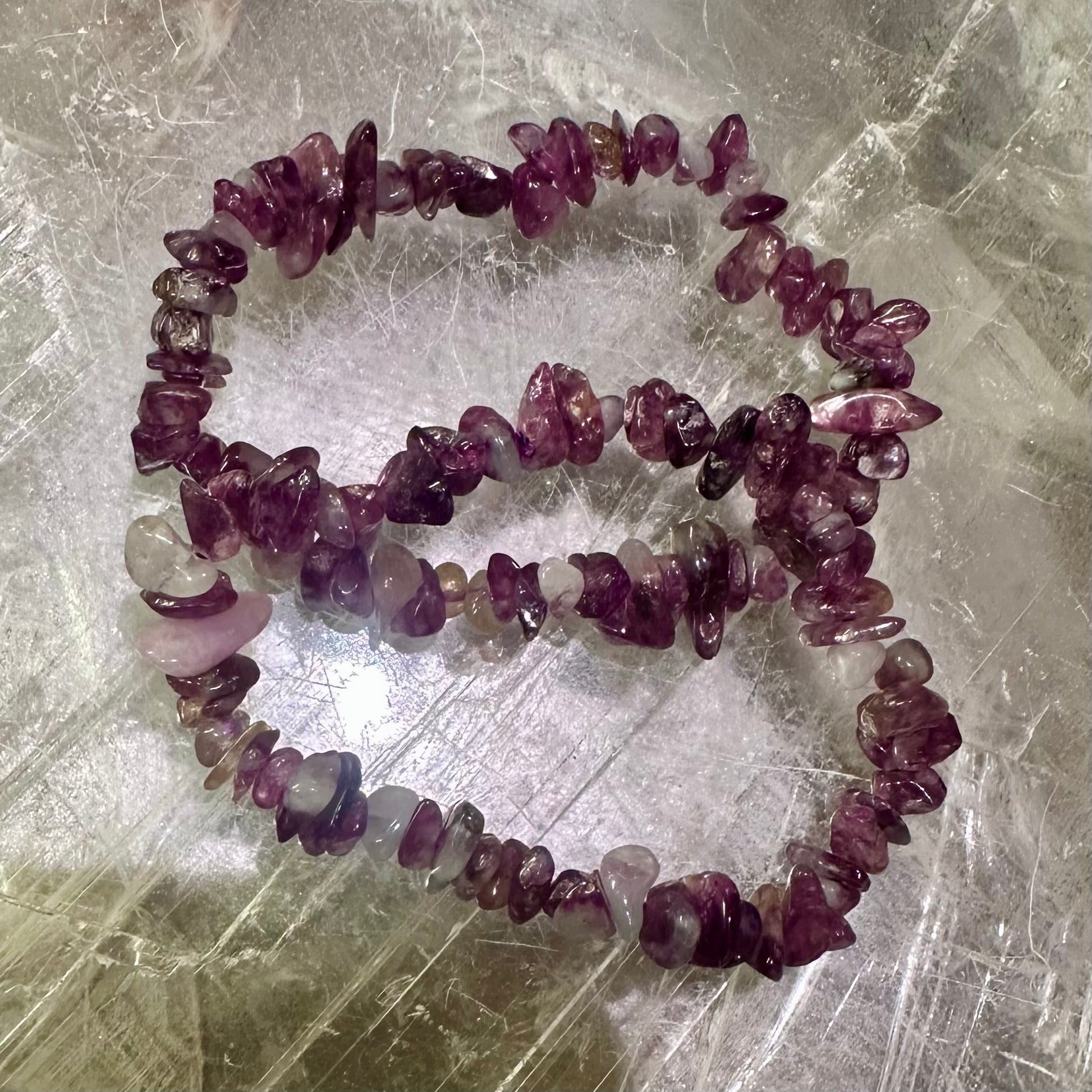 # Mika Chipped Bracelets Handcrafted with intention, these semi-precious stone bracelets feature natural chips and fragments that celebrate the raw beauty of healing crystals. Each piece combines aesthetic appeal with the grounding properties traditionally associated with gemstones, making them ideal for daily wear or meaningful gifting. The organic texture and varied hues create a distinctive look that complements any style, whilst the natural variations ensure no two bracelets are identical. Perfect for wellness enthusiasts seeking authentic, wearable gemstone jewellery.