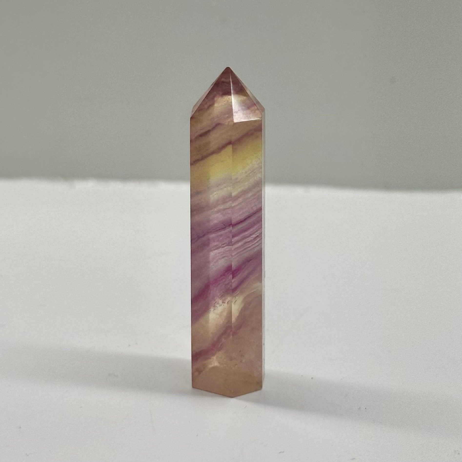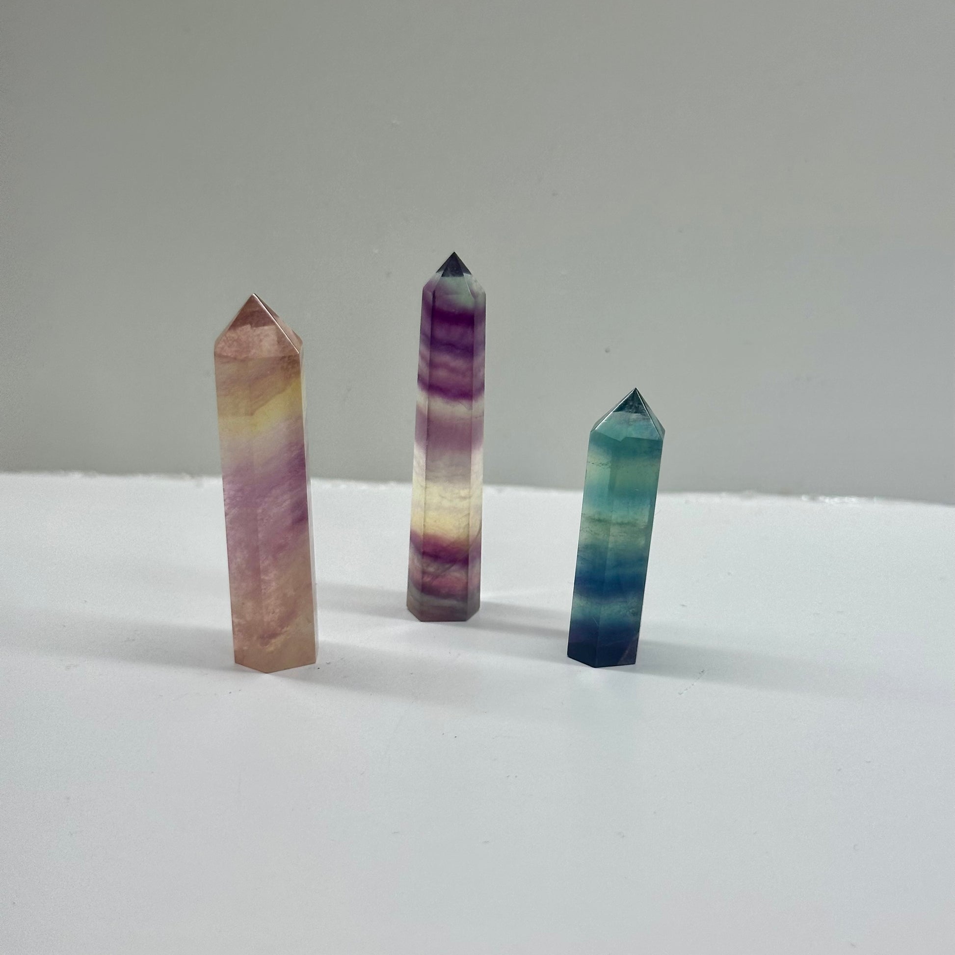 Mixed Fluorite towers combine the harmonizing energies of multiple fluorite varieties in one striking piece. Fluorite is traditionally believed to enhance mental clarity, focus, and organizational skills, making it a favourite for those seeking to declutter their thoughts and environment. Each tower's unique colour blend—typically featuring purple, green, and clear fluorite—is thought to balance emotional stability with intuitive insight. At 5.5cm, these compact yet powerful crystals work beautifully on desks, shelves, or meditation spaces. Whether you're drawn to fluorite's reputed calming properties or simply appreciate its natural geometric beauty, these mixed towers serve as a meaningful reminder to bring order and peace into your daily life.