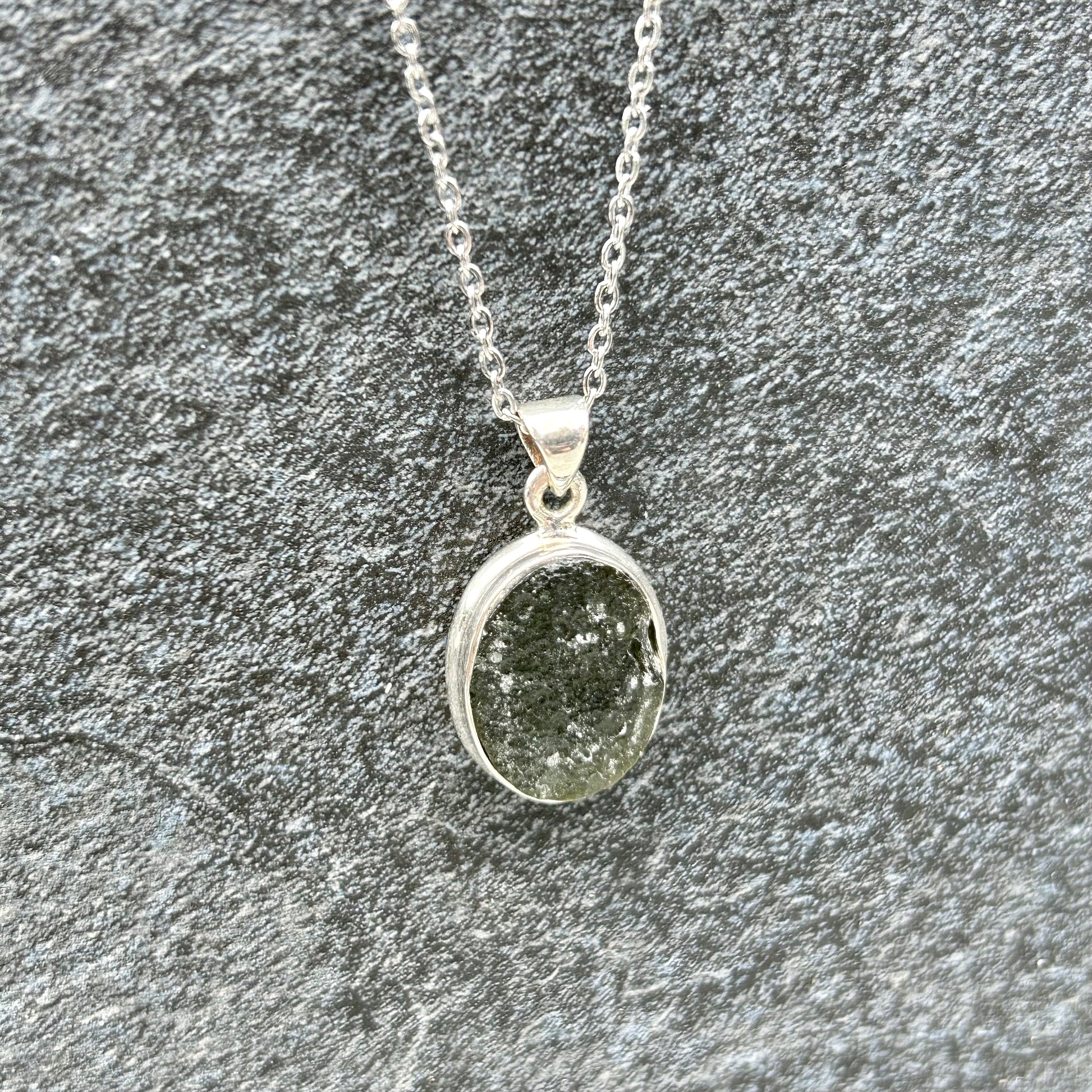 This Moldavite 925 Pendant features genuine Moldavite set in sterling silver, combining natural extraterrestrial energy with lasting durability. Renowned for its unique green hue and energetic properties, Moldavite is believed to aid transformation and spiritual growth. Crafted with precision in 925 sterling silver, this pendant offers both aesthetic appeal and enduring quality, making it a refined choice for those seeking a meaningful accessory with expert craftsmanship.