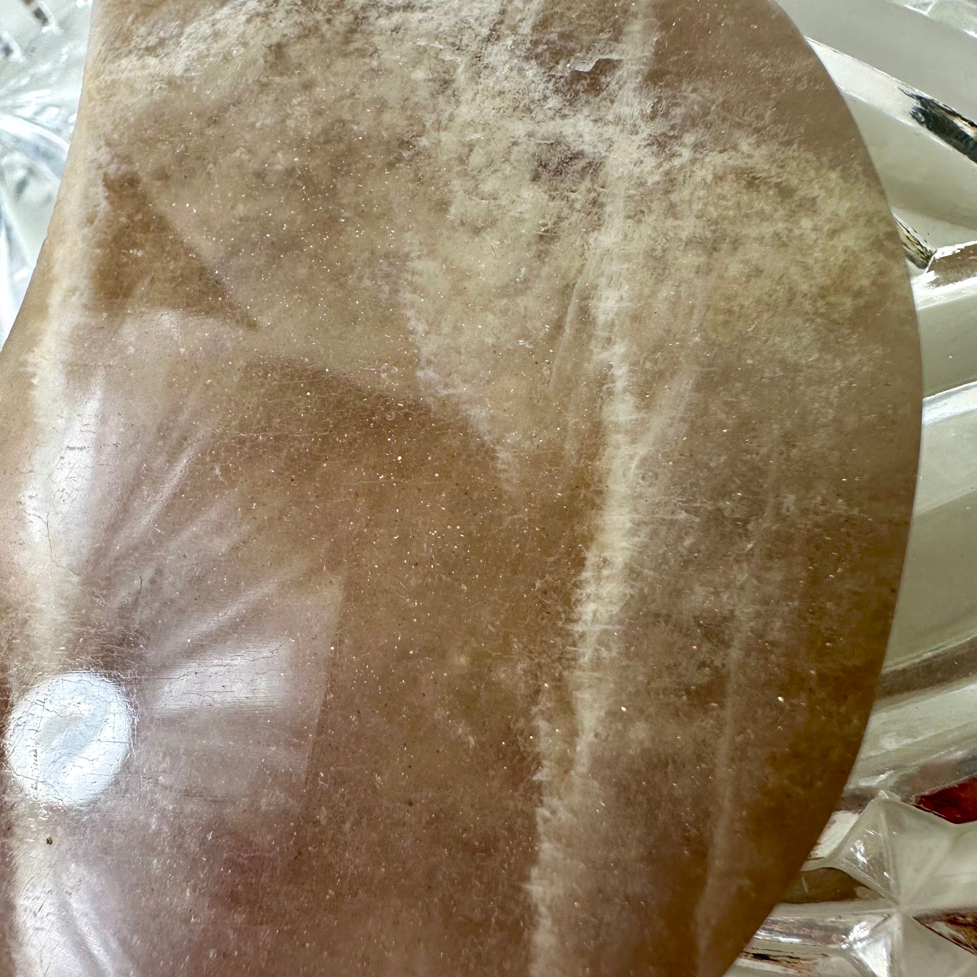 Moonstone Moon On Stand Elevate your crystal collection with this striking moonstone carving, expertly shaped into a celestial moon form and mounted on a complementary stand. Standing approximately 22cm in height, this piece combines natural beauty with thoughtful presentation. Moonstone is prized by crystal enthusiasts for its ethereal adularescence—the soft, luminous glow that seems to float beneath the surface. An ideal focal point for meditation spaces, shelving displays, or as a meaningful gift for those drawn to lunar symbolism and natural gemstones.