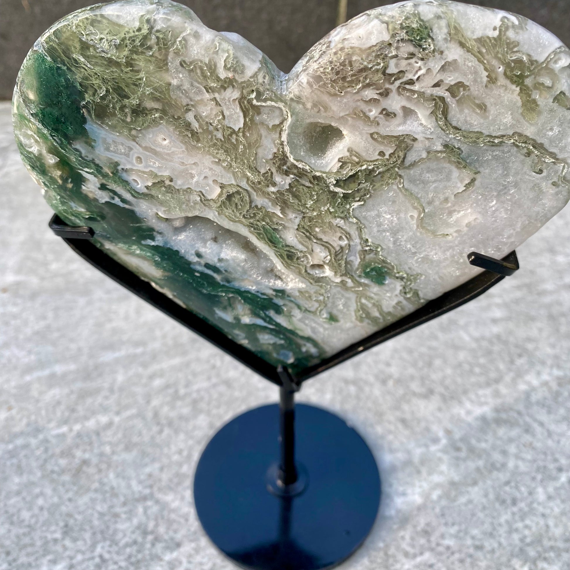 Moss Agate Heart Statement Piece showcases the natural beauty of moss agate, featuring unique green veining that symbolizes growth and renewal. Expertly crafted into a heart shape, this piece serves as both a meaningful symbol and a striking accessory. Its grounding energy supports emotional balance, making it ideal for those seeking harmony in their daily lives. Perfect for display or personal connection, this elegant stone blends aesthetic appeal with holistic benefits.