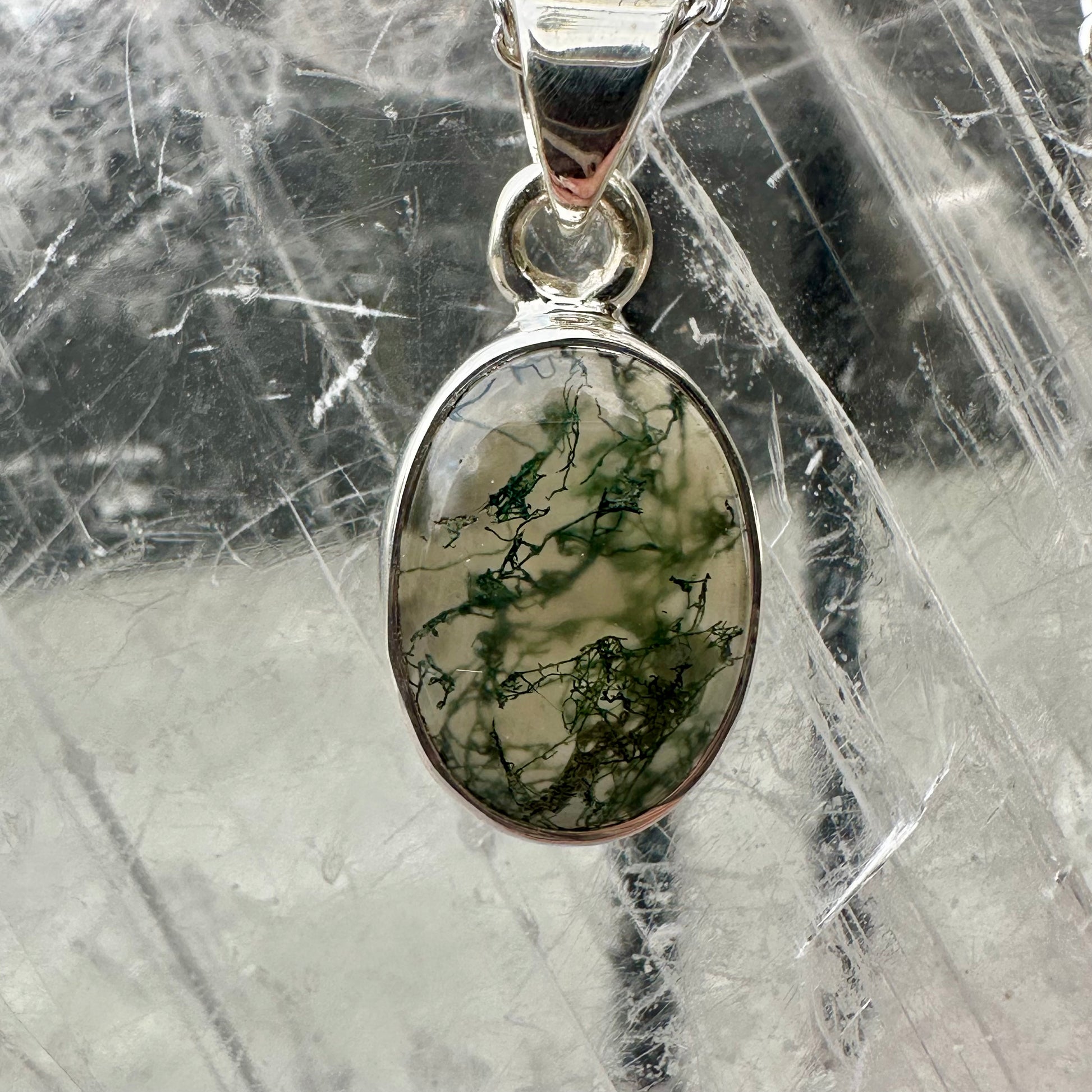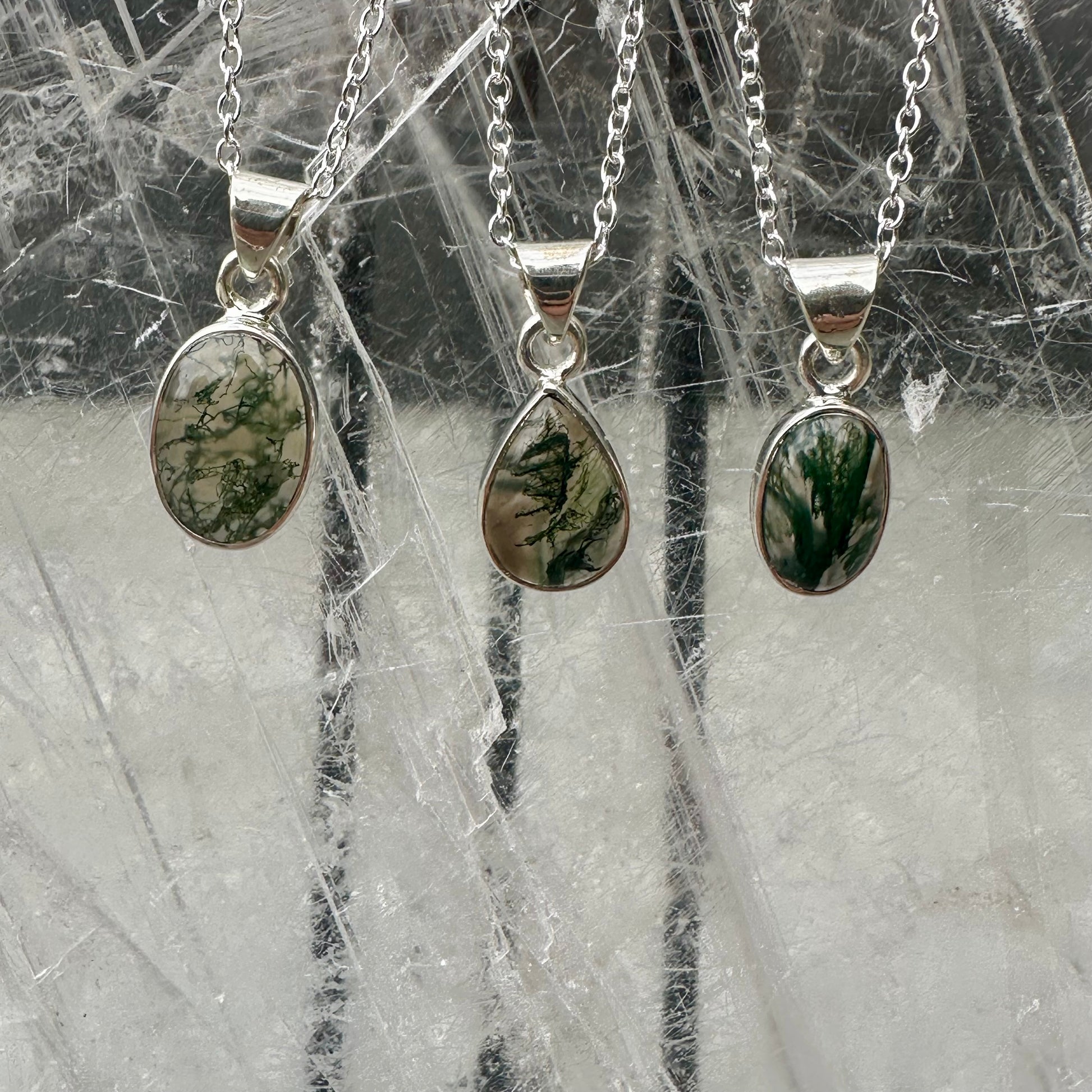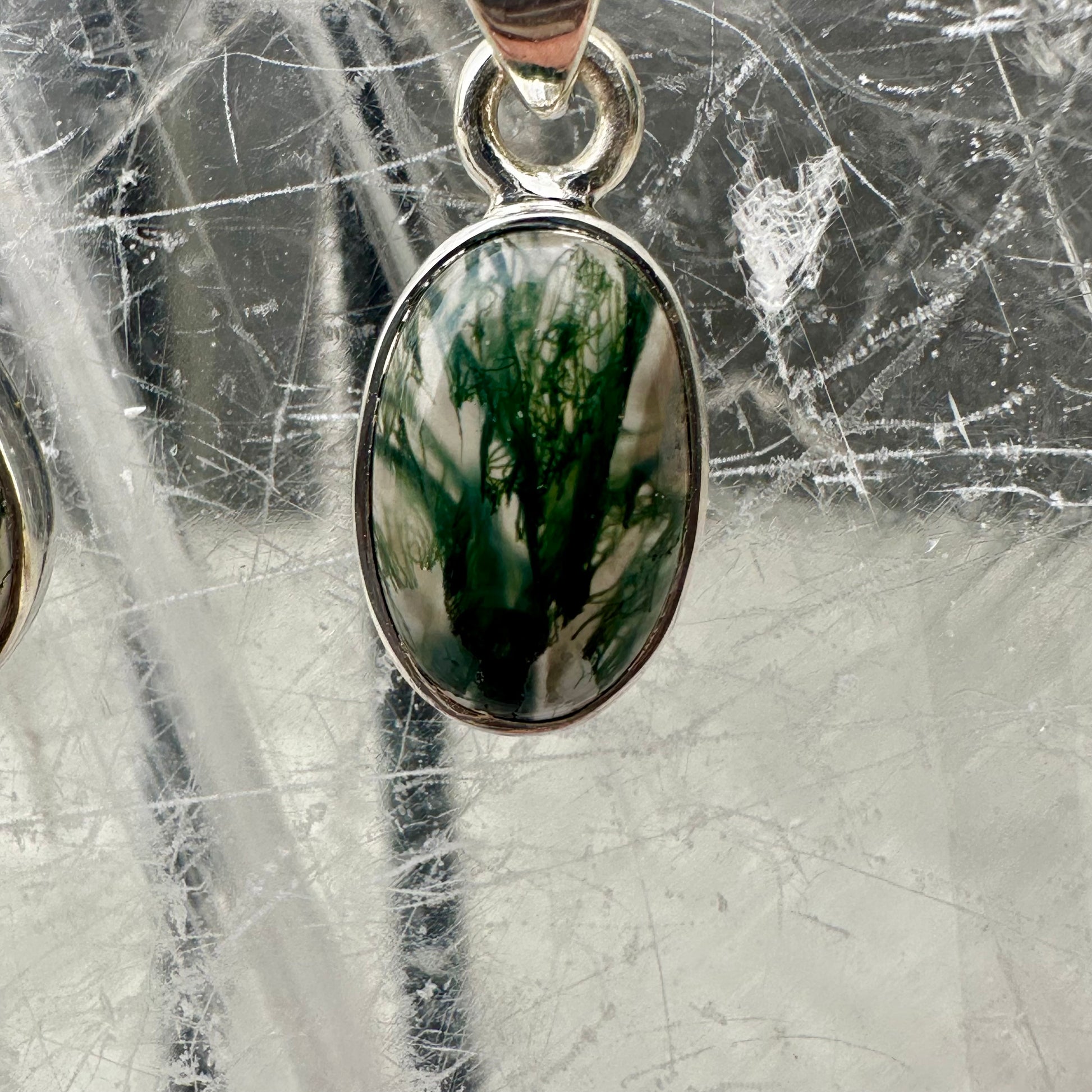 Moss Agate Pendants are natural stone pieces that showcase the distinctive green and white patterns characteristic of this mineral variety. Each pendant features unique veining and inclusions, making every piece one-of-a-kind. Moss Agate is traditionally valued for its grounding properties and connection to nature. These pendants work beautifully as standalone statement pieces or paired with chains for everyday wear. Ideal for crystal enthusiasts, collectors, and those seeking authentic natural gemstones with both aesthetic appeal and mineral significance.