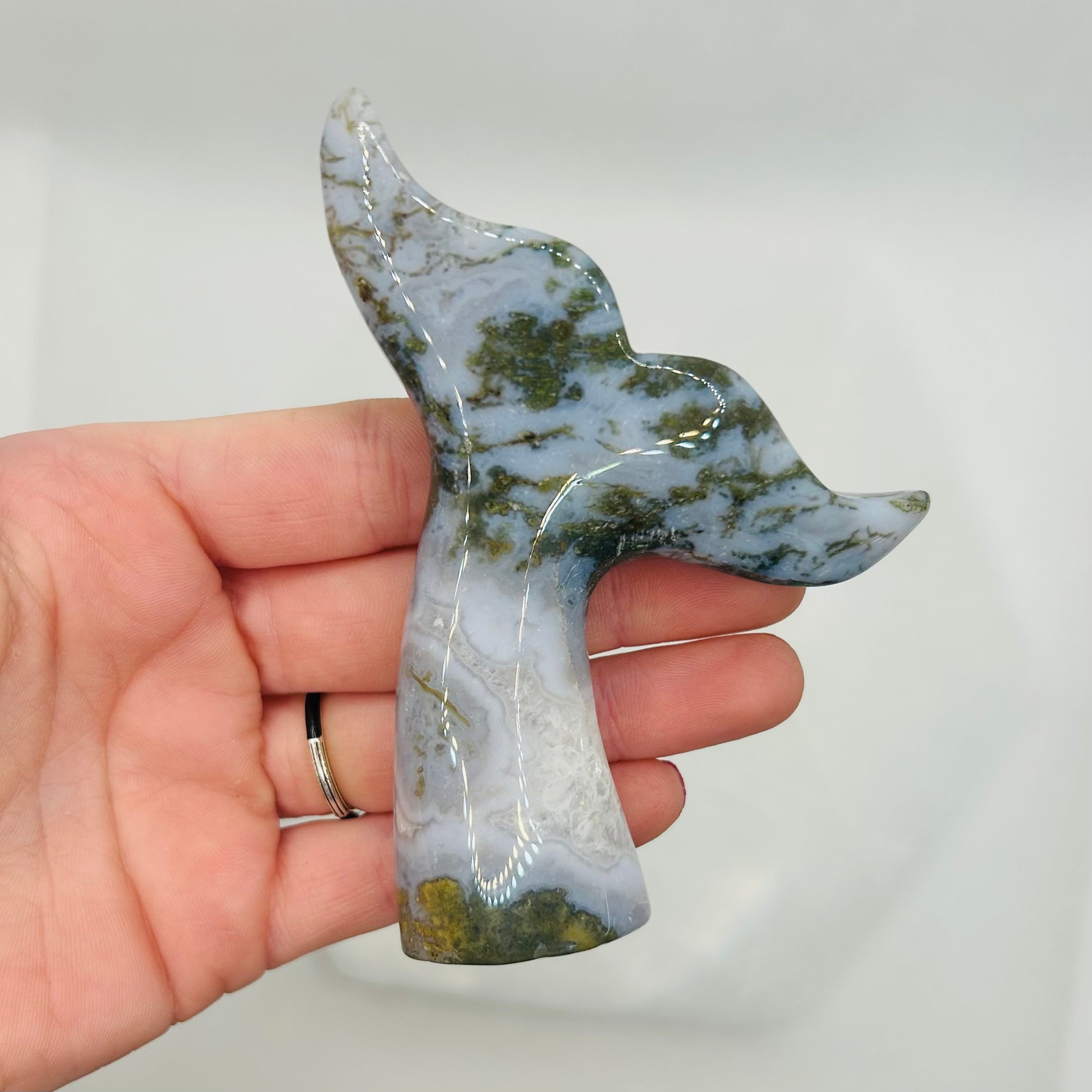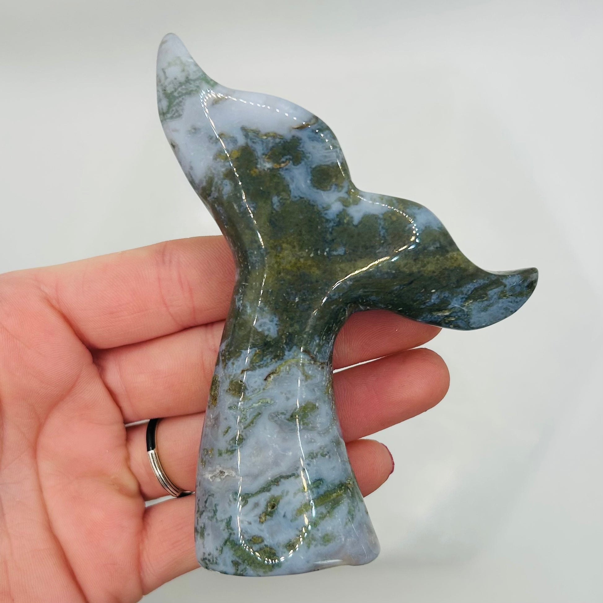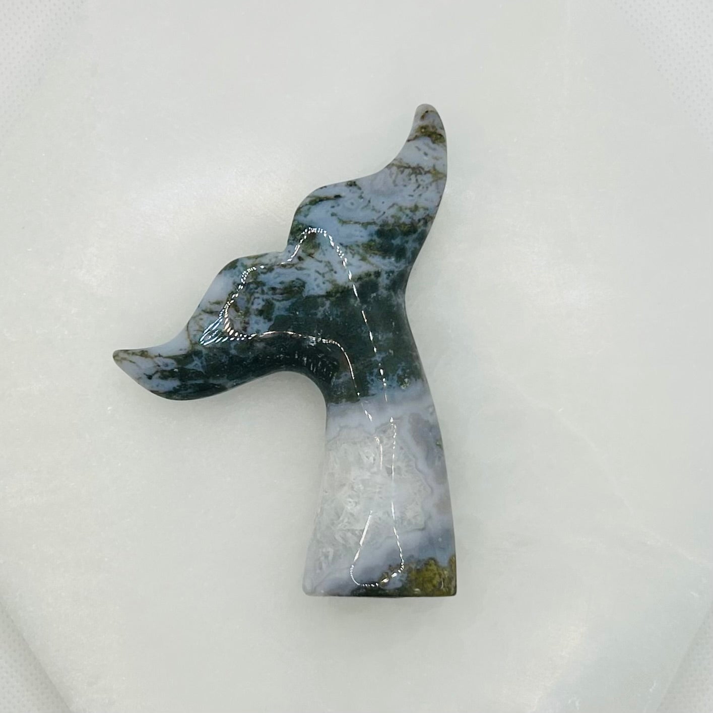 These Moss Agate Whale Tails are crafted from high-quality moss agate material, providing a unique and beautiful addition to any jewelry collection. With their natural patterns and colors, these whale tails add a touch of elegance to any outfit. Perfect for those who appreciate natural beauty and expert craftsmanship.