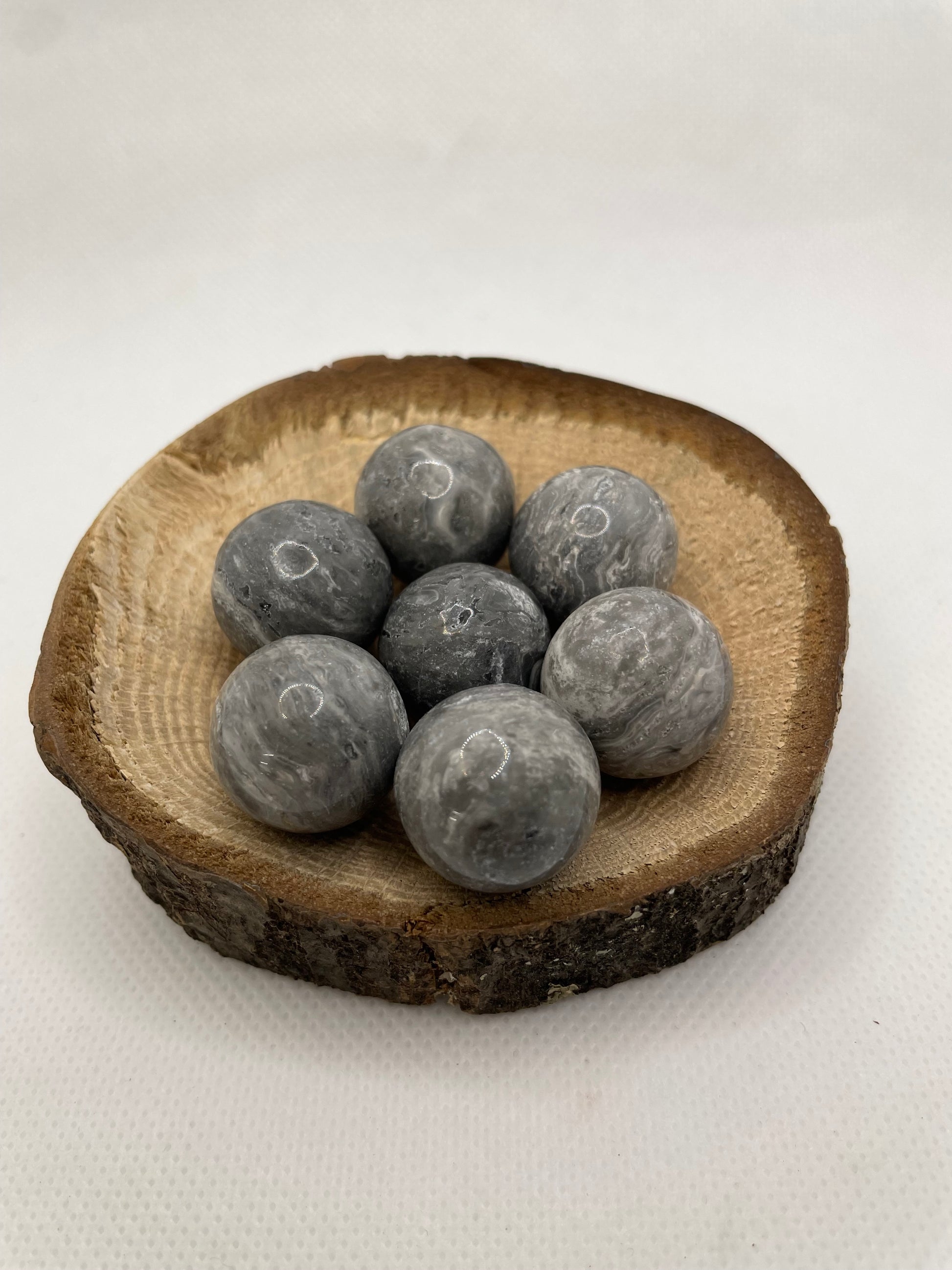 Enhance your crystal collection with these Picture Jasper Mini Spheres. Known for its calming and grounding properties, Picture Jasper helps to promote stability and balance in life. These mini spheres are perfect for meditation or display, adding a touch of nature and serenity to any space.